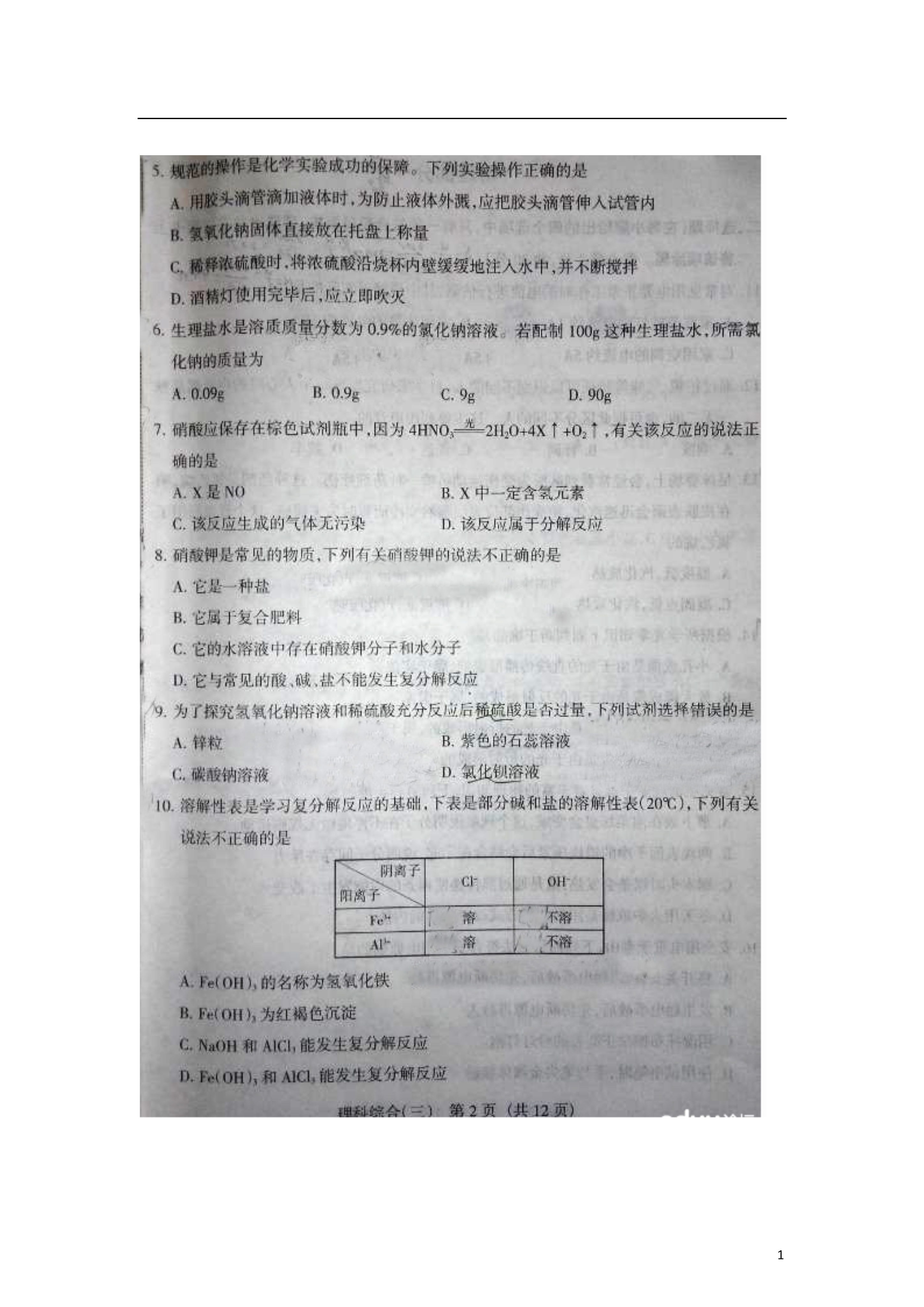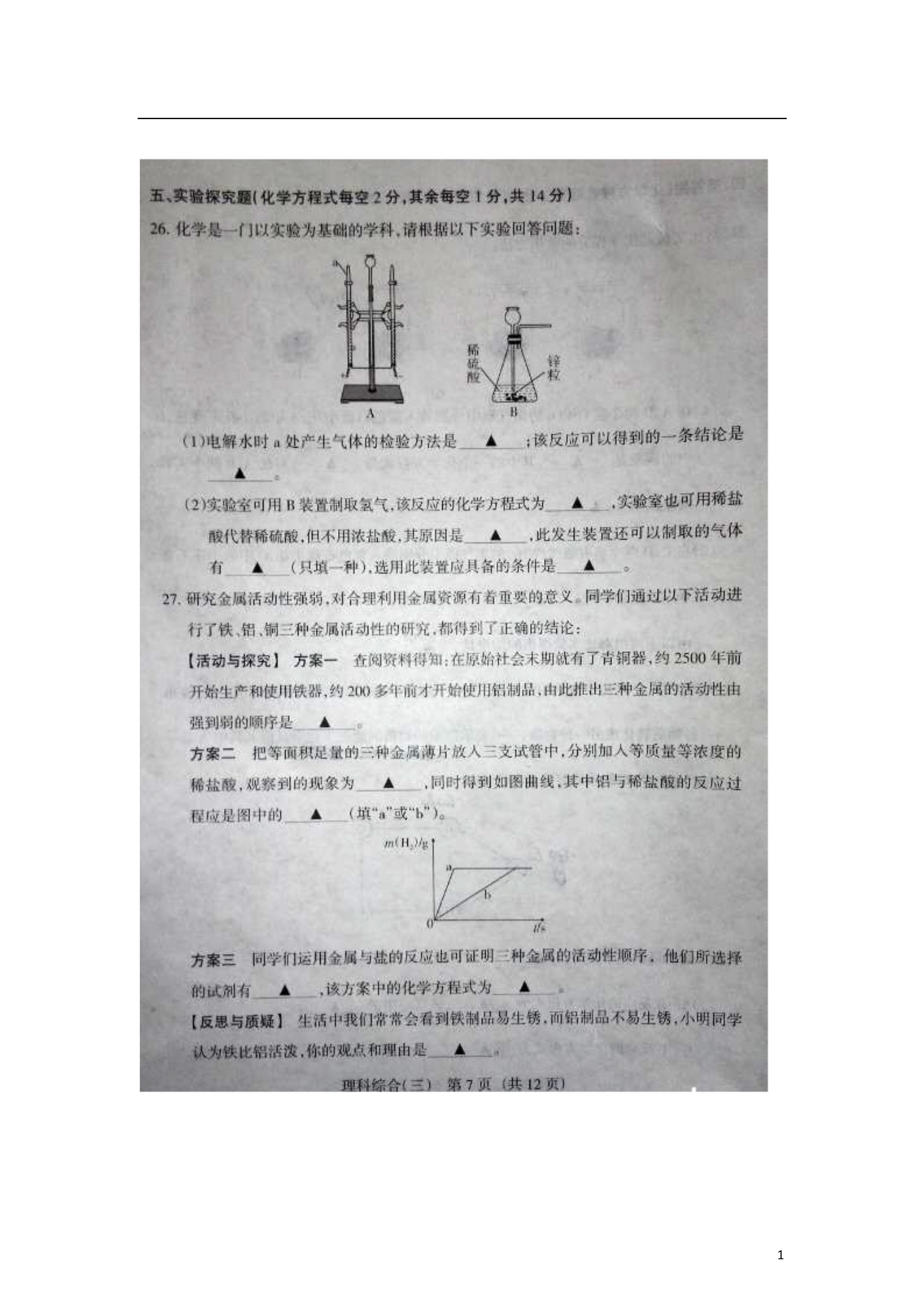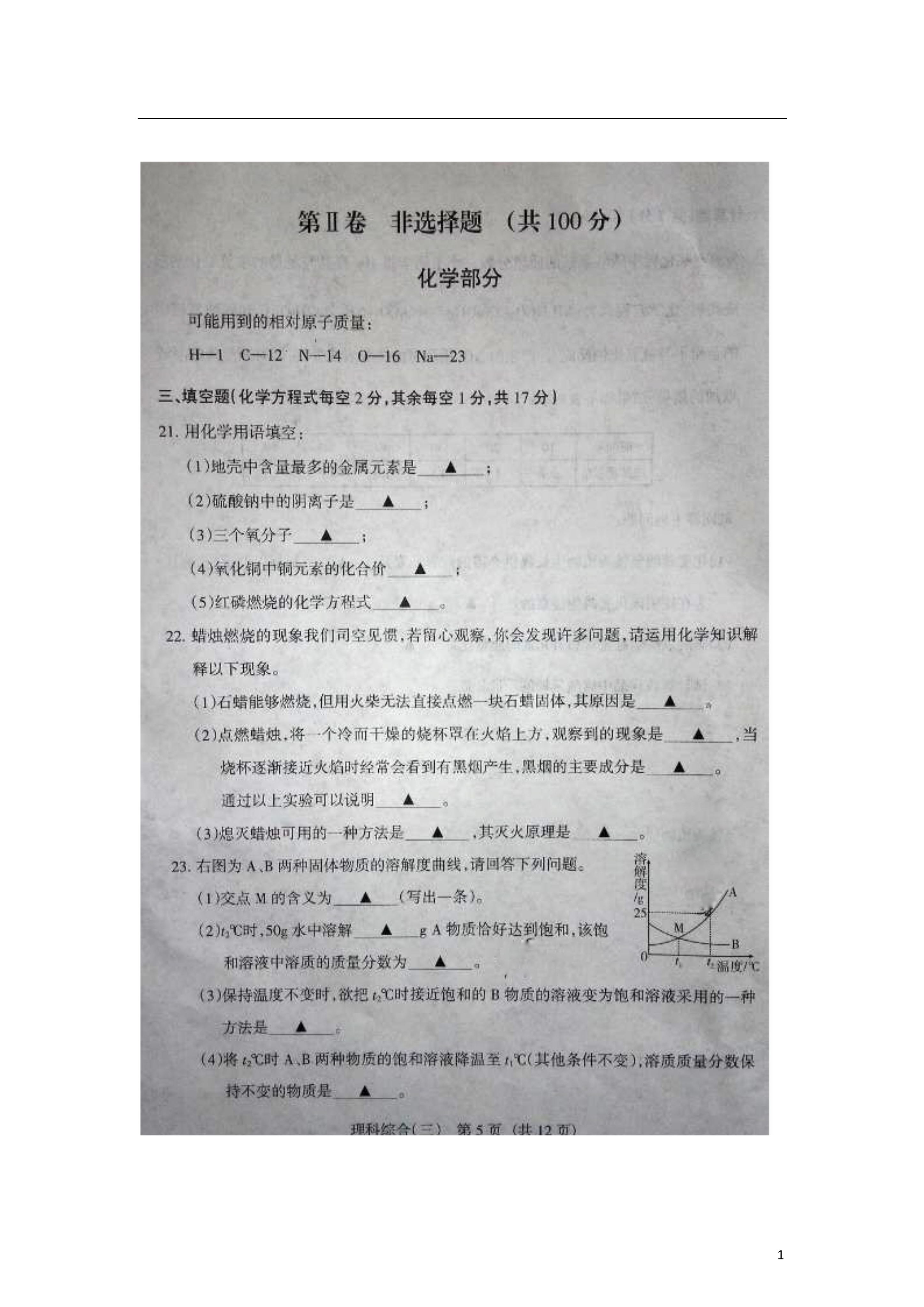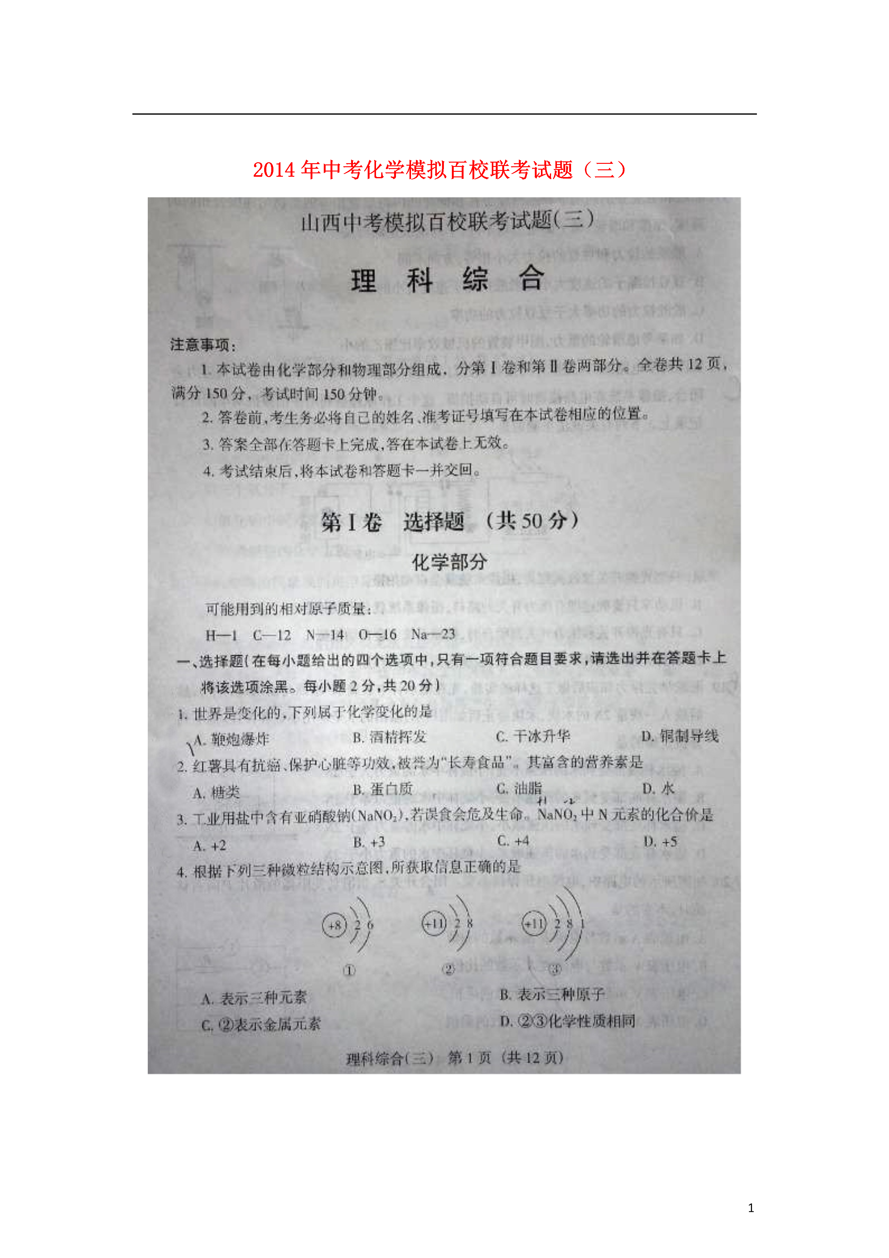 12014年中考化学模拟百校联考试题(三)