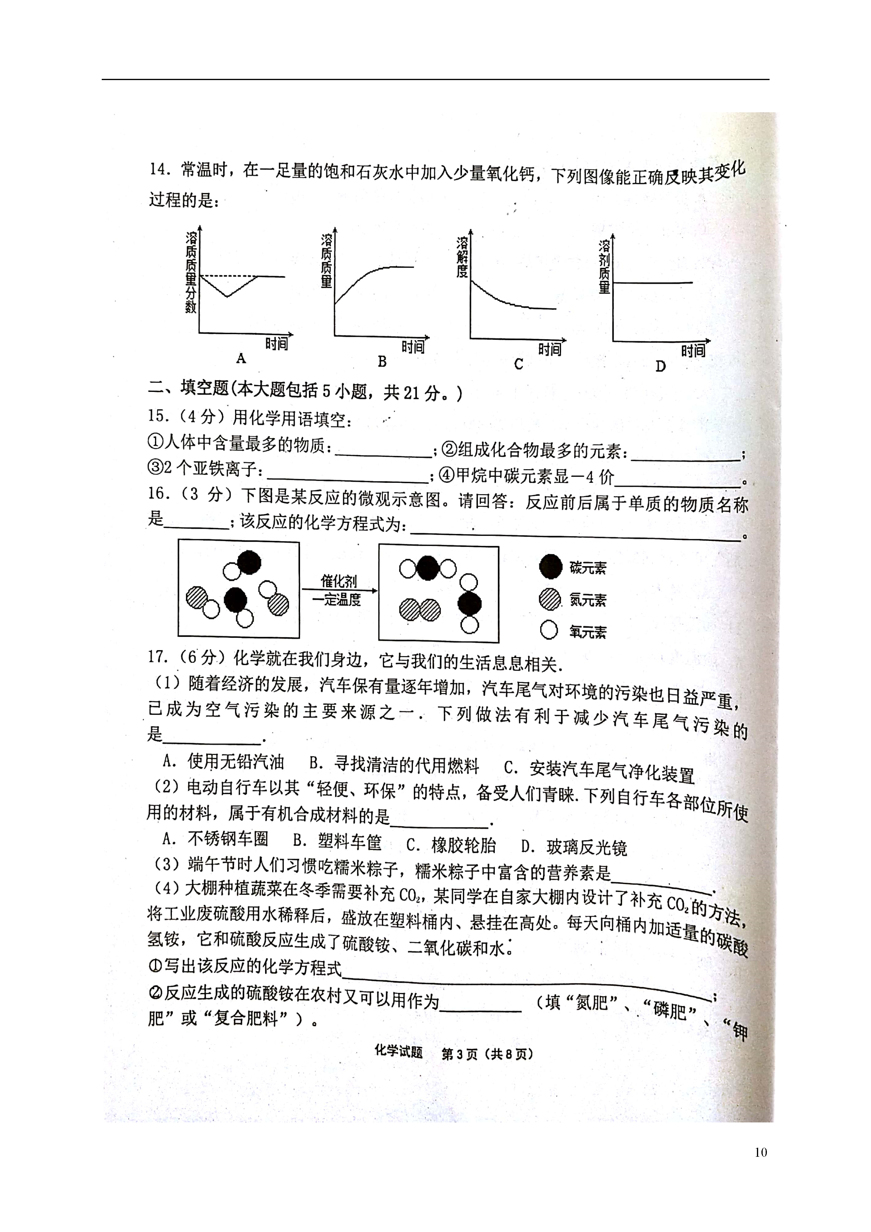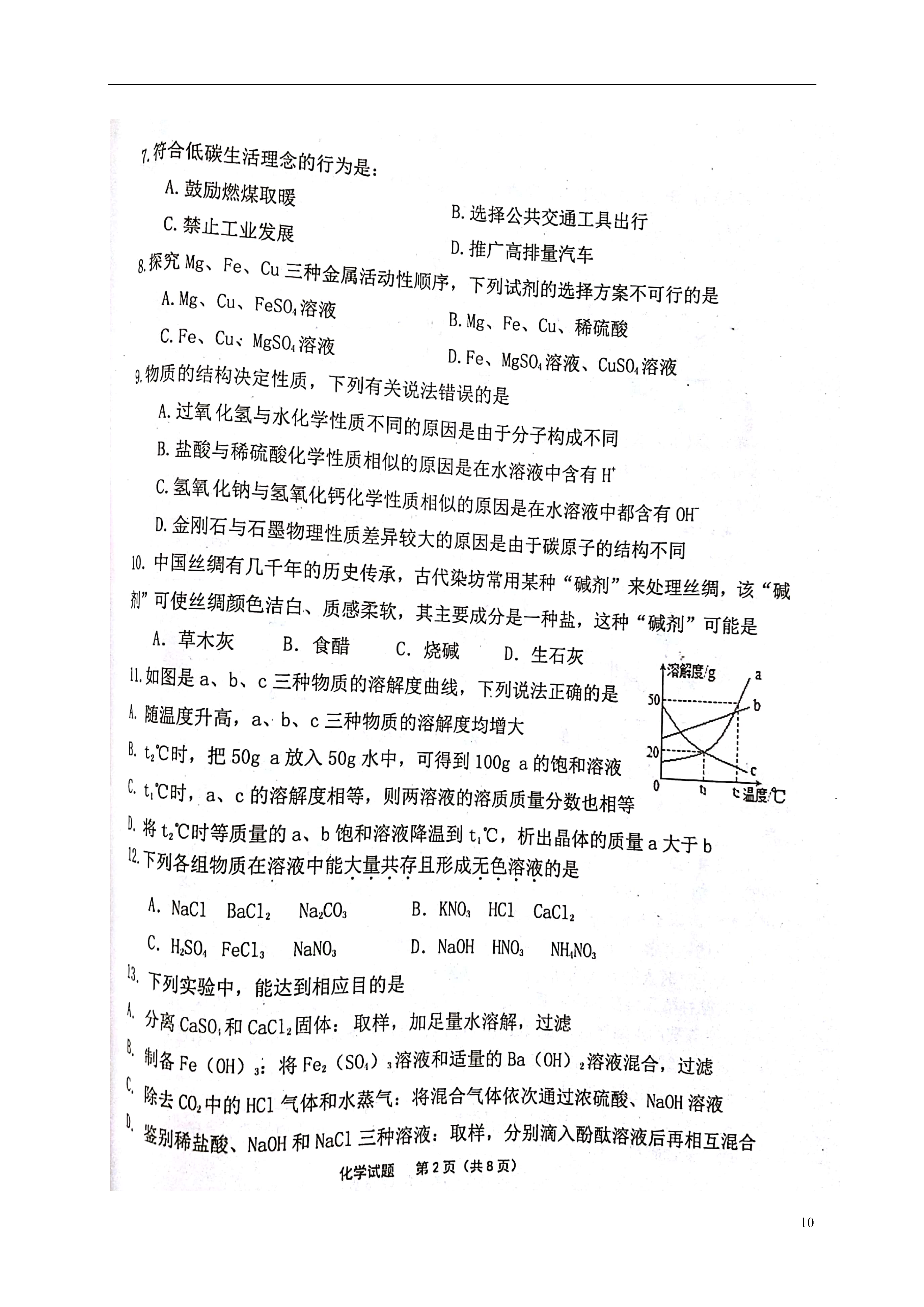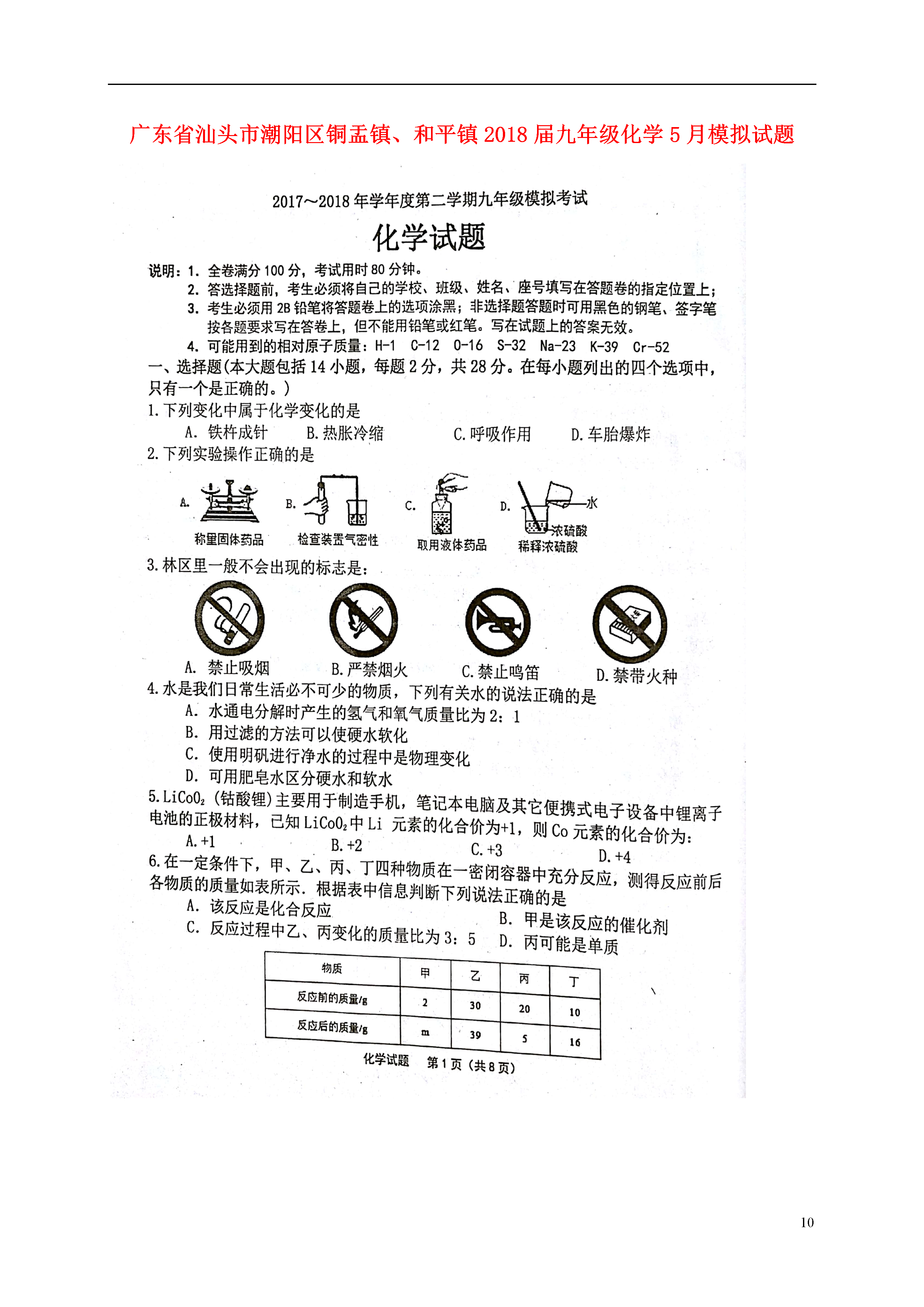 10广东省汕头市潮阳区铜盂镇、和平镇2018届九年级化学5月模拟试题