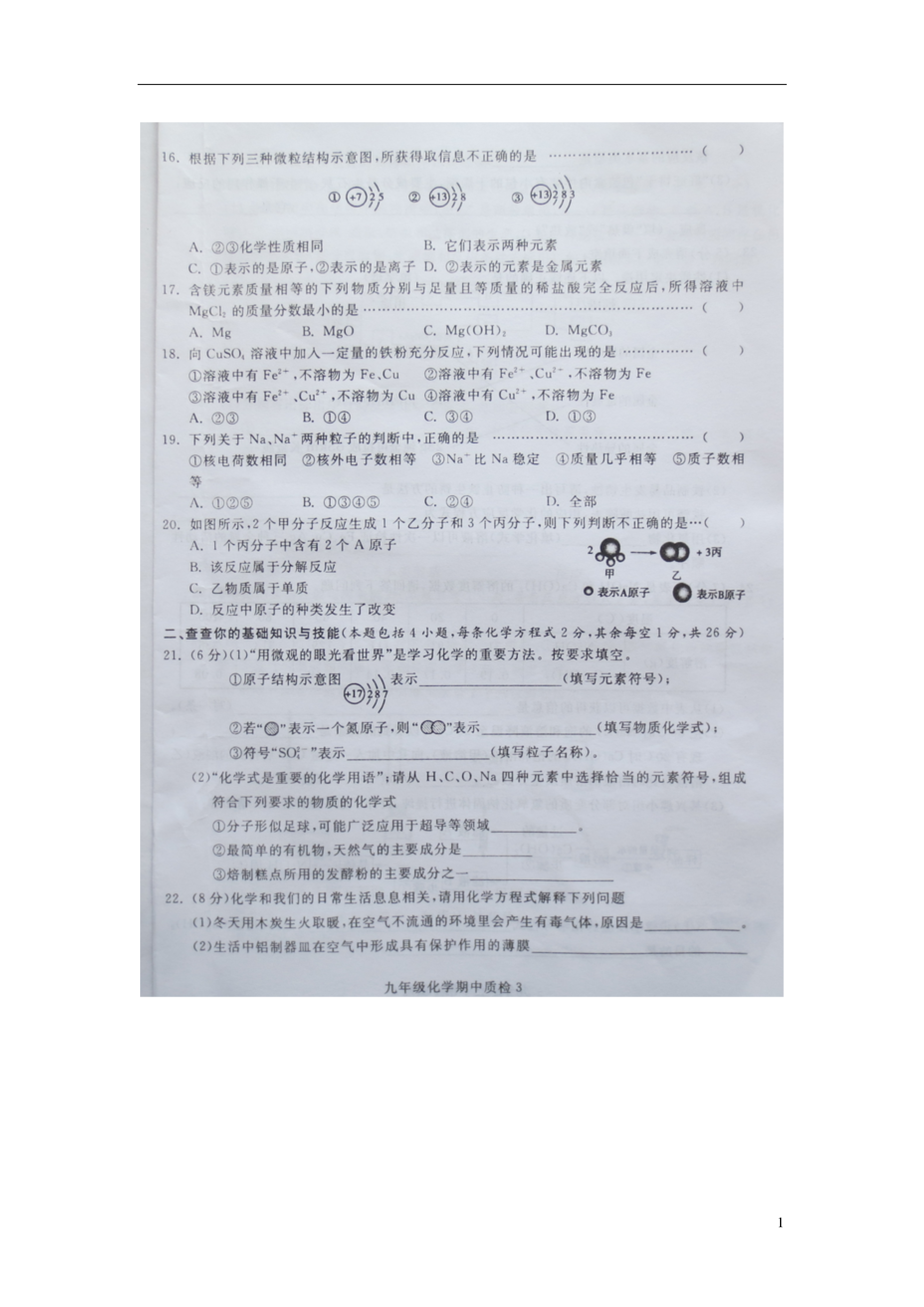 1广西玉林市博白县2016届九年级化学下学期第一次模拟试题