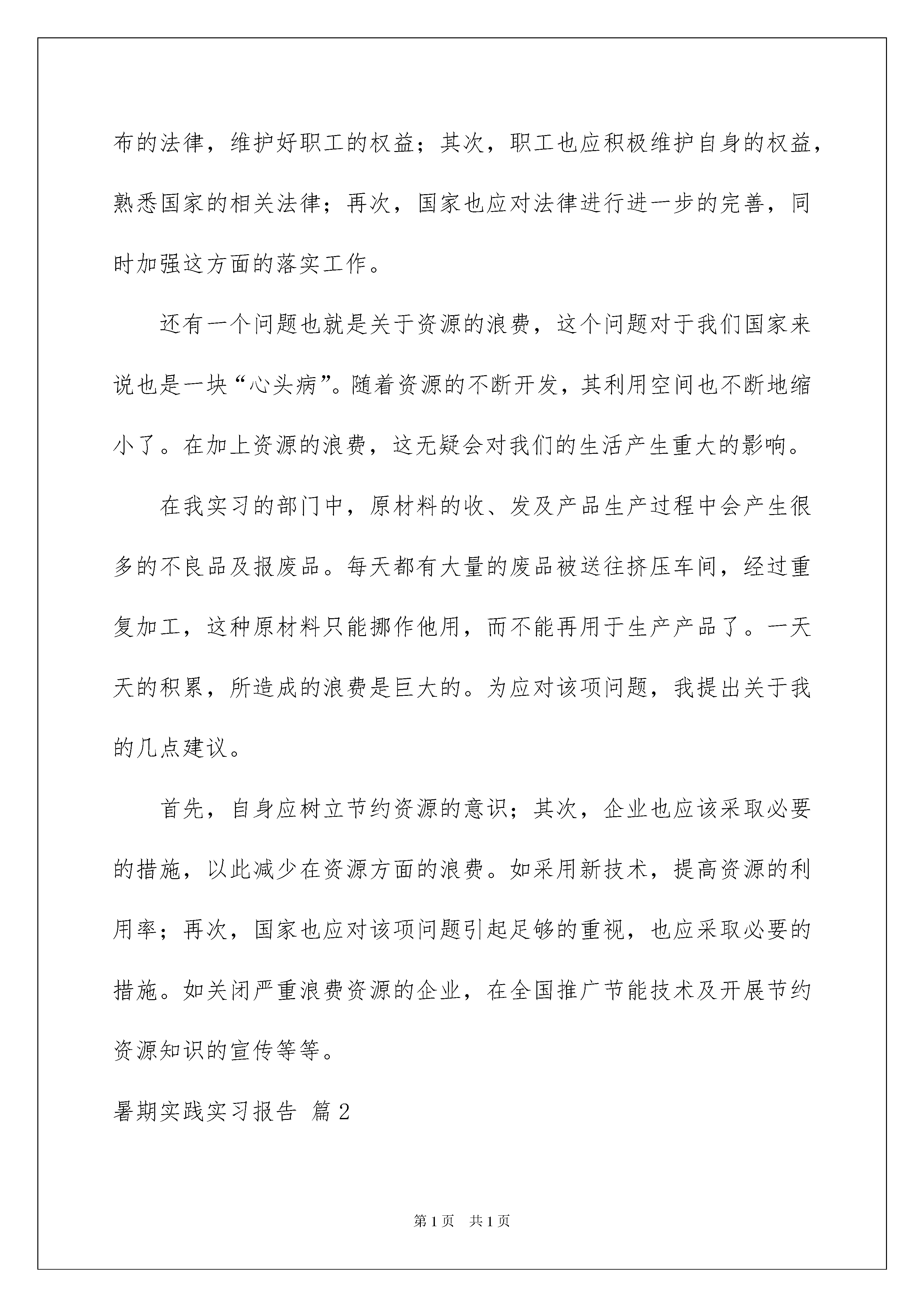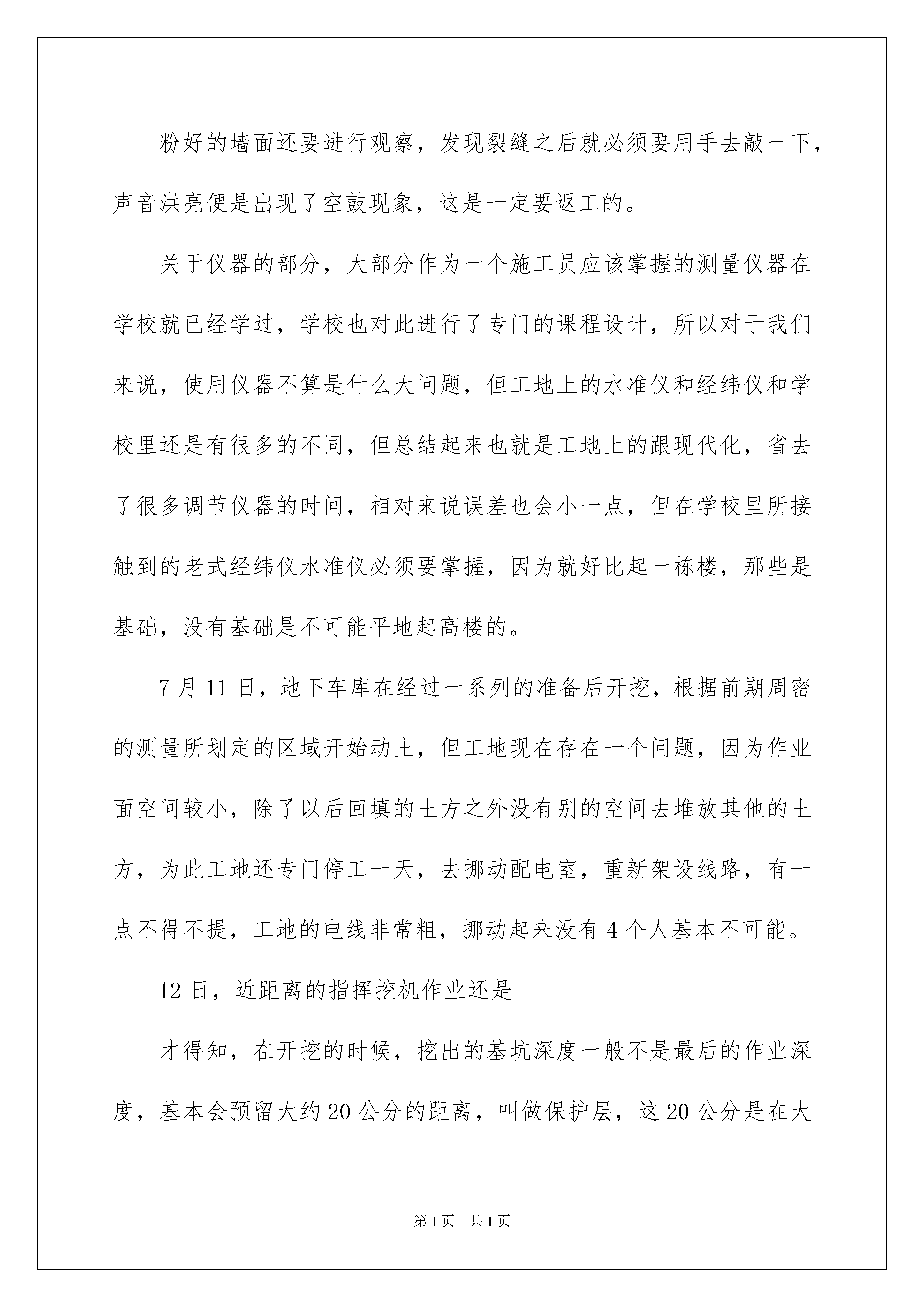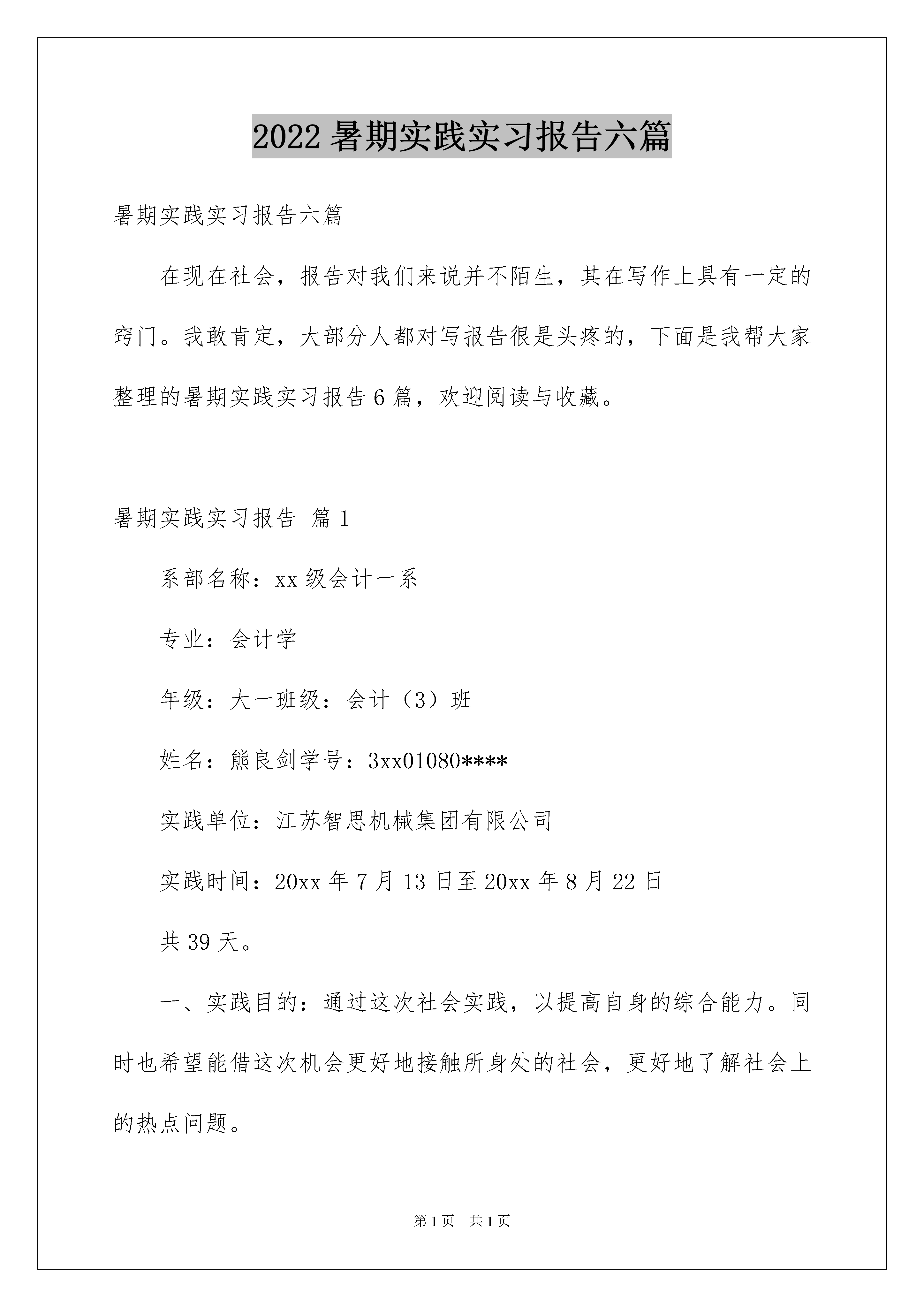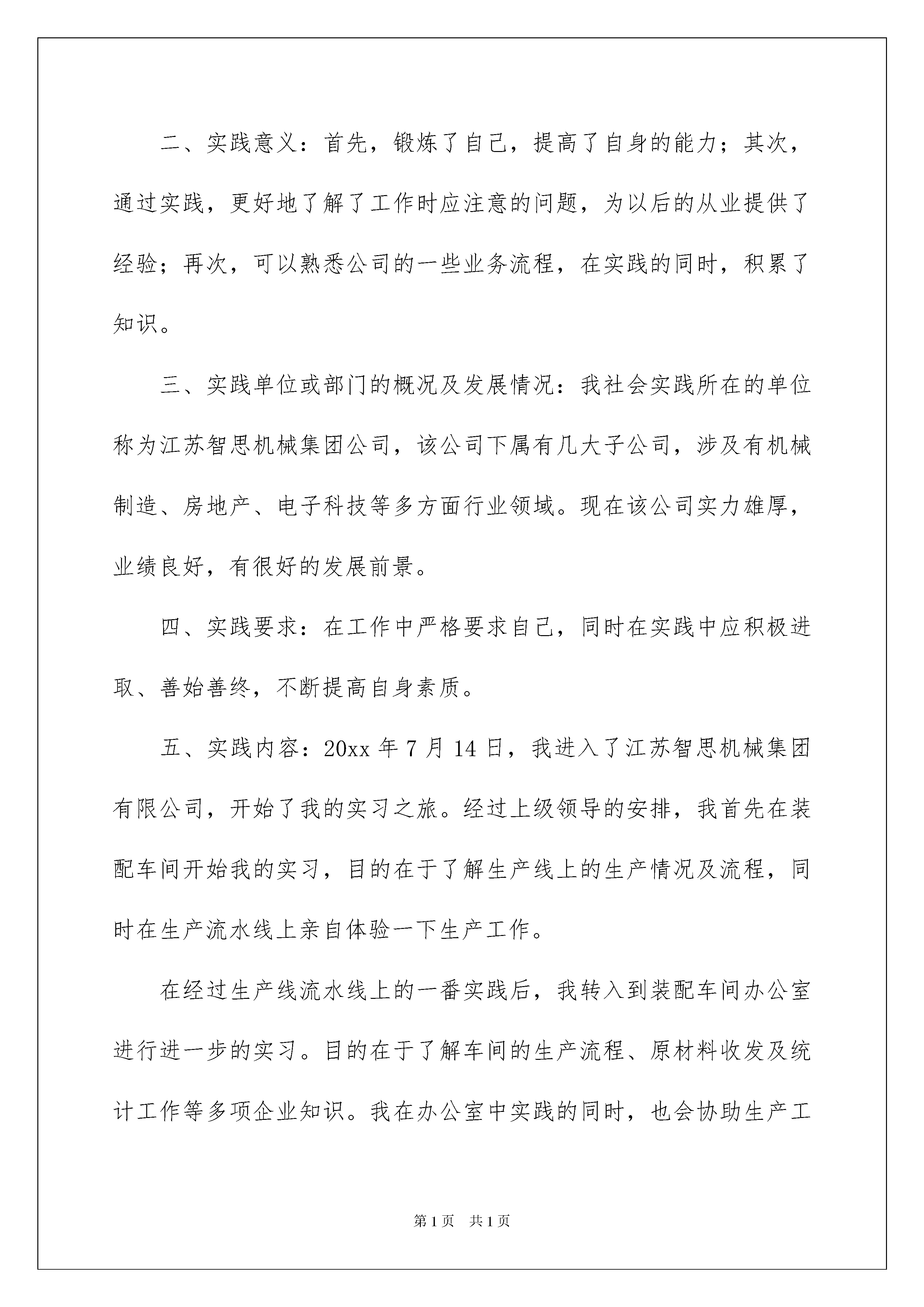 2022暑期实践实习报告六篇暑期实践实习报告六篇在现在社会,报告对我们来说并不陌生,其在写作上具有一定的窍门。我敢肯定,大部分人都对写报告很是头疼的,下面是我帮大家整理的暑期实践实习报告6篇,欢迎阅读与收藏。暑期实践实习报告篇1系部名称:xx级会计一系专业:会计学年级:大一班级:会计(3)班姓名:熊良剑学号:3xx01080****实践单位:江苏智思机械集团有限公司实践时间:20xx年7月13日至20xx年8月22日共39天。一、实践目的:通过这次社会实践,以提高自身的综合能力。同时也希望能借这次机会更好地接触所身处的社会,更好地了解社会上的热点问题。二、实践意义:首先,锻炼了自己,提高了自身的能力;其次,通过实践,更好地了解了工作时应注意的问题,为以后的从业提供了经验;再次,可以熟悉公司的一些业务流程,在实践的同时,积累了知识。三、实践单位或部门的概况及发展情况:我社会实践所在的单位称为江苏智思机械集团公司,该公司下属有几大子公司,涉及有机械制造、房地产、电子科技等多方面行业领域。现在该公司实力雄厚,业绩良好,有很好的发展前景。四、实践要求:在工作中严格要求自己,同时在实践中应积极进取、善始善终,不断提高自身素质。五、实践内容:20xx年7月14日,我进入了江苏智思机械集团有限公司,开始了我的实习之旅。经过上级领导的安排,我首先在装配车间开始我的实习,目的在于了解生产线上的生产情况及流程,同时在生产流水线上亲自体验一下生产工作。在经过生产线流水线上的一番实践后,我转入到装配车间办公室进行进一步的实习。目的在于了解车间的生产流程、原材料收发及统计工作等多项企业知识。我在办公室中实践的同时,也会协助生产工人完成一些工作,在材料收发方面,我学会了填写材料收、发等多种单据。经过以上实践,我觉得车间的生产流程及材料的处理对我学习会计专业知识具有很大的帮助。其中部分工作也会涉及到会计需了解的东西,我觉得对我们学习会计专业的人来说,熟悉企业车间的生产流程及其它企业知识非常有必要。首先,它可以增加我们对企业的了解;其次,可以完善我们对于会计工作者的认识,对以后我们的从业提供了宝贵的知识与经验。六、实践结果:经过了多天的实习,我收获颇丰。在学习的过程中加深了对企业及社会的认识,这些东西对我来说是非常重要的。不过,在实践的过程中,我同时也发现了一些比较重要的问题。其中就有工人的工资问题以及资源浪费的问题。我们大家或许都知道,工人的工资问题是我们国家普遍存在的问题。我所谈及的工人工资问题就是工人的加班费得不到落实。在我所实习的车间中,大部分工人都是会加班的,经过一番辛辛苦苦的加班,却得不到应有的酬劳。这对我们职工的权益造成了损害。应该需要有及时的举措来解决这一问题。首先,我觉得企业应当自觉遵守国家颁布的法律,维护好职工的权益;其次,职工也应积极维护自身的权益,熟悉国家的相关法律;再次,国家也应对法律进行进一步的完善,同时加强这方面的落实工作。还有一个问题也就是关于资源的浪费,这个问题对于我们国家来说也是一块“心头病”。随着资源的不断开发,其利用空间也不断地缩小了。在加上资源的浪费,这无疑会对我们的生活产生重大的影响。在我实习的部门中,原材料的收、发及产品生产过程中会产生很多的不良品及报废品。每天都有大量的废品被送往挤压车间,经过重复加工,这种原材料只能挪作他用,而不能再用于生产产品了。一天天的积累,所造成的浪费是巨大的。为应对该项问题,我提出关于我的几点建议。首先,自身应树立节约资源的意识;其次,企业也应该采取必要的措施,以此减少在资源方面的浪费。如采用新技术,提高资源的利用率;再次,国家也应对该项问题引起足够的重视,也应采取必要的措施。如关闭严重浪费资源的企业,在全国推广节能技术及开展节约资源知识的宣传等等。暑期实践实习报告篇2粉好的墙面还要进行观察,发现裂缝之后就必须要用手去敲一下,声音洪亮便是出现了空鼓现象,这是一定要返工的。关于仪器的部分,大部分作为一个施工员应该掌握的测量仪器在学校就已经学过,学校也对此进行了专门的课程设计,所以对于我们来说,使用仪器不算是什么大问题,但工地上的水准仪和经纬仪和学校里还是有很多的不同,但总结起来也就是工地上的跟现代化,省去了很多调节仪器的时间,相对来说误差也会小一点,但在学校里所接触到的老式经纬仪水准仪必须要掌握,因为就好比起一栋楼,那些是基础,没有基础是不可能平地起高楼的。7月11日,地下车库在经过一系列的准备后开挖,根据前期周密的测量所划定的区域开始动土,但工地现在存在一个问题,因为作业面空间较小,除了以后回填的土方之外没有别的空间去堆放其他的土