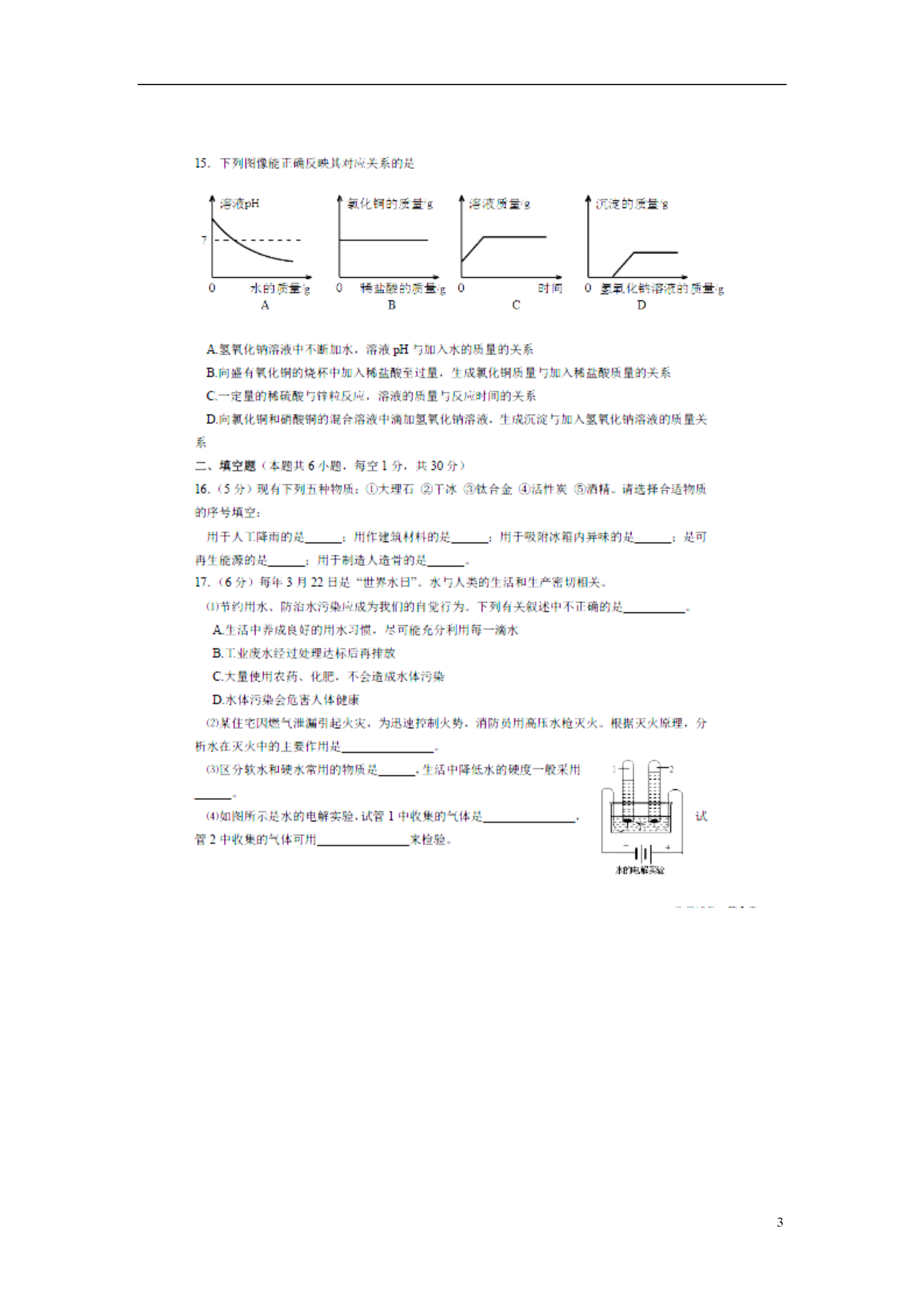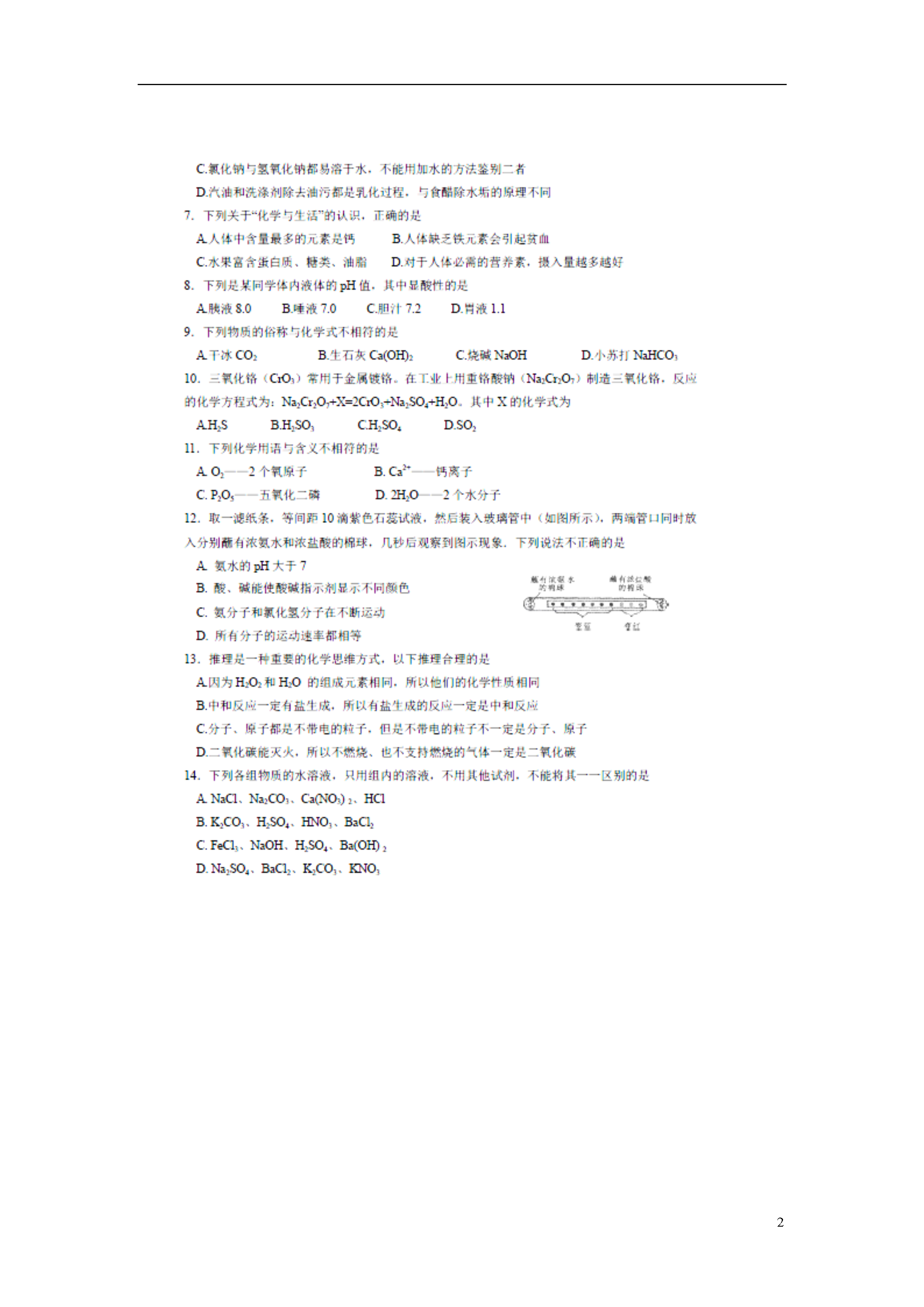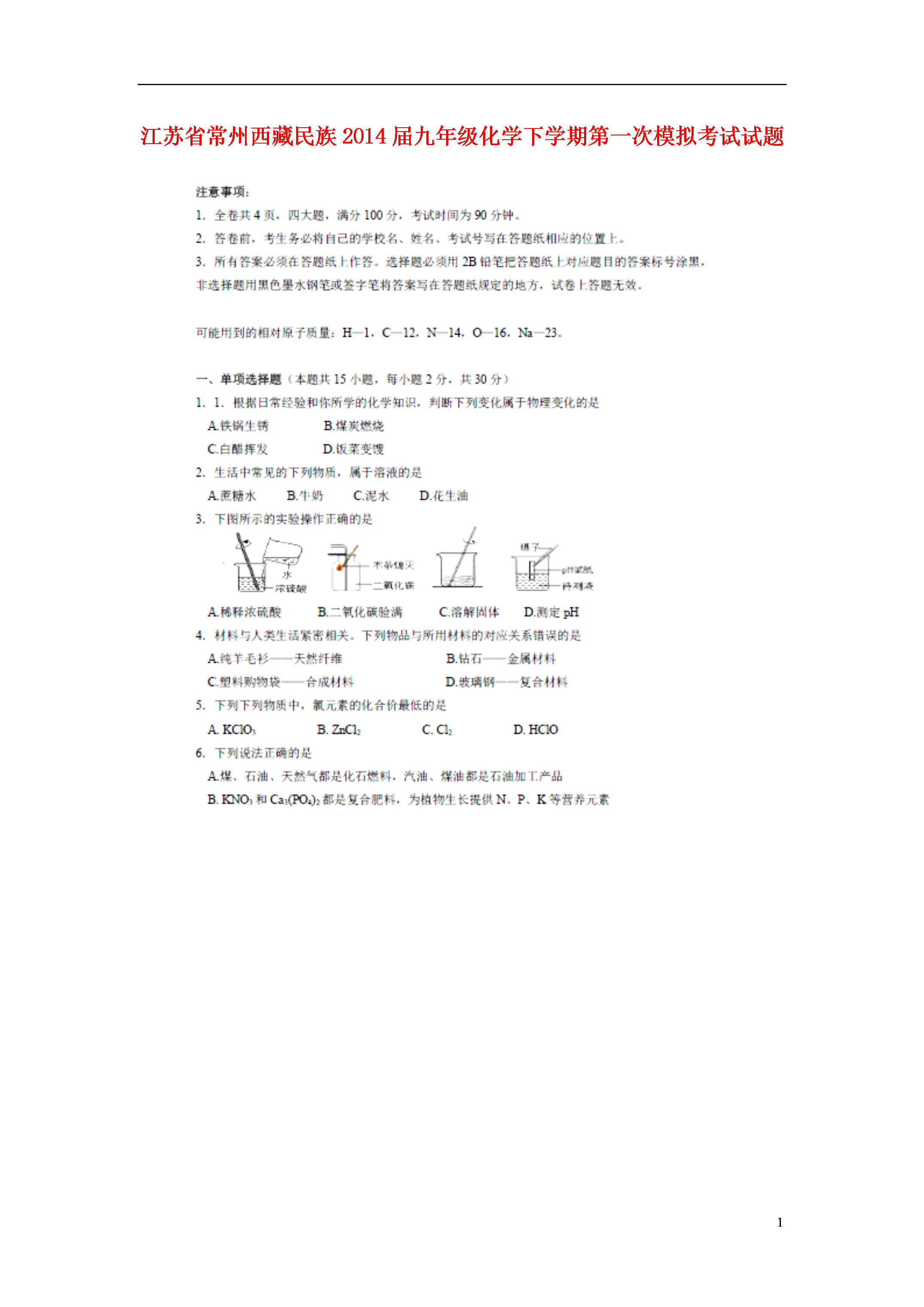 8江苏省常州西藏民族2014届九年级化学下学期第一次模拟考试试题
