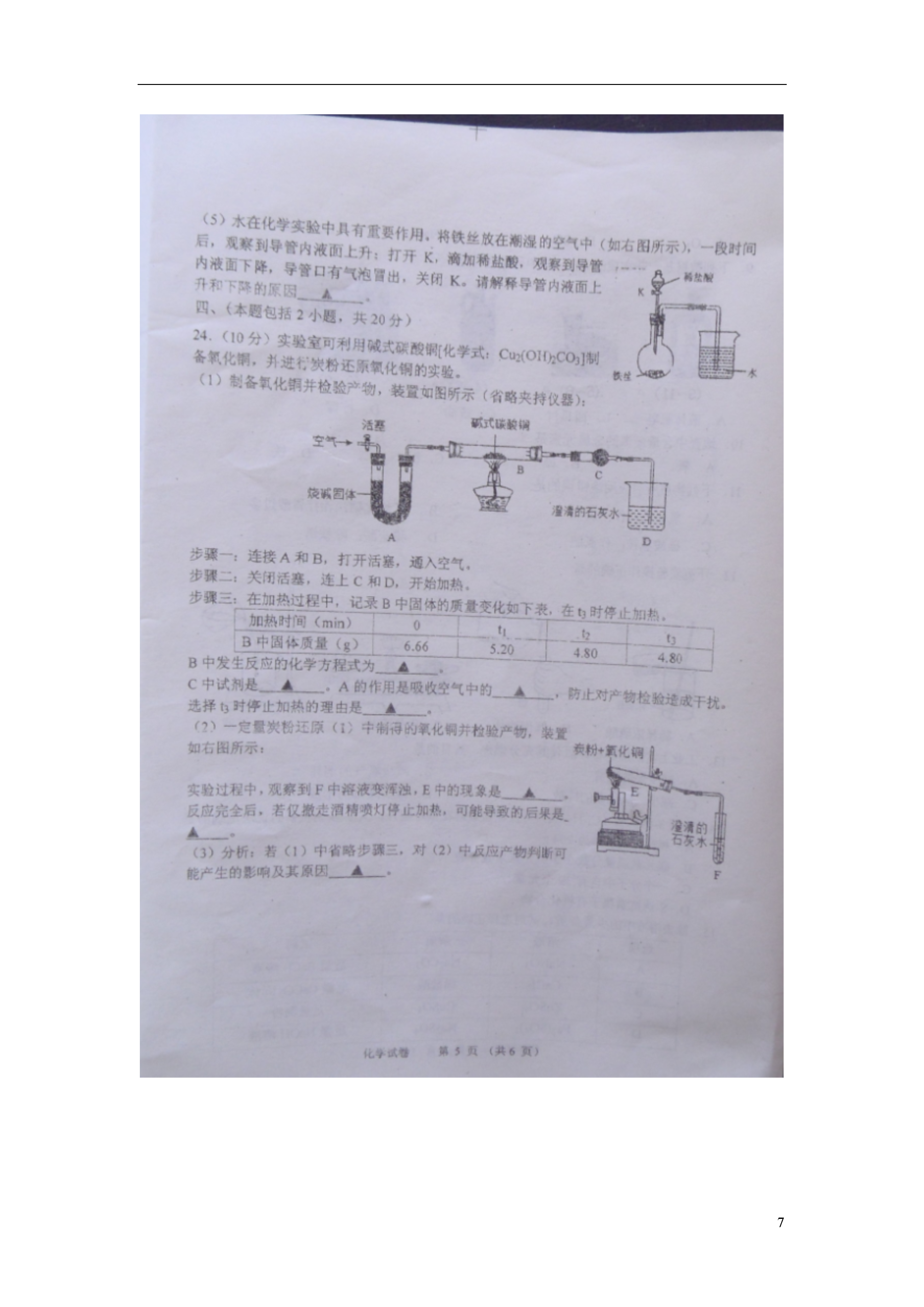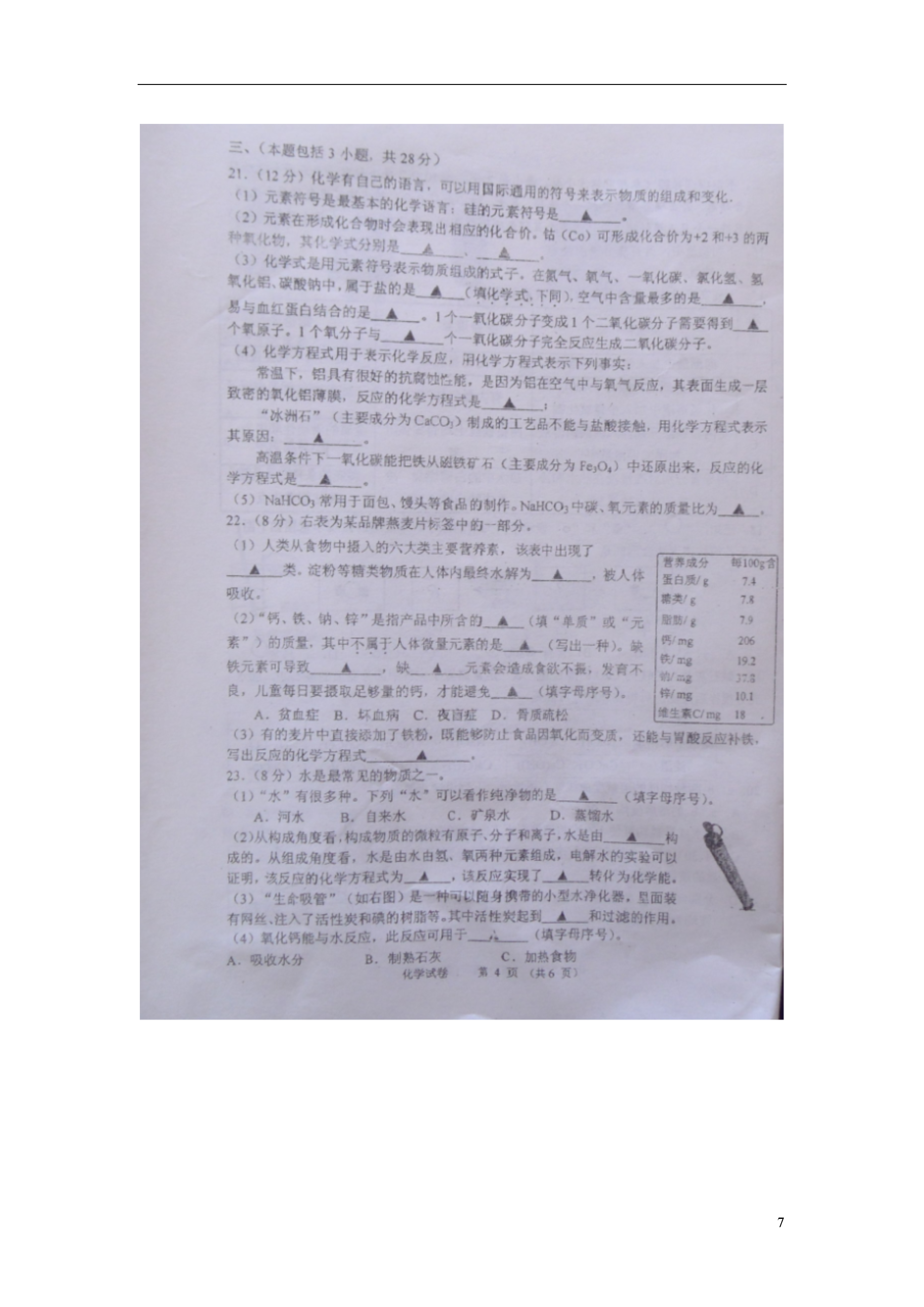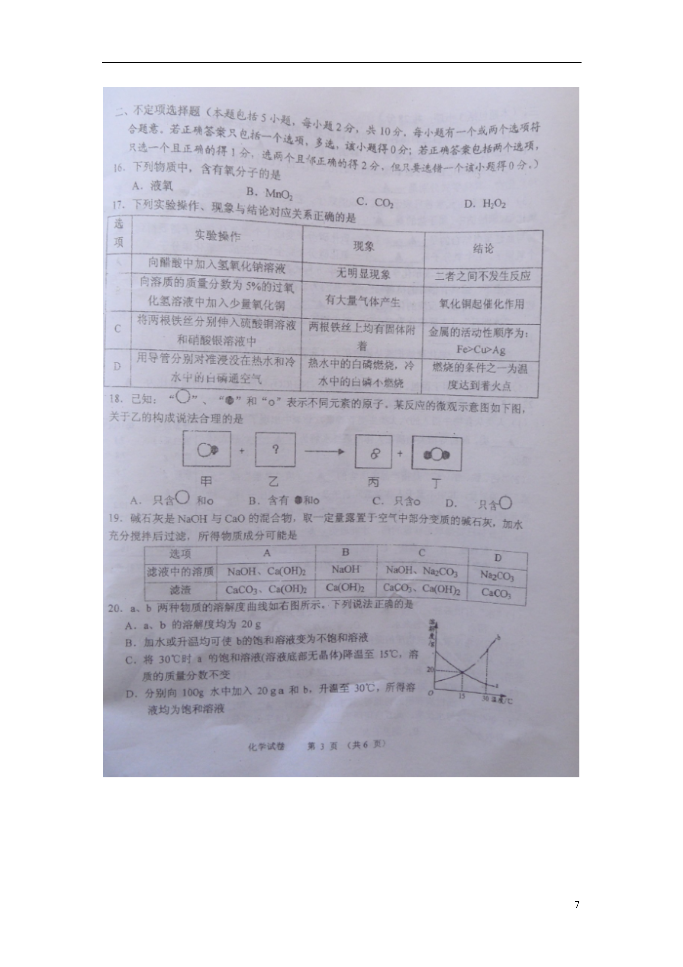 7江苏省扬州中学教育集团树人中学2015届九年级化学下学期第二次模拟考试试题