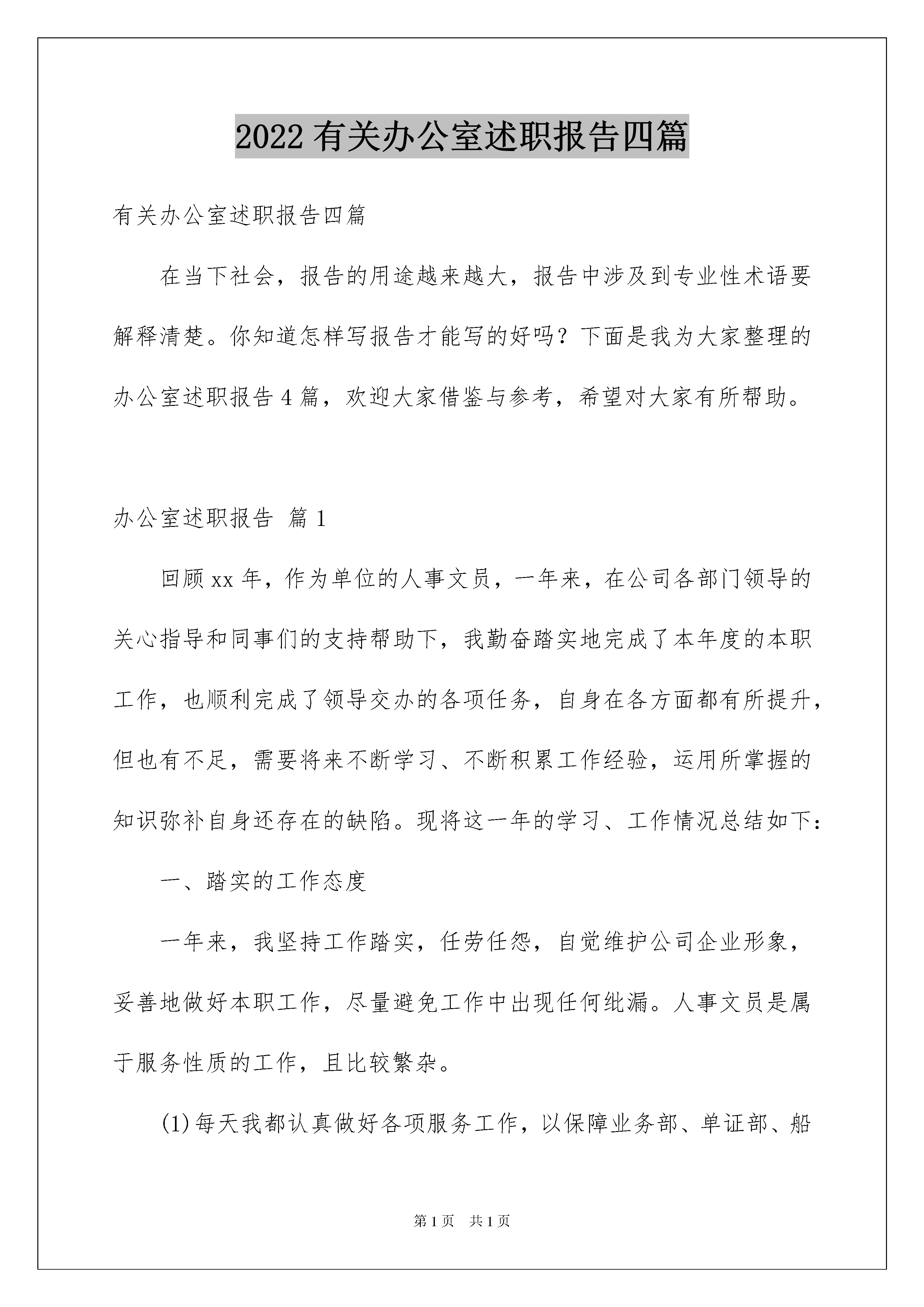 2022有关办公室述职报告四篇有关办公室述职报告四篇在当下社会,报告的用途越来越大,报告中涉及到专业性术语要解释清楚。你知道怎样写报告才能写的好吗?下面是我为大家整理的办公室述职报告4篇,欢迎大家借鉴与参考,希望对大家有所帮助。办公室述职报告篇1回顾xx年,作为单位的人事文员,一年来,在公司各部门领导的关心指导和同事们的支持帮助下,我勤奋踏实地完成了本年度的本职工作,也顺利完成了领导交办的各项任务,自身在各方面都有所提升,但也有不足,需要将来不断学习、不断积累工作经验,运用所掌握的知识弥补自身还存在的缺陷。现将这一年的学习、工作情况总结如下:一、踏实的工作态度一年来,我坚持工作踏实,任劳任怨,自觉维护公司企业形象,妥善地做好本职工作,尽量避免工作中出现任何纰漏。人事文员是属于服务性质的工作,且比较繁杂。(1)每天我都认真做好各项服务工作,以保障业务部、单证部、船务部、财务部及设计部门工作的正常开展。(2)文员日常的工作内容比较琐碎,需要细心、谨慎,且不能疏忽大意,更不能马虎潦草。(3)在人事部经理may的指导下,建立当日备忘录。我将当天的工作列入到备忘录里,一项一项的去完成,以免出现遗漏现象。二、尽心尽责,做好行政人事工作1、认真做好本职工作和日常事务性工作:协助领导保持良好的工作秩序和工作环境,使各项档案管理日趋正规化、规范化。同时做好后勤服务工作,让领导和同事们避免后顾之忧,在部门经理的直接领导下,积极、主动的做好本部门日常内务工作。日常接待工作:接打电话时,使用文明语言,说话和气、热情,礼貌地接待工厂及国外客户来访人员,对于遇到相关问题来咨询或者要求帮助的人员,我都会尽我所知给予解答或及时转达相关领导给予解决。2、物资管理工作:制定公司日常办公用品购入和领用表,做好物资的领用管理,根据部门领用情况,进行领用登记。3、文件管理工作:根据工作需要,随时制作各类表格、文档等,同时完成各部门交待打印、扫描、复印的文件等,对公司所发放的通知、文件做到及时上传下达。4、人事档案管理工作:将在职员工和离职员工档案进行分类存档,并做扫描电子存档,新员工评定表按年度排序装订成册保存等。5、招聘工作:查收邮件阅读简历,预约安排应聘人员进行经理面试以及总经理复试。6、商务会议及展会行程安排工作:制定出差计划表,预订国内、国际机票和酒店,确保出差人员的行程正常进行。7、财务工作:办公用品费用、快递费用的核对及申请,机票、酒店费用的支付,确保及时支付相关合作公司的月结费用。8、快递工作:做好国内国际寄件登记和签收递交工作,定期上dhl、aramex网站跟踪查询客户签收情况,如发现有不正常的快件,及时反应到对外业务人员和相关领导。9、协助工作:协助部门经理做好公司季度及年度活动的组织和安排工作,以及搞好公司企业文化的宣传活动。三、20xx年度所学知识1、人事部门经理xx的指导:学习正规化的文档管理、规范的公文写作、灵活的接待技巧、公共关系中的礼仪形象等。2、单证部门经理xx的指导:学习基本的外贸知识、国际快递的运费核算及成本控制、基本的网络维护及电脑方面知识、复印机和打印机的保养及维修。3、船务部门经理x的指导:英文软件及学习方法的提供,还时刻提醒我加强英文的学习及锻炼等。4、设计部门经理xx的指导:photoshop的正确使用及公司存档文件的简单封面设计。5、业务部门经理x的指导:学习在工作中有条理处理事情的方法。6、财务部同事的指导:费用申请单的规范填写、存档文件的正确装订方法。7、外贸业务员x和x的指导:对外邮件in&out的整理及归档方法,加强英文阅读能力。8、总经理x小姐的指导:internet的广泛运用,用心做好每一件事。9、董事x先生的指导:认为是对的事情,就放胆努力去做,就算最后没有成功也没关系,至少曾经努力过。四、20xx年度需要努力的方向及感想人事文员对于我来说是单位赋予我的一个新的挑战以及肯定,希望能通过近2个月内的学习,努力提高工作水平,适应新形势下工作的需要,在不断学习的过程中改变工作方法扬长避短,踏实工作,力求把今后的行政工作做得更好。感谢xx的栽培和给予学习的机会,感谢同事们的每一次帮助,今后我将不断自我鞭策,自我激励,时刻严格要求自己用心做好每一件事。办公室述职报告篇2时光飞逝,情不自禁地回首过去,盘点自己的收获和遗憾,为的是展望未来,以一个更好地态度和思路去迎接明天,开拓工作的新局面,提高自身的工作能力。同时,作为一名系学生会干部,应该向组织诚实地汇报自己的工作情况,以期待得到老师和同学们的'鼓励支持、批评和指正,为新一年更好地工作和服务把握方向,积蓄智慧和力