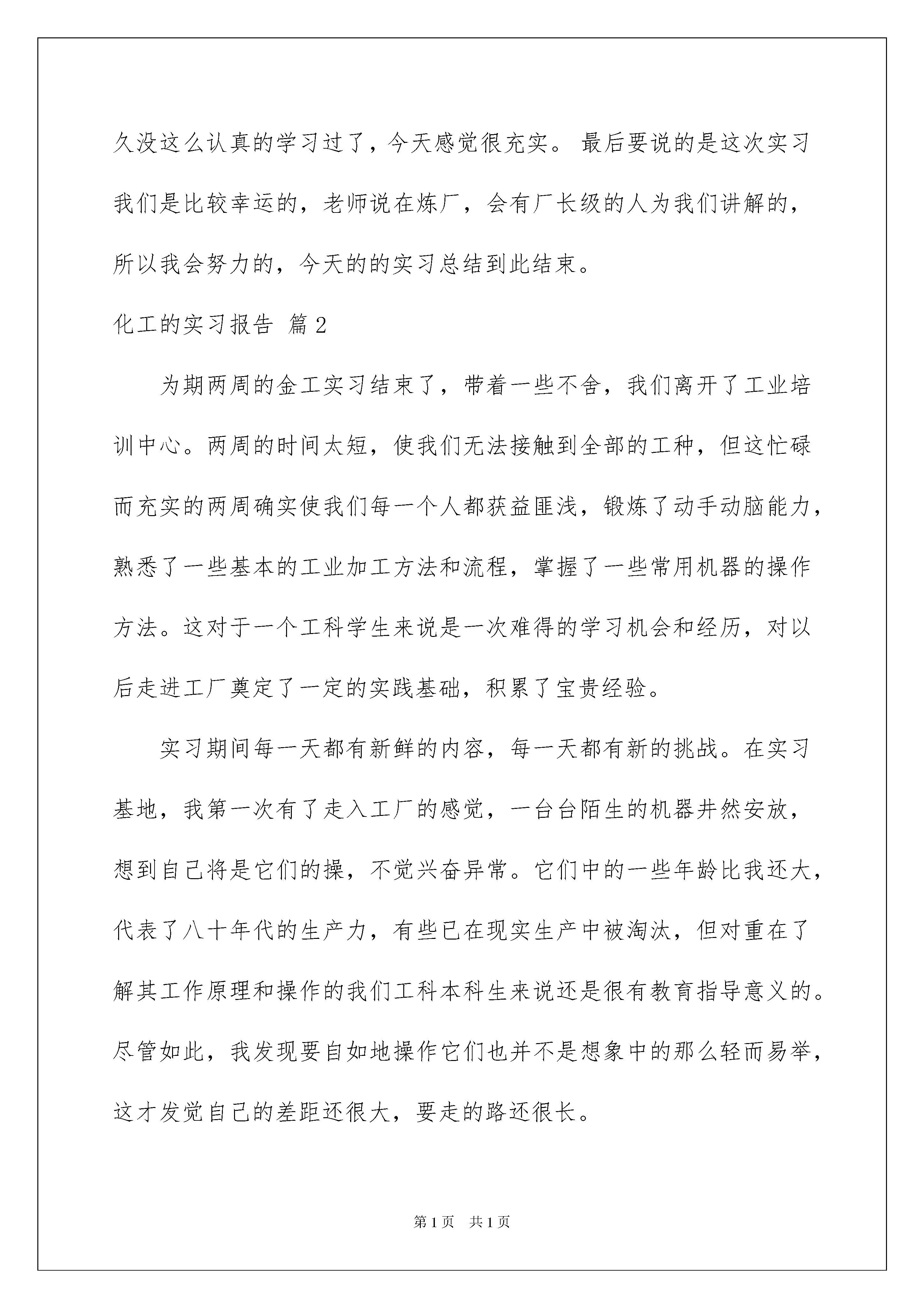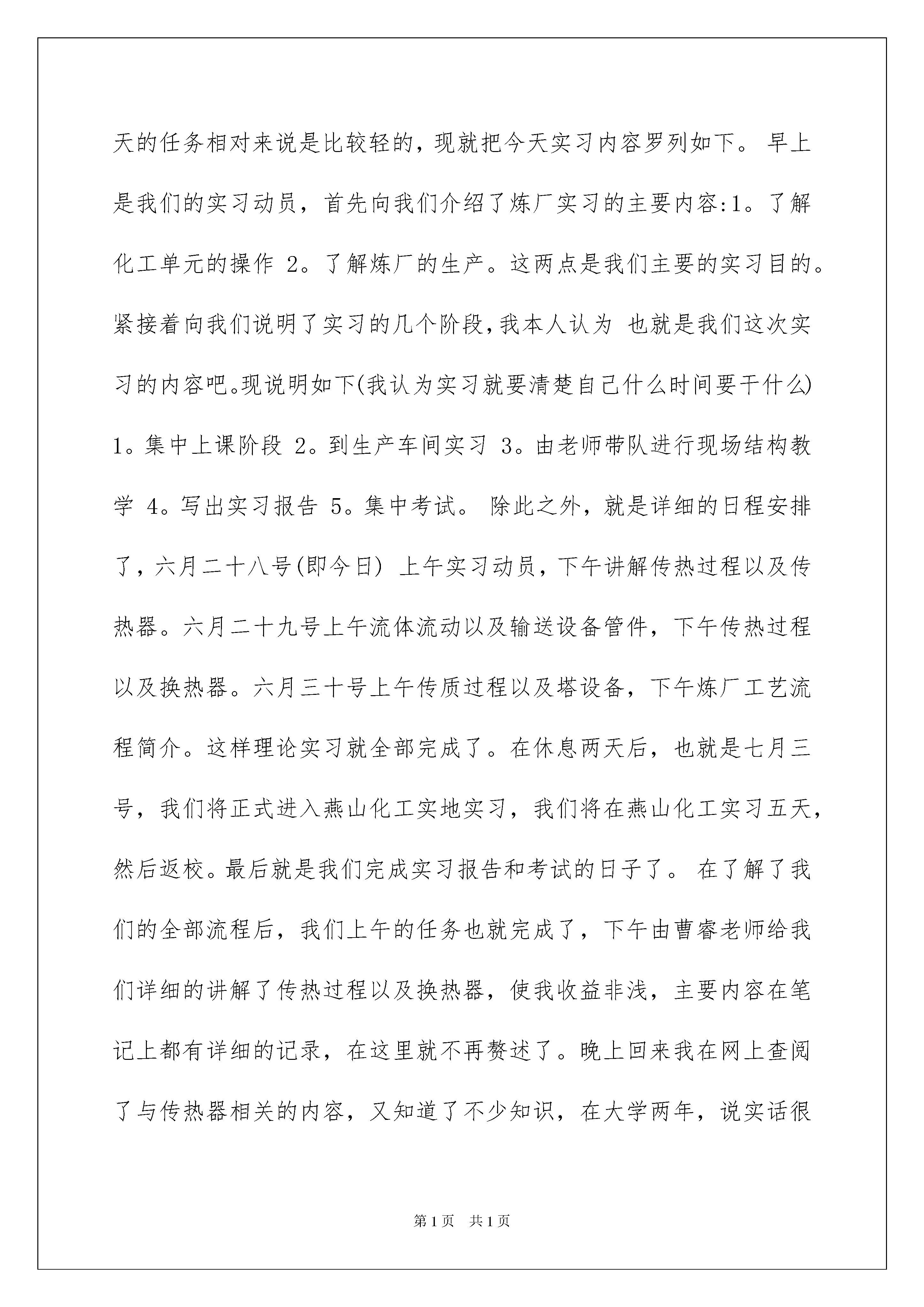 2022有关化工的实习报告三篇有关化工的实习报告三篇随着个人的素质不断提高,我们都不可避免地要接触到报告,我们在写报告的时候要注意语言要准确、简洁。你还在对写报告感到一筹莫展吗?下面是我整理的化工的实习报告3篇,希望对大家有所帮助。化工的实习报告篇1实习日志第二天实习进入第二天,还是理论课,和昨天不同的是,今天的任务相对于昨天是稍微重了点,上午主要的内容是加热炉,这是一种利用燃料燃烧时所产生的高温火焰和烟气为热源来加热杂炉管内流动的截止,使其达到工艺上所许呀的温度的一种火力加热设备,它是工艺上的关键设备也是当前节能工作的重点(操作费用是总费用的60%-70%,燃烧消耗浅度加工3%-6%,中等深度4%-8%,深度加工8%-15%),同时也是固定投资的重要部分,最后也是环境保护的要求,所以要格外注意.加热炉主要由炉管系统(炉管,吊钩,回弯头),炉体系统(耐火层,保温层,保护层),燃烧系统(火嘴,燃烧器,气火嘴.油火嘴,油气联合,自然供风,强制供风),排烟系统组成.其主要的工艺指标有热负荷,炉膛热强度,炉管表面热强度,全炉热效率,炉管内冷油流速和压降,这些都是加热炉的重要参数现在对于加热炉最重要的就是如何提高加热炉热效率的方法,常用的方法有四种:1.采用好的火嘴,提高燃烧效果2.控制合适的过剩空气系数3.做好保温4.提高入炉空气温度.也是我们必须注意的地方.下午由刘梦溪老师给我们说明了有关流体输送机械,它是一种为输送流体而提供能量的机械,流体输送机械的主要用途是将流体从低处运到高处,从低压设备送到高压设备;沿管道输送到较远的地方;克服由位能,静压能之差以及摩擦阻力引起的能量损失.流体输送机械包括流体输送机械-泵和气体输送机械,其中最重要的就是离心泵,它的抓哟部件有叶轮,泵壳,轴封装置关于离心泵的内容不再赘述,在笔记中已经记录详尽.这就是今天的主要内容,以备写实习报告用明天是理论实习的最后一天,夜深了,也准备休息了.呵实习日志第一天理论实习实习第一天,虽然不是去燕山化工实地观察学习,但是心情是很激动的,毕竟是我的第一次实习,呵,今天的任务相对来说是比较轻的,现就把今天实习内容罗列如下。早上是我们的实习动员,首先向我们介绍了炼厂实习的主要内容:1。了解化工单元的操作2。了解炼厂的生产。这两点是我们主要的实习目的。紧接着向我们说明了实习的几个阶段,我本人认为也就是我们这次实习的内容吧。现说明如下(我认为实习就要清楚自己什么时间要干什么)1。集中上课阶段2。到生产车间实习3。由老师带队进行现场结构教学4。写出实习报告5。集中考试。除此之外,就是详细的日程安排了,六月二十八号(即今日)上午实习动员,下午讲解传热过程以及传热器。六月二十九号上午流体流动以及输送设备管件,下午传热过程以及换热器。六月三十号上午传质过程以及塔设备,下午炼厂工艺流程简介。这样理论实习就全部完成了。在休息两天后,也就是七月三号,我们将正式进入燕山化工实地实习,我们将在燕山化工实习五天,然后返校。最后就是我们完成实习报告和考试的日子了。在了解了我们的全部流程后,我们上午的任务也就完成了,下午由曹睿老师给我们详细的讲解了传热过程以及换热器,使我收益非浅,主要内容在笔记上都有详细的记录,在这里就不再赘述了。晚上回来我在网上查阅了与传热器相关的内容,又知道了不少知识,在大学两年,说实话很久没这么认真的学习过了,今天感觉很充实。最后要说的是这次实习我们是比较幸运的,老师说在炼厂,会有厂长级的人为我们讲解的,所以我会努力的,今天的的实习总结到此结束。化工的实习报告篇2为期两周的金工实习结束了,带着一些不舍,我们离开了工业培训中心。两周的时间太短,使我们无法接触到全部的工种,但这忙碌而充实的两周确实使我们每一个人都获益匪浅,锻炼了动手动脑能力,熟悉了一些基本的工业加工方法和流程,掌握了一些常用机器的操作方法。这对于一个工科学生来说是一次难得的学习机会和经历,对以后走进工厂奠定了一定的实践基础,积累了宝贵经验。实习期间每一天都有新鲜的内容,每一天都有新的挑战。在实习基地,我第一次有了走入工厂的感觉,一台台陌生的机器井然安放,想到自己将是它们的操,不觉兴奋异常。它们中的一些年龄比我还大,代表了八十年代的生产力,有些已在现实生产中被淘汰,但对重在了解其工作原理和操作的我们工科本科生来说还是很有教育指导意义的。尽管如此,我发现要自如地操作它们也并不是想象中的那么轻而易举,这才发觉自己的差距还很大,要走的路还很长。在实习前期,我接触了两种重要的机床—车床和铣床。因为接触的是比较旧式的机器,人工操作还占了很大比重,也正因为如此,它们上面的按