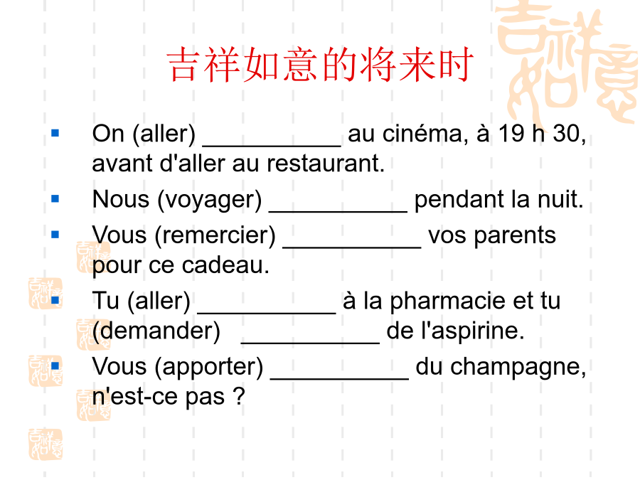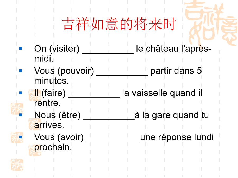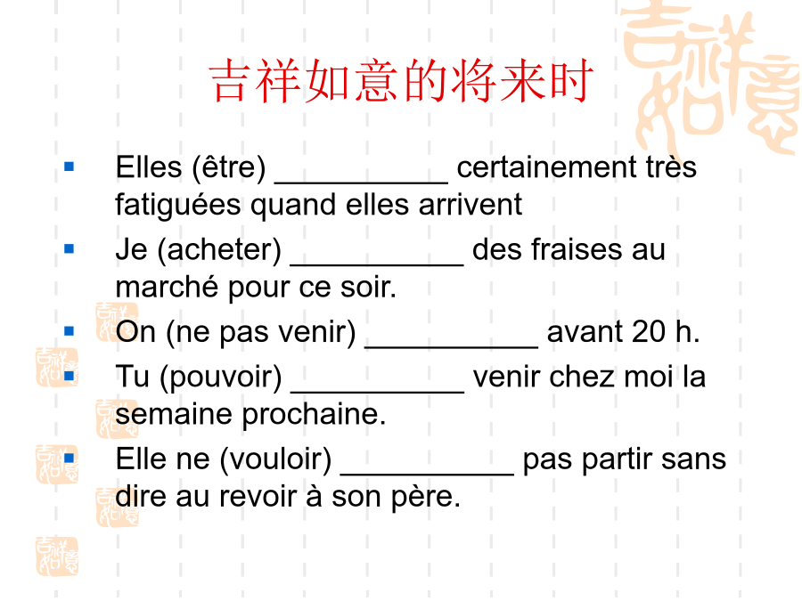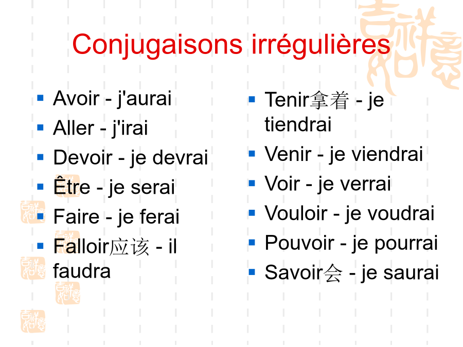 吉祥如意的将来时Conjugaisonsirrégulières吉祥如意的将来时吉祥如意的将来时吉祥如意的将来时吉祥如意的将来时吉祥如意的将来时