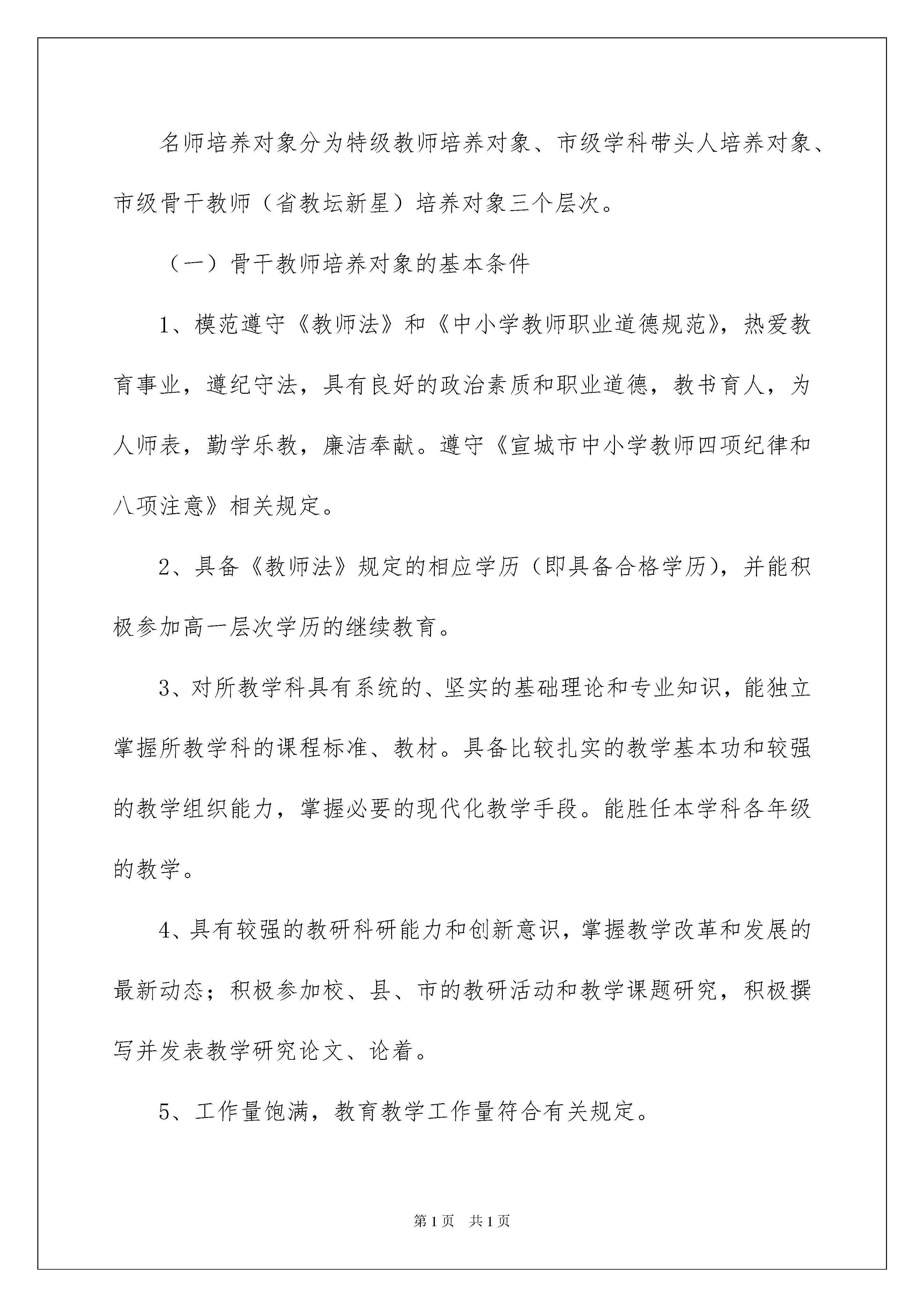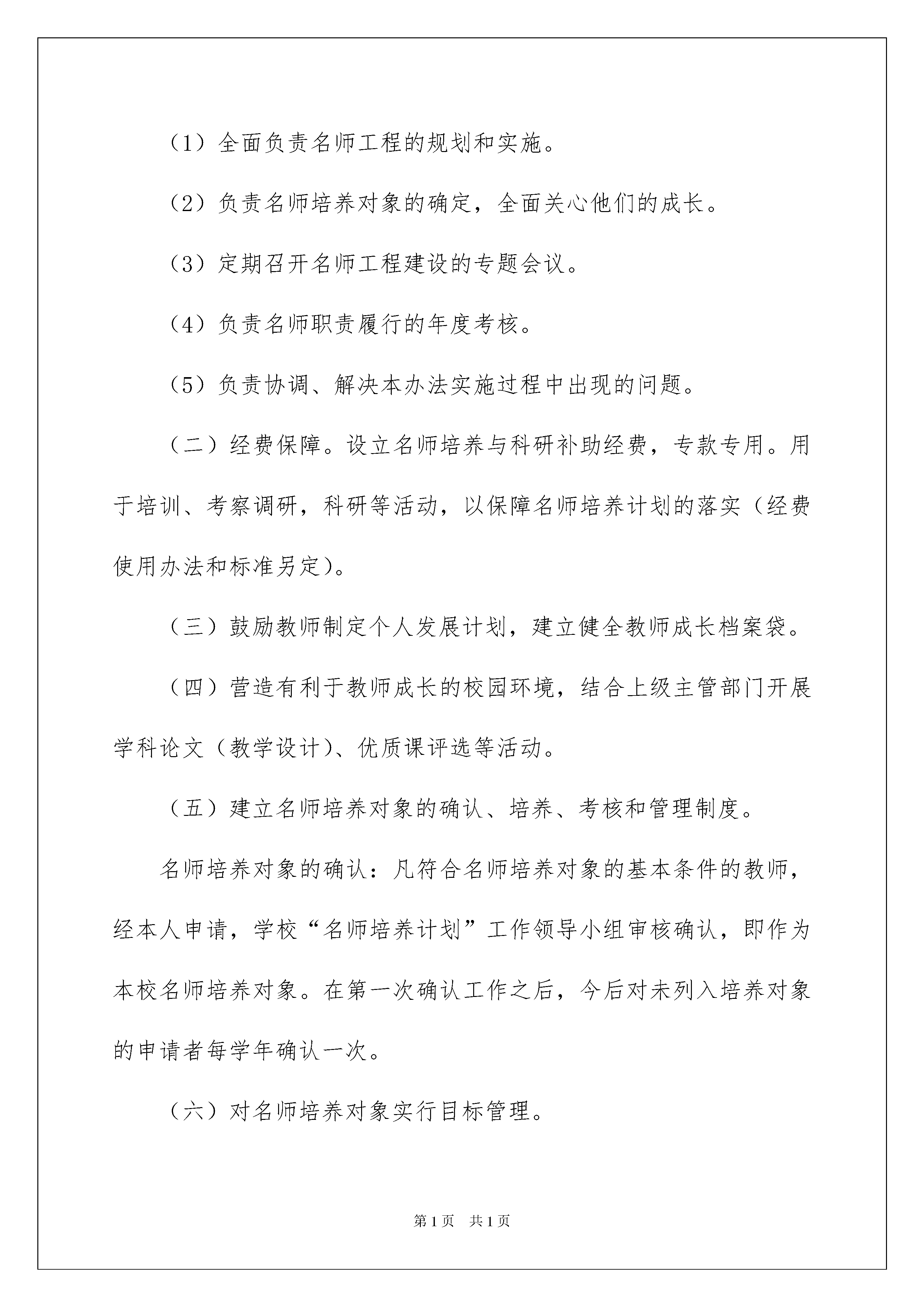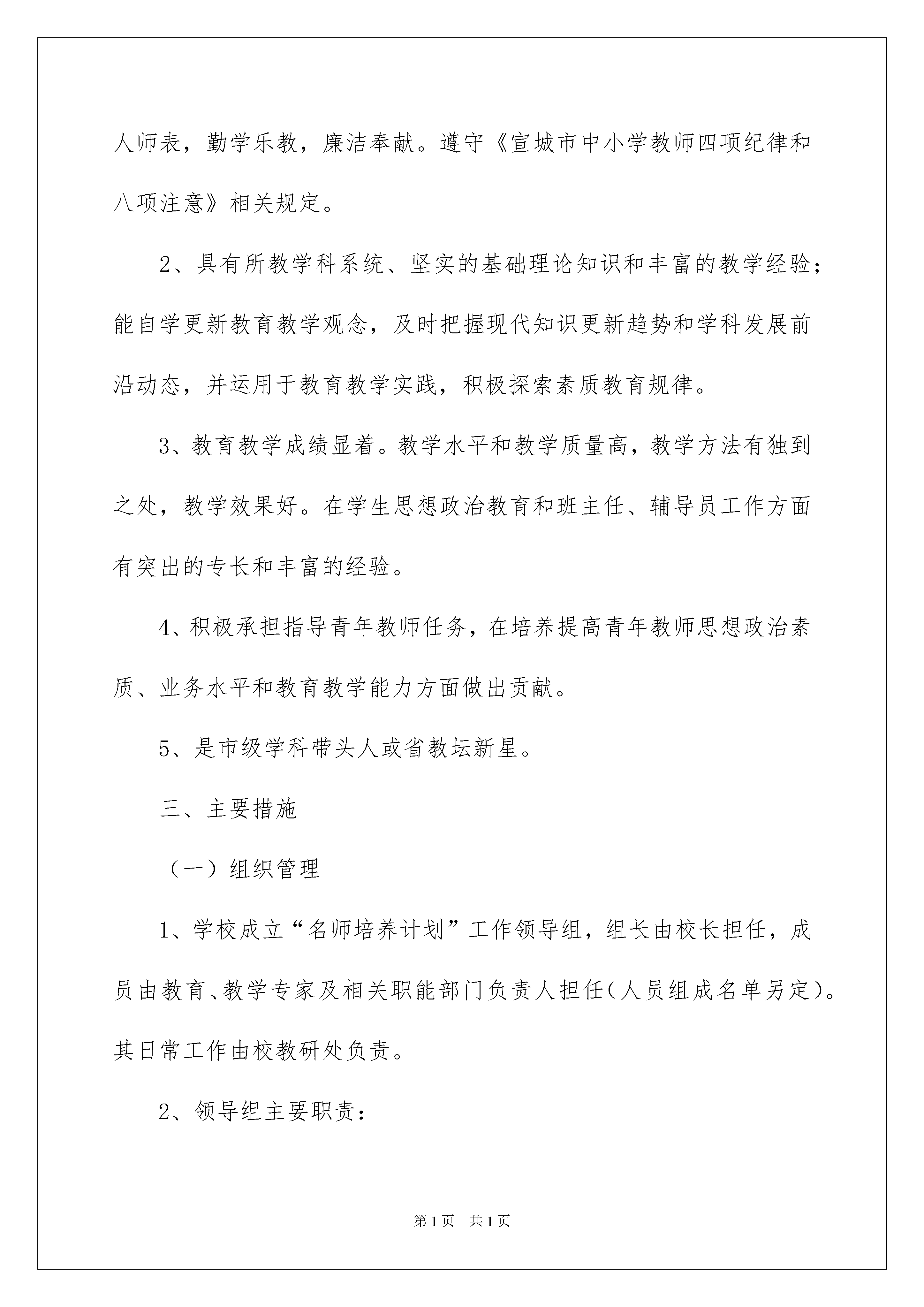 2022有关工作方案模板集锦5篇有关工作方案模板集锦5篇为了确保事情或工作得以顺利进行,常常需要提前制定一份优秀的方案,方案一般包括指导思想、主要目标、工作重点、实施步骤、政策措施、具体要求等项目。方案应该怎么制定才好呢?下面是我收集整理的工作方案5篇,欢迎阅读,希望大家能够喜欢。工作方案篇1一、指导思想和具体目标为贯彻《国家中长期教育改革和发展规划纲要(20xx—20xx)》,落实《关于实施中小学教育“四个提升”计划的意见》,进一步提高我校教师队伍整体素质,培养选拔一批先进教育教学人才,培育和造就一支师德高尚、理念先进、善于学习、勇于实践、业绩突出的名师队伍,根据市县有关文件精神,结合我校实际,特制定本办法。具体目标是用3——5年左右的时间培养一定数量的特级教师、市级学科带头人和市级骨干教师(省教坛新星)。二、名师培养对象应具备的基本条件名师培养对象分为特级教师培养对象、市级学科带头人培养对象、市级骨干教师(省教坛新星)培养对象三个层次。(一)骨干教师培养对象的基本条件1、模范遵守《教师法》和《中小学教师职业道德规范》,热爱教育事业,遵纪守法,具有良好的政治素质和职业道德,教书育人,为人师表,勤学乐教,廉洁奉献。遵守《宣城市中小学教师四项纪律和八项注意》相关规定。2、具备《教师法》规定的相应学历(即具备合格学历),并能积极参加高一层次学历的继续教育。3、对所教学科具有系统的、坚实的基础理论和专业知识,能独立掌握所教学科的课程标准、教材。具备比较扎实的教学基本功和较强的教学组织能力,掌握必要的现代化教学手段。能胜任本学科各年级的教学。4、具有较强的教研科研能力和创新意识,掌握教学改革和发展的最新动态;积极参加校、县、市的教研活动和教学课题研究,积极撰写并发表教学研究论文、论着。5、工作量饱满,教育教学工作量符合有关规定。(二)学科带头人培养对象的基本条件1、模范遵守《教师法》和《中小学教师职业道德规范》,热爱教育事业,遵纪守法,具有良好的政治素质和职业道德,教书育人,为人师表,勤学乐教,廉洁奉献。遵守《宣城市中小学教师四项纪律和八项注意》相关规定。2、具有较高的文化素养。有系统、扎实的学科专业知识及基础理论知识,精通本学科课程标准(教学大纲)和教材。在本学科教学中对校内的广大教师能发挥示范、指导作用。3、完成规定的教学工作量,学科教学经验丰富,教育教学成绩显着,在市统一组织的教学质量检测中成绩优良。4、具有参加教育教学科研的热情和能力,有自己主持或参与的课题。5、年龄在四十周岁左右。6、具有中级以上职称。(三)特级教师培养对象的`基本条件1、模范遵守《教师法》和《中小学教师职业道德规范》,热爱教育事业,遵纪守法,具有良好的政治素质和职业道德,教书育人,为人师表,勤学乐教,廉洁奉献。遵守《宣城市中小学教师四项纪律和八项注意》相关规定。2、具有所教学科系统、坚实的基础理论知识和丰富的教学经验;能自学更新教育教学观念,及时把握现代知识更新趋势和学科发展前沿动态,并运用于教育教学实践,积极探索素质教育规律。3、教育教学成绩显着。教学水平和教学质量高,教学方法有独到之处,教学效果好。在学生思想政治教育和班主任、辅导员工作方面有突出的专长和丰富的经验。4、积极承担指导青年教师任务,在培养提高青年教师思想政治素质、业务水平和教育教学能力方面做出贡献。5、是市级学科带头人或省教坛新星。三、主要措施(一)组织管理1、学校成立“名师培养计划”工作领导组,组长由校长担任,成员由教育、教学专家及相关职能部门负责人担任(人员组成名单另定)。其日常工作由校教研处负责。2、领导组主要职责:(1)全面负责名师工程的规划和实施。(2)负责名师培养对象的确定,全面关心他们的成长。(3)定期召开名师工程建设的专题会议。(4)负责名师职责履行的年度考核。(5)负责协调、解决本办法实施过程中出现的问题。(二)经费保障。设立名师培养与科研补助经费,专款专用。用于培训、考察调研,科研等活动,以保障名师培养计划的落实(经费使用办法和标准另定)。(三)鼓励教师制定个人发展计划,建立健全教师成长档案袋。(四)营造有利于教师成长的校园环境,结合上级主管部门开展学科论文(教学设计)、优质课评选等活动。(五)建立名师培养对象的确认、培养、考核和管理制度。名师培养对象的确认:凡符合名师培养对象的基本条件的教师,经本人申请,学校“名师培养计划”工作领导小组审核确认,即作为本校名师培养对象。在第一次确认工作之后,今后对未列入培养对象的申请者每学年确认一次。(六)对名师培养对象实行目标管理。学校“名师培养计划”工作领导小组根据培养对象的
