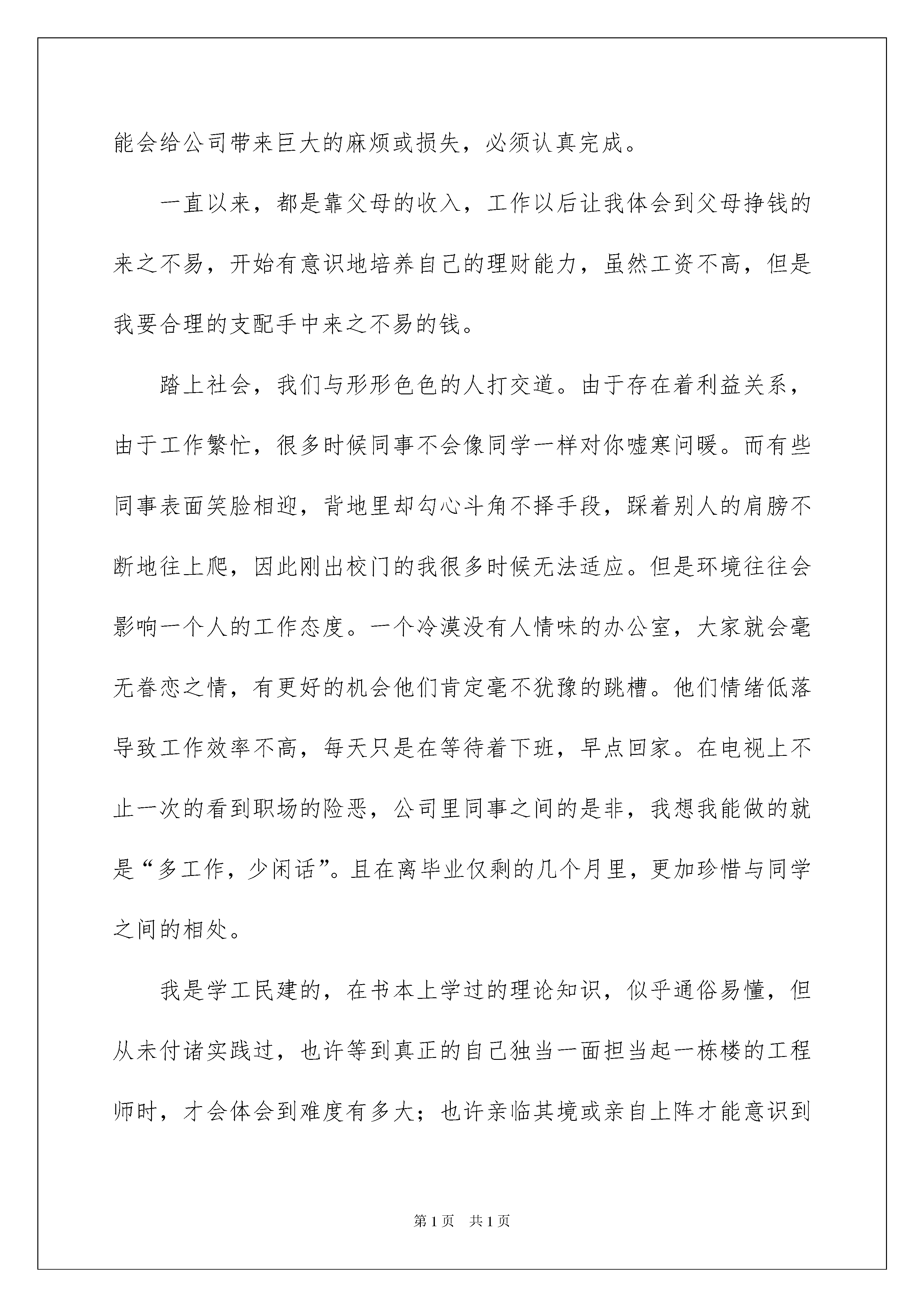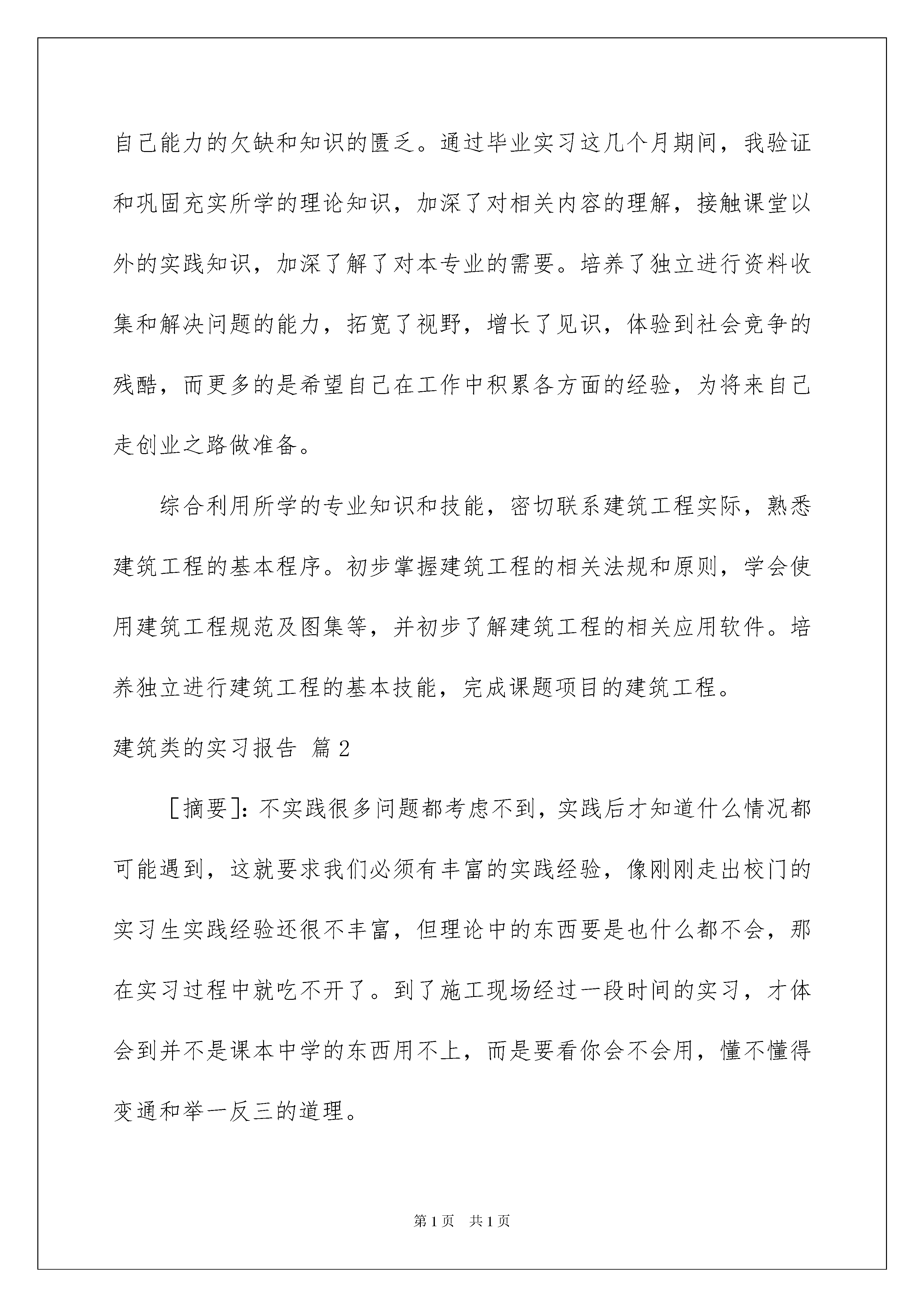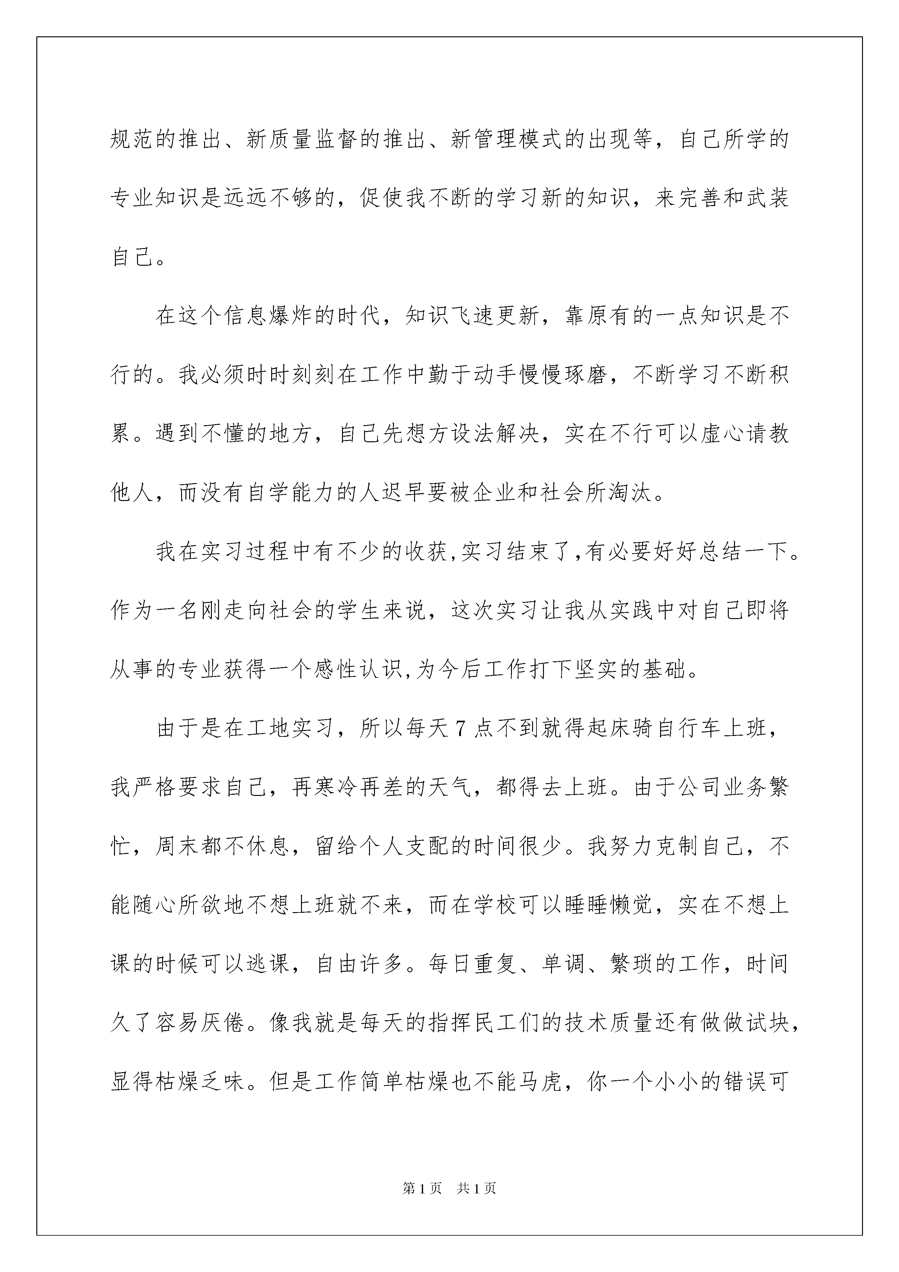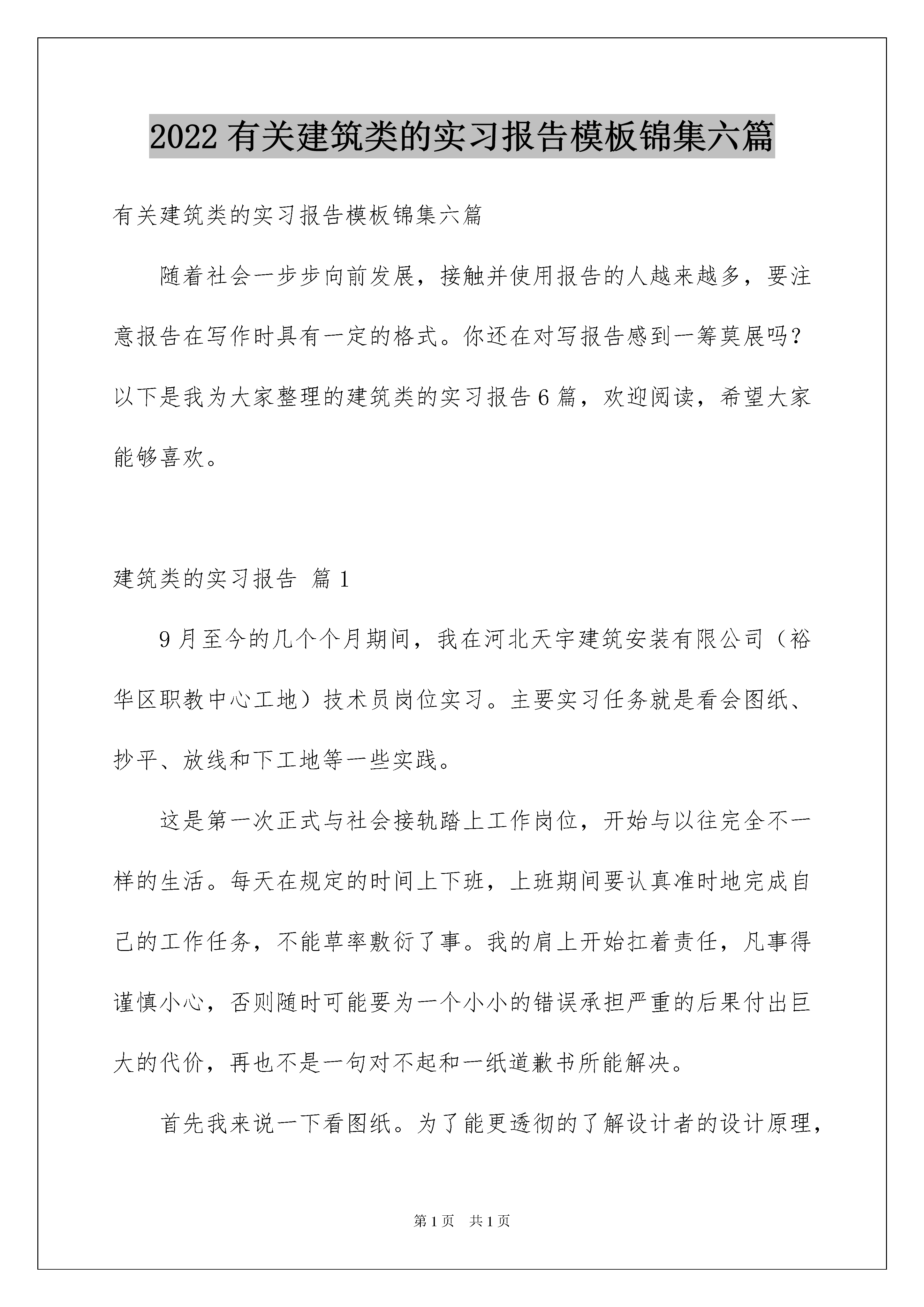 2022有关建筑类的实习报告模板锦集六篇有关建筑类的实习报告模板锦集六篇随着社会一步步向前发展,接触并使用报告的人越来越多,要注意报告在写作时具有一定的格式。你还在对写报告感到一筹莫展吗?以下是我为大家整理的建筑类的实习报告6篇,欢迎阅读,希望大家能够喜欢。建筑类的实习报告篇19月至今的几个个月期间,我在河北天宇建筑安装有限公司(裕华区职教中心工地)技术员岗位实习。主要实习任务就是看会图纸、抄平、放线和下工地等一些实践。这是第一次正式与社会接轨踏上工作岗位,开始与以往完全不一样的生活。每天在规定的时间上下班,上班期间要认真准时地完成自己的工作任务,不能草率敷衍了事。我的肩上开始扛着责任,凡事得谨慎小心,否则随时可能要为一个小小的错误承担严重的后果付出巨大的代价,再也不是一句对不起和一纸道歉书所能解决。首先我来说一下看图纸。为了能更透彻的了解设计者的设计原理,我将办公室里的图集看了个遍,对图纸进行了深入的研究,在这个过程中还提出了很多有见解性的问题,我和大家也进行了激烈的讨论,争取把每处不明白的地方都弄明白。因为,实习过后就要真正进行工作了,对我们专业来说,看不懂图纸就不能当一个合格的工地现场施工技术员,所以看图对我来说特别重要。从学校到社会的转变,身边接触的人也完全换了角色,老师变成板,同学变成同事,相处之道完全不同。在这巨大的转变中,我彷徨,迷茫,无法马上适应新的环境。我看不惯企业之间残酷的竞争,无法忍受同事之间漠不关心的眼神和言语。很多时候觉得自己没有受到领导重用,所干的只是一些无关重要的杂活,自己的提议或工作不能得到老板的肯定。做不出成绩时,会有来自各方面的压力,老板的眼色同事的嘲讽。而在学校,有同学和老师的默默关心和支持,每日只是上上课,很轻松。常言道:工作一两年胜过十多年的读书。长达一年的实习期间,我从中学到了很多书本上学不到的知识,关于做人,做事,做学问等等。“在学校里学的不是知识,而是一种叫做自学的能力”。参加工作后才能深刻体会这句话的含义。我担任的是技术员一职,随着新技术规范的推出、新质量监督的推出、新管理模式的出现等,自己所学的专业知识是远远不够的,促使我不断的学习新的知识,来完善和武装自己。在这个信息爆炸的时代,知识飞速更新,靠原有的一点知识是不行的。我必须时时刻刻在工作中勤于动手慢慢琢磨,不断学习不断积累。遇到不懂的地方,自己先想方设法解决,实在不行可以虚心请教他人,而没有自学能力的人迟早要被企业和社会所淘汰。我在实习过程中有不少的收获,实习结束了,有必要好好总结一下。作为一名刚走向社会的学生来说,这次实习让我从实践中对自己即将从事的专业获得一个感性认识,为今后工作打下坚实的基础。由于是在工地实习,所以每天7点不到就得起床骑自行车上班,我严格要求自己,再寒冷再差的天气,都得去上班。由于公司业务繁忙,周末都不休息,留给个人支配的时间很少。我努力克制自己,不能随心所欲地不想上班就不来,而在学校可以睡睡懒觉,实在不想上课的时候可以逃课,自由许多。每日重复、单调、繁琐的工作,时间久了容易厌倦。像我就是每天的指挥民工们的技术质量还有做做试块,显得枯燥乏味。但是工作简单枯燥也不能马虎,你一个小小的错误可能会给公司带来巨大的麻烦或损失,必须认真完成。一直以来,都是靠父母的收入,工作以后让我体会到父母挣钱的来之不易,开始有意识地培养自己的理财能力,虽然工资不高,但是我要合理的支配手中来之不易的钱。踏上社会,我们与形形色色的人打交道。由于存在着利益关系,由于工作繁忙,很多时候同事不会像同学一样对你嘘寒问暖。而有些同事表面笑脸相迎,背地里却勾心斗角不择手段,踩着别人的肩膀不断地往上爬,因此刚出校门的我很多时候无法适应。但是环境往往会影响一个人的工作态度。一个冷漠没有人情味的办公室,大家就会毫无眷恋之情,有更好的机会他们肯定毫不犹豫的跳槽。他们情绪低落导致工作效率不高,每天只是在等待着下班,早点回家。在电视上不止一次的看到职场的险恶,公司里同事之间的是非,我想我能做的就是“多工作,少闲话”。且在离毕业仅剩的几个月里,更加珍惜与同学之间的相处。我是学工民建的,在书本上学过的理论知识,似乎通俗易懂,但从未付诸实践过,也许等到真正的自己独当一面担当起一栋楼的工程师时,才会体会到难度有多大;也许亲临其境或亲自上阵才能意识到自己能力的欠缺和知识的匮乏。通过毕业实习这几个月期间,我验证和巩固充实所学的理论知识,加深了对相关内容的理解,接触课堂以外的实践知识,加深了解了对本专业的需要。培养了独立进行资料收集和解决问题的能力,拓宽了视野,增长了见识,体验到社会竞争的残酷,而更多的是希望自
