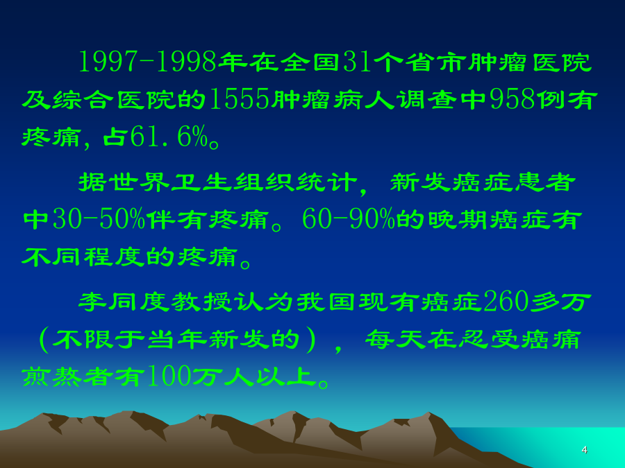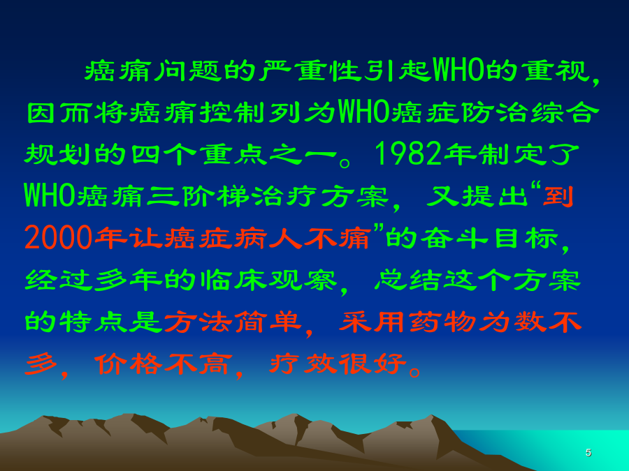 癌痛三阶梯治疗方案和进展234567891011121314151617181920212223242526272829个体化给药个体化给药四个步骤(TIME原则)个体化给药:美施康定吗啡控释片滴定方案333435363738394041424344454647484950515253545556575859606162鞘内镇痛装置鞘内镇痛装置鞘内吗啡6667全区加强肿瘤规范化诊疗管理工作实施方案一、目标和任务二、主要措施二、主要措施(二)建立肿瘤多学科协作诊疗模式。(三)规范诊疗行为(三)规范诊疗行为(三)规范诊疗行为(四)建立科学管理方式。(四)建立科学管理方式。三、工作要求79