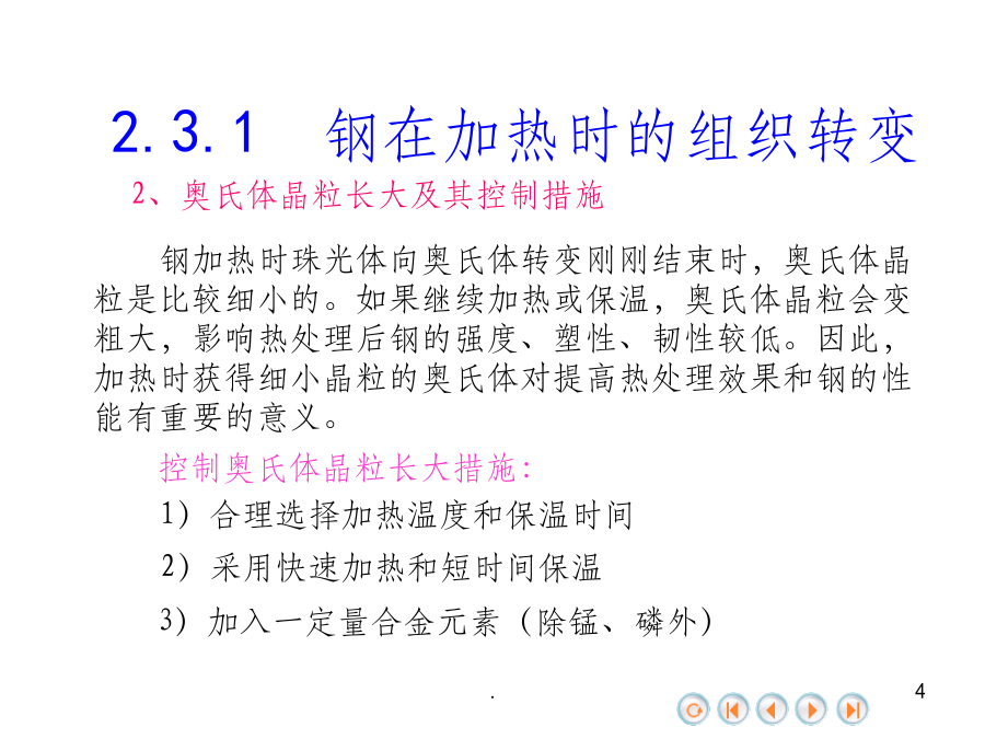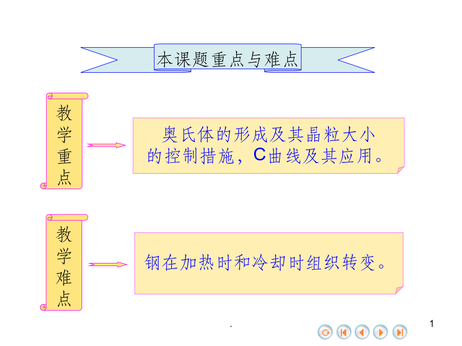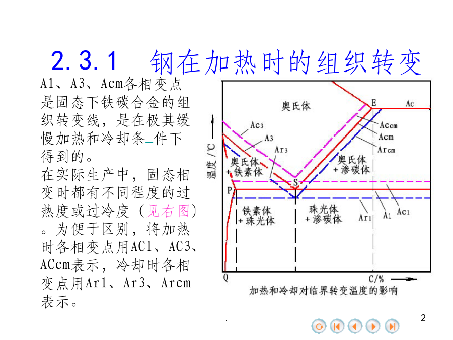 教 学 重 点3)加入一定量合金元素(除锰、磷外)2.3.2钢在冷却时的组织转变2.3.2钢在冷却时的组织转变2.3.2钢在冷却时的组织转变2.3.2钢在冷却时的组织转变2.3.2钢在冷却时的组织转变2.3.2钢在冷却时的组织转变2.3.2钢在冷却时的组织转变2.3.2钢在冷却时的组织转变2.3.2钢在冷却时的组织转变
