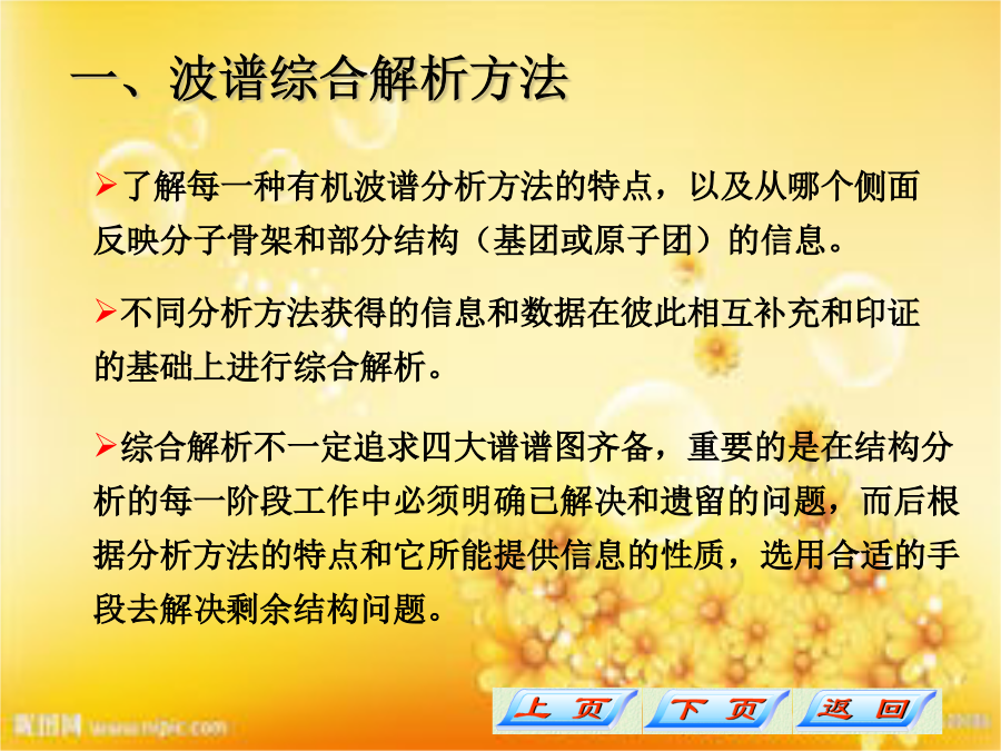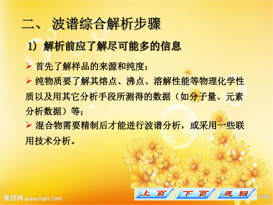 第七章波谱综合解析一、波谱综合解析方法二、波谱综合解析步骤波谱综合解析步骤波谱综合解析步骤波谱综合解析步骤波谱综合解析步骤波谱综合解析步骤波谱综合解析步骤波谱综合解析步骤波谱综合解析步骤波谱综合解析步骤三、谱图综合解析实例解:1)不饱和度:u=1+5-10/2=1谱图综合解析实例1谱图综合解析实例1谱图综合解析实例1谱图综合解析实例2谱图综合解析实例2谱图综合解析实例2谱图综合解析实例2谱图综合解析实例2谱图综合解析实例2谱图综合解析实例2谱图综合解析实例3谱图综合解析实例3谱图综合解析实例3谱图综合解析实例3谱图综合解析实例3谱图综合解析实例3谱图综合解析实例3谱图综合解析实例4谱图综合解析实例4谱图综合解析实例4谱图综合解析实例4谱图综合解析实例4谱图综合解析实例4谱图综合解析实例4谱图综合解析实例4谱图综合解析实例5谱图综合解析实例5谱图综合解析实例5谱图综合解析实例5谱图综合解析实例5谱图综合解析实例6谱图综合解析实例6谱图综合解析实例6谱图综合解析实例6