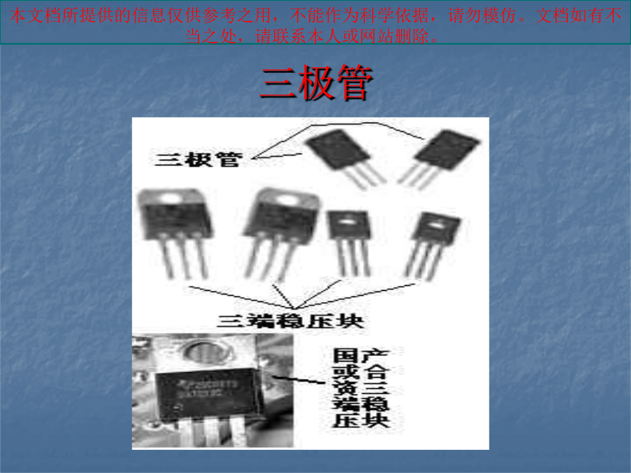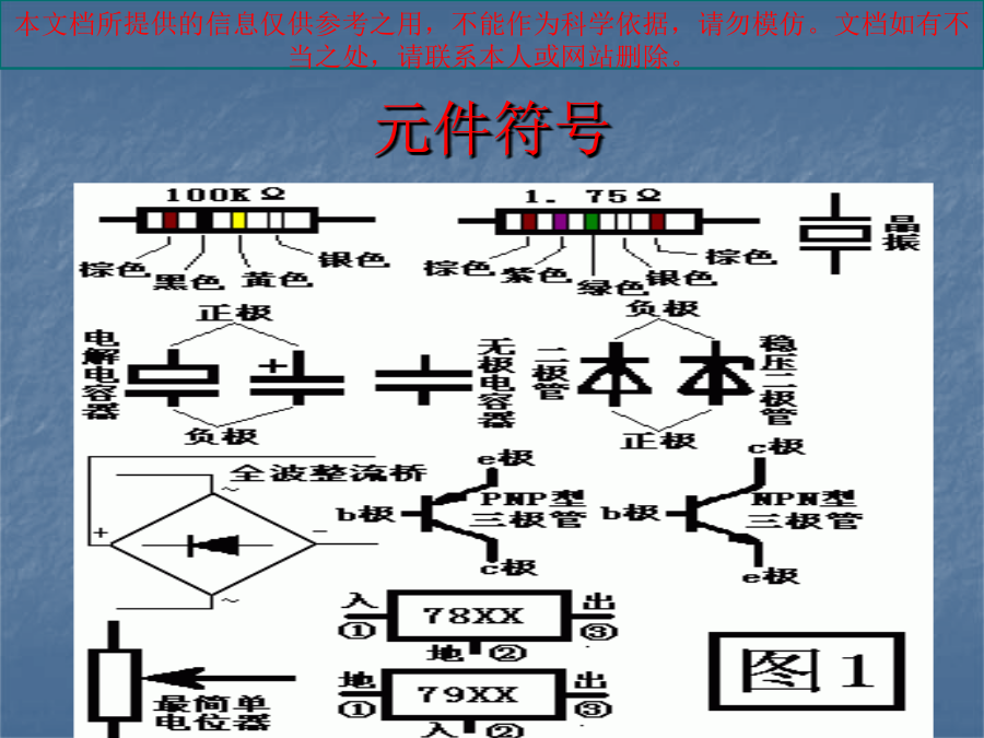 元件符号无极性电容电解电容二极管三极管保险管,多脚开关,电位器一、概述1.元器件的重要性元器件构成电子产品的基本元素元器件构成电子产品的基本元素推动电子产品的发展主要因素推动电子产品的发展主要因素性能的影响二、元器件基础知识2.元件封装 封装外形分类:THT-通孔安装形式。 SMT-表面安装形式。通孔元件,它有引脚穿过PCB,然后焊接。 表面安装元件被直接焊到PCB表面上被称作焊盘的金属上。 通孔元件的形式很多,有轴向、径向两种。 轴向元件: 元件引脚从身体两端引出的称为轴向元件。 径向元件: 元件的2个或多个引脚从同一方向伸出。典型的轴向元件有: 电阻、二极管、电容。 典型的径向元件有: 晶体管、电容、二极管、滤波器和晶振。表面安装元件或SMD,相对于通孔元件而言,越来越流行。 表面安装元件的引脚不是穿过PWB,而是直接安装在PCB表面的焊盘上,并焊接。很多通孔引脚与表面安装元件的功能相等,但表面安装元件的体积要小得多。 SMD器件没有很长的引脚,因为它们不需要穿过PWB。 它们与PCB的接触也有2种形式,第一种是有引脚元件;第二种是无引脚元件。在有引脚的元件中,也有2种引脚形式,J形和欧翼形。J形引脚的形状像字母J,J的底部与PCB焊盘相连;欧翼形引脚的形状像海欧的羽翼。无引脚元件,它与PCB的接触是通过身体两端引出的金属端与PCB直接焊接而成。三、电子元器件3、基本概念电抗组件标称值与偏差电抗组件标称值单位与符号电抗组件的标志电抗组件的标志1.电抗元件-电阻外形尺寸及封装结构结构不同种类和用途表示方法表示方法电抗组件的标志性能指标种类和用途电抗元件-电容电抗元件:电容电抗元件:电容电抗元件:电容电解电容(铝、钽)瓷介电容器瓷介电容器电抗元件:电感电感:变压器4.半导体分离器件4.半导体分离器件4.半导体分离器件4.半导体分离器件5.集成电路5.集成电路:封装5.集成电路6.机电组件6.机电组件6.机电组件半导体分离器件的发展方向 IC元件的发展方向 总结 一、概述 二、元器件知识 三、元器件封装的发展方向 磁控声光报警安装注意事项磁控声光报警安装注意事项磁控声光报警安装注意事项
