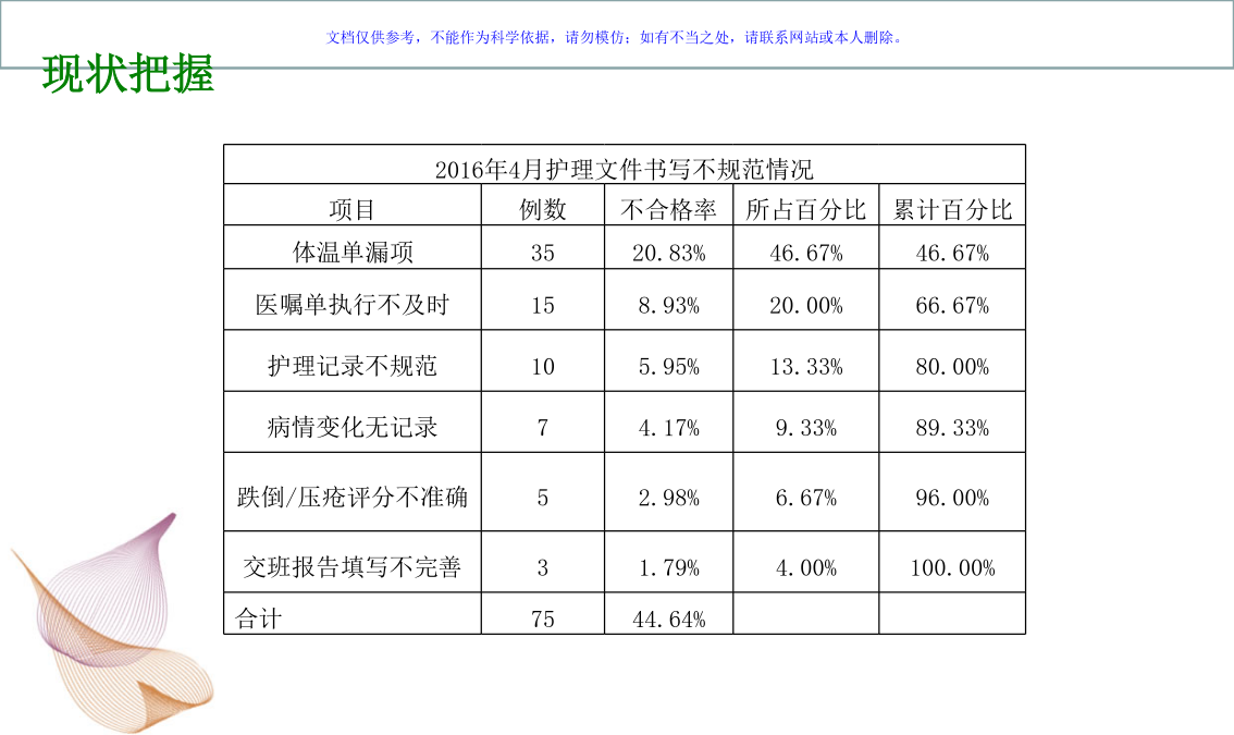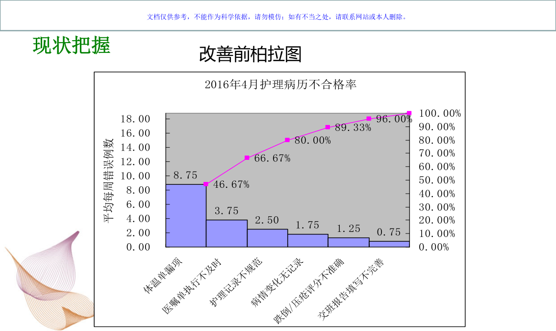 选题背景现状把握全体人员开会讨论现状把握制定目标原因分析对策拟定对策拟定对策拟定效果评价 上述措施有效。 提出新问题:降低住院患者口服药漏服率。进入下一PDCA循环。2019感谢聆听!