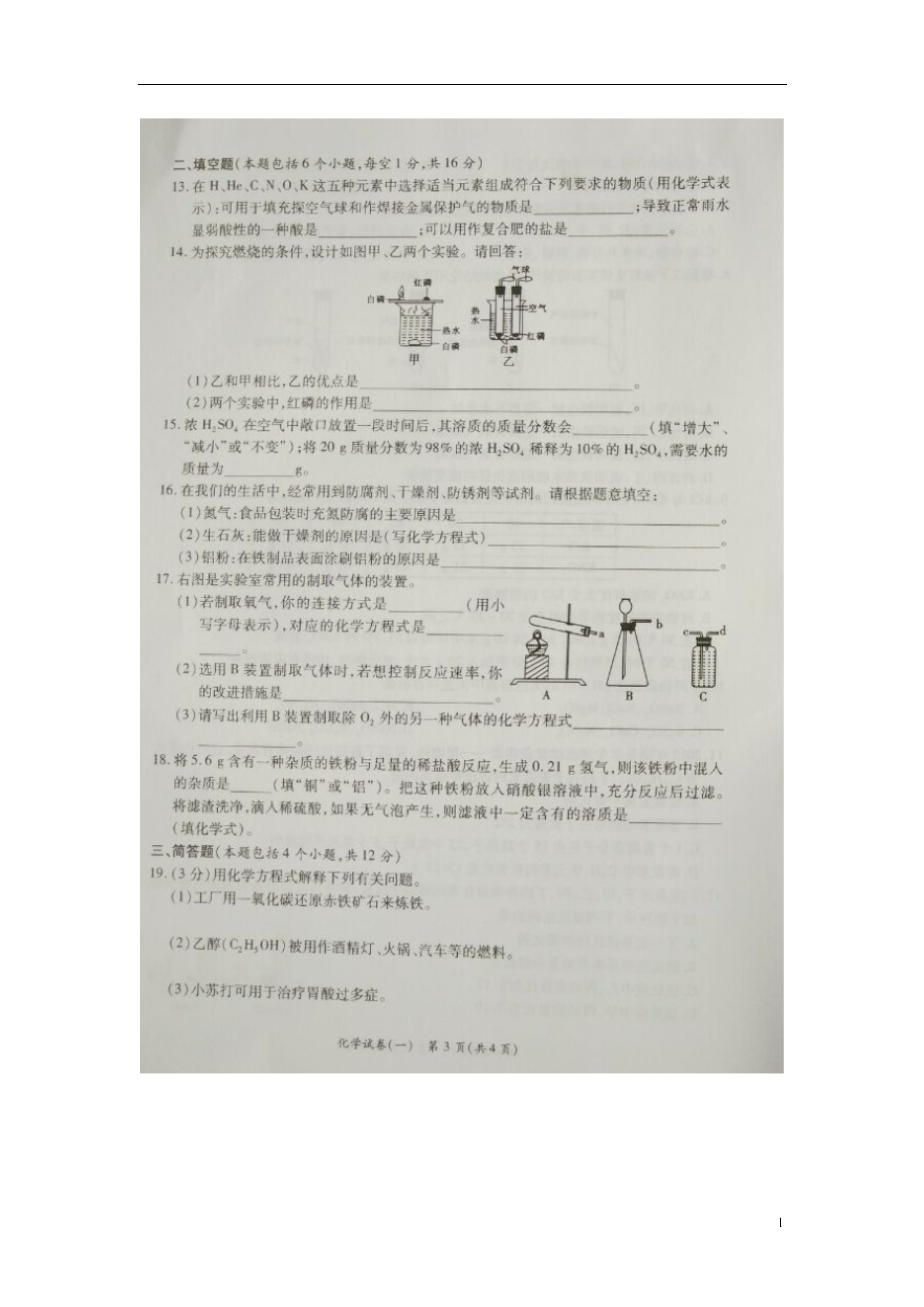 1河南省商丘市虞城县求实学校2016届九年级化学下学期第二次模拟试题