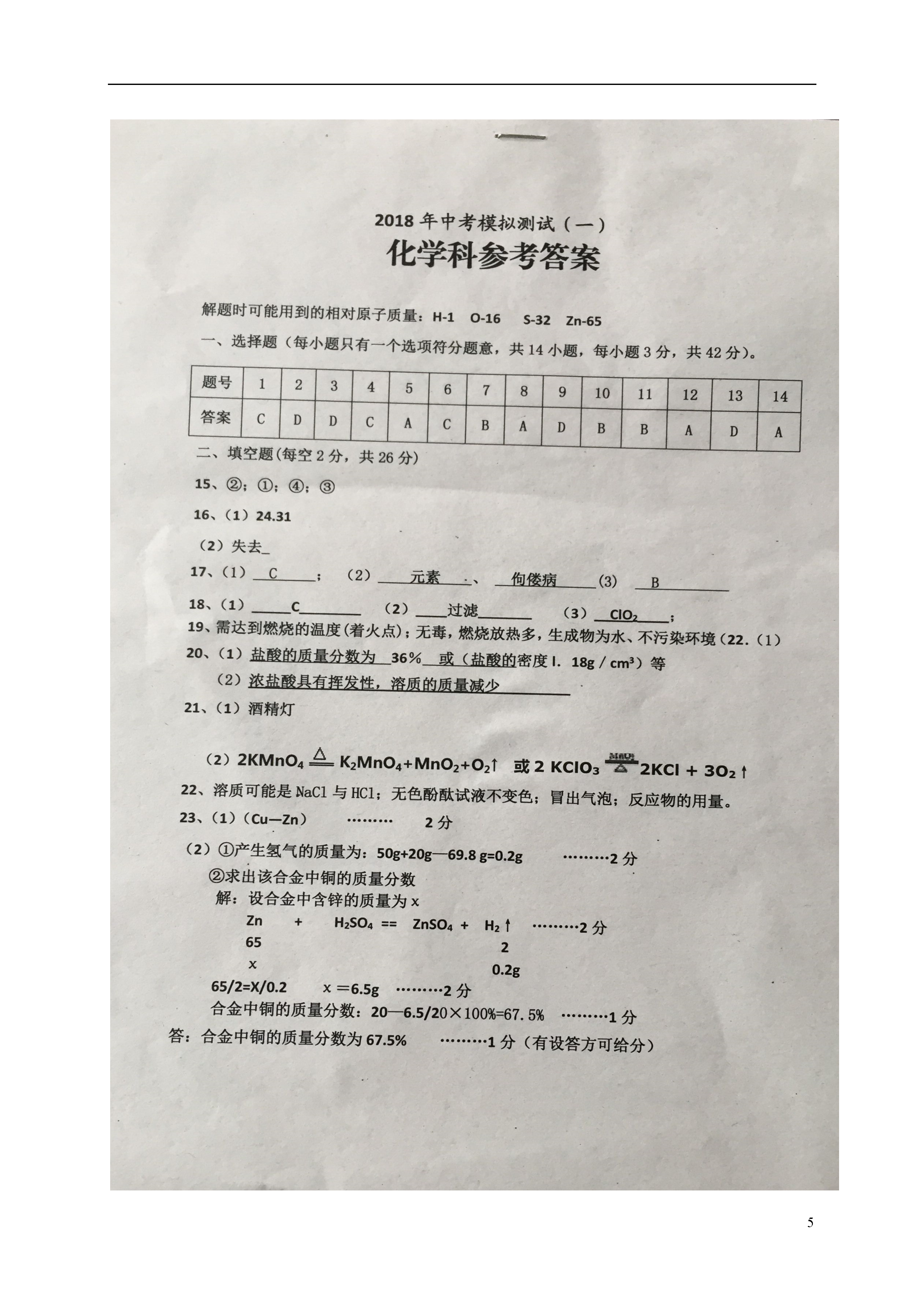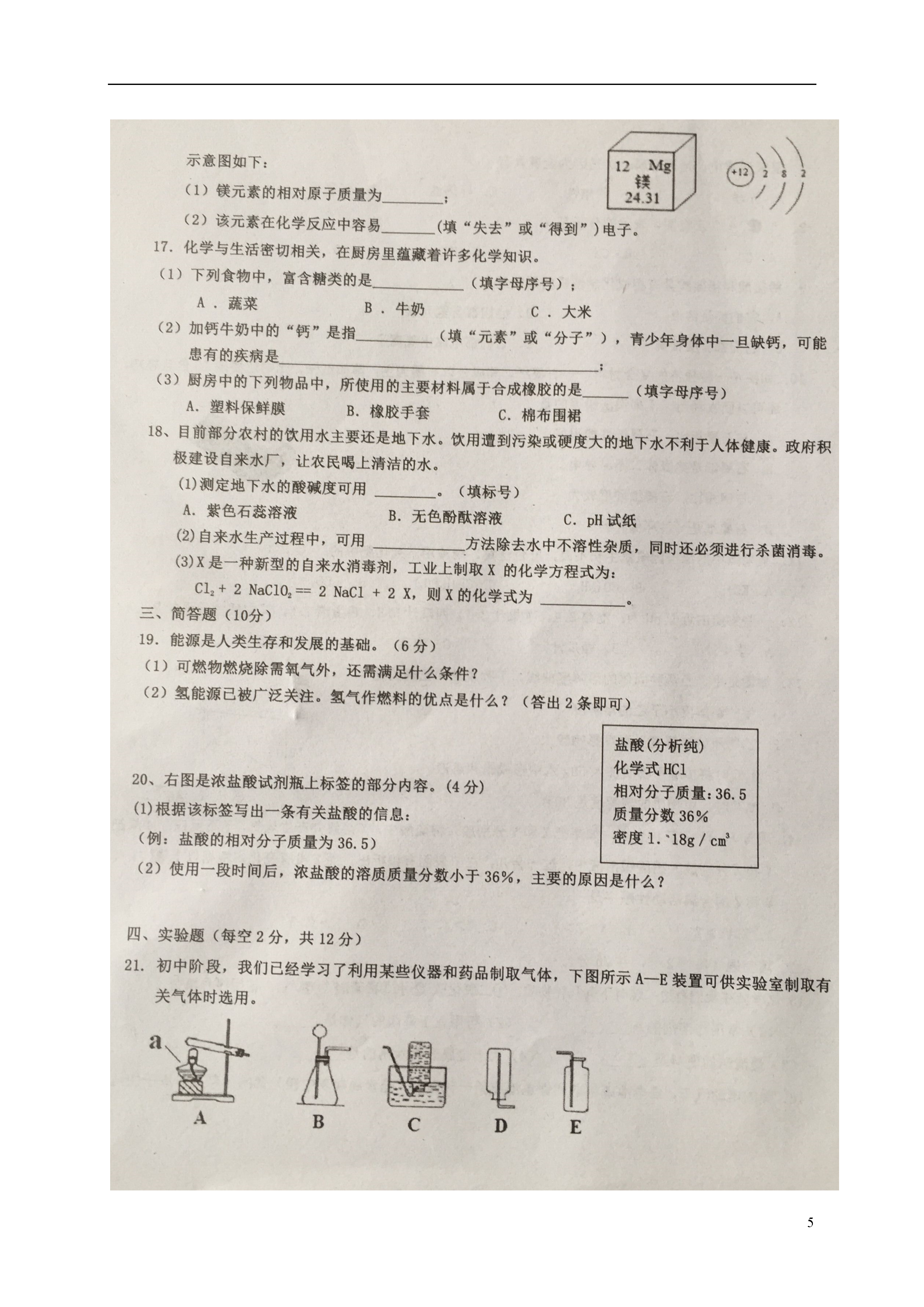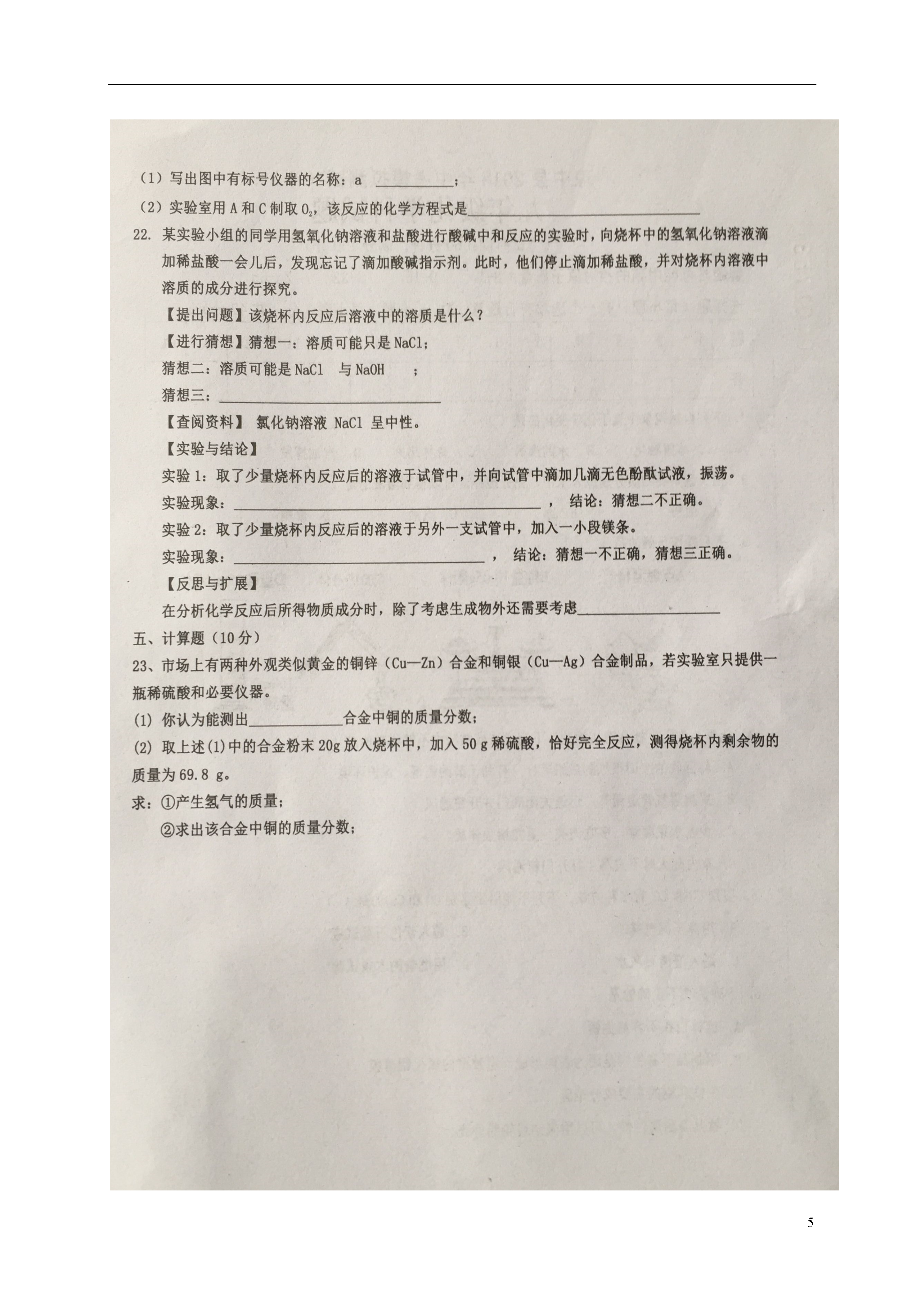 5海南省琼中县2018届九年级化学下学期期中试题(扫描版)