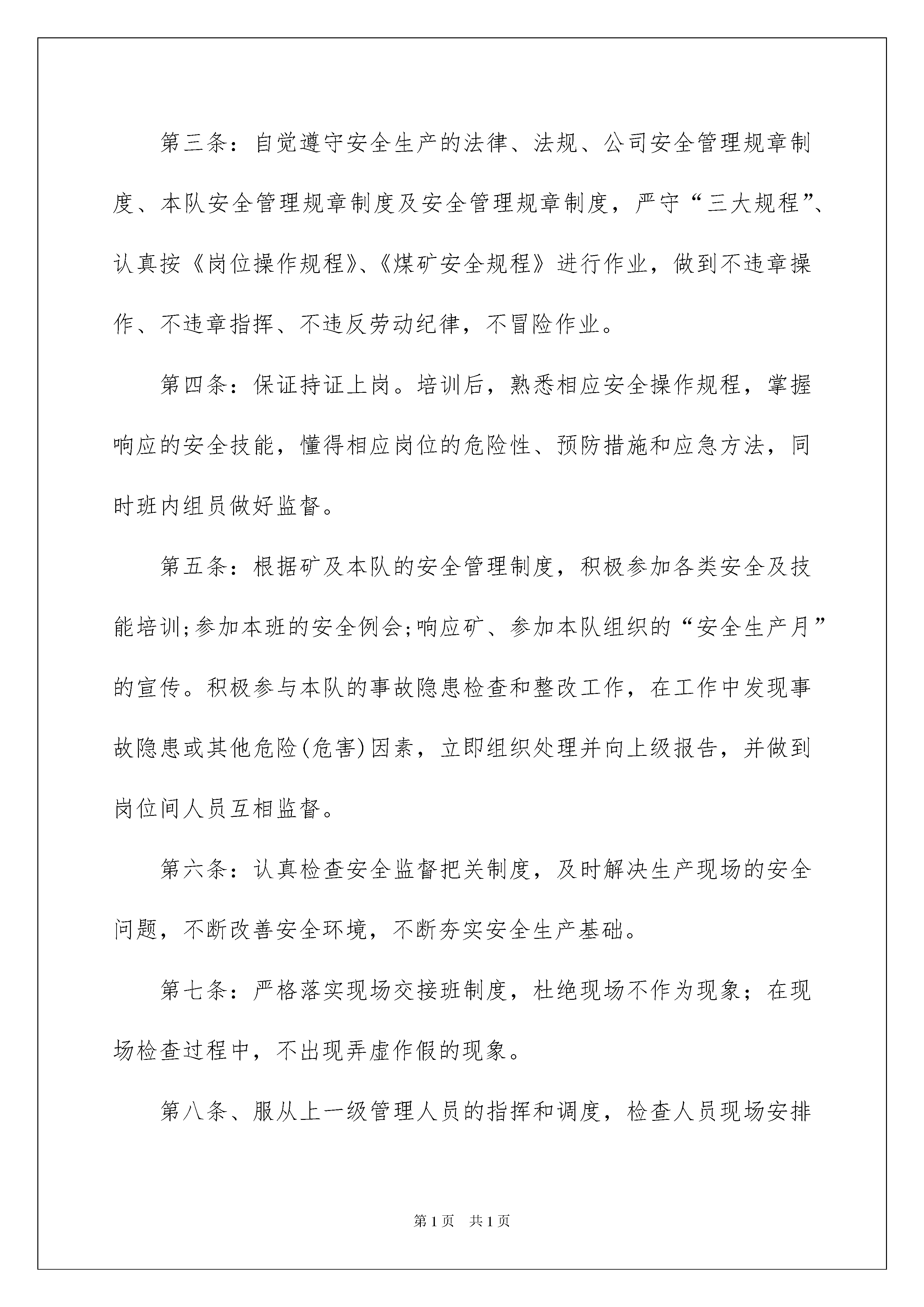 2022有关煤矿安全承诺书4篇有关煤矿安全承诺书4篇在当今社会生活中,承诺书的使用越来越广泛,承诺书必须由受要约人作出,只有受要约人才能取得承诺的权利,受要约人以外的第三人不享有承诺的权利。怎么写承诺书才能避免踩雷呢?以下是我帮大家整理的煤矿安全承诺书4篇,欢迎大家借鉴与参考,希望对大家有所帮助。煤矿安全承诺书篇1为确保我矿安全工作的正常运行,确保安全生产,作为我矿的一名安检员我郑重承诺:第一条:严格遵守国家法律,法规和煤矿、科室的各项安全规章制度和安全管理规定,积极参与矿组织的各项安全活动,牢固树立“安全第一,预防为主”的思想,切实履行岗位安全和工作职责,尽职尽责,防范各类安全事故的发生。第二条:自愿接受矿、队等各级安全培训和业务技能培训,努力提高自身安全、工作业务技术水平,增强安全防范意识,做到“三不伤害(不伤害他人、不被他人伤害、不伤害自己)”。第三条:自觉遵守安全生产的法律、法规、公司安全管理规章制度、本队安全管理规章制度及安全管理规章制度,严守“三大规程”、认真按《岗位操作规程》、《煤矿安全规程》进行作业,做到不违章操作、不违章指挥、不违反劳动纪律,不冒险作业。第四条:保证持证上岗。培训后,熟悉相应安全操作规程,掌握响应的安全技能,懂得相应岗位的危险性、预防措施和应急方法,同时班内组员做好监督。第五条:根据矿及本队的安全管理制度,积极参加各类安全及技能培训;参加本班的安全例会;响应矿、参加本队组织的“安全生产月”的宣传。积极参与本队的事故隐患检查和整改工作,在工作中发现事故隐患或其他危险(危害)因素,立即组织处理并向上级报告,并做到岗位间人员互相监督。第六条:认真检查安全监督把关制度,及时解决生产现场的安全问题,不断改善安全环境,不断夯实安全生产基础。第七条:严格落实现场交接班制度,杜绝现场不作为现象;在现场检查过程中,不出现弄虚作假的现象。第八条、服从上一级管理人员的指挥和调度,检查人员现场安排的整改雷厉风行的完成,严格落实上一级管理人员的工作安排并积极反馈工作进度。第九条:承诺期间,诚实守信、说到做到、尽职尽责、严格履行,若违反上述承诺内容且发生安全事故,自愿接受矿的经济处罚和行政处分。第十条:承诺期限年月日至年月日。安监科长:承诺人:年月日煤矿安全承诺书篇2为了保证我矿六十万吨验收顺利完成,以及达到安全生产的目的,我郑重承诺:1、认真学习、贯彻执行《煤矿安全规程》《生产矿井质量标准、化标准》《采煤工作面作业规程》和《煤矿工人技术操作规程》及矿、的有关管理规定。2、认真处理生产和安全的关系,坚持不安全不生产。积极处理安全隐患,坚持工作面质量标准,创造安全、标准的作业环境,避免安全事故发生。3、加强员工思想教育,严格执行规章制度,培养敬业精神、塑造一支纪律严、作风硬、不怕苦,特别能战斗的采煤队伍。4、认真进行劳动力组合,有效组织生产作业,做到工作有章可循,违章必究,保证完成生产工作任务。5、认真组织召开班前会,介绍工作面情况和布置当班安全生产任务,强调工作注意事项,检查员工工作状况,穿戴和携带的必用工具、材料、备品、配件等,做好安全生产的充分准备工作。6、严格工作面的现场管理,每班必须指定专人负责检查作业范围内的环境、顶底板、煤帮、采空区、瓦斯、支护及其它设施的情况,妥善处理好不安全隐患和存在的问题,并按规定交接班。7、坚持请示报告制度。发现工作面地质变化、顶板来压或其它灾害预兆、事故等,要及时向现场值班员和调度室汇报,听从指挥,服从安排。8、提高安全意识,加强员工技能教育,积极组织本队员工参加技能和安全知识培训。9、经常深入实际,熟悉现场,掌握现有安全出口及井下巷道、工作面布置情况,各类事故的避灾路线。10、保证及时制止“三违”行为,及时处理、教育三违人员。11、及时解决采掘生产过程中的问题,确保安全生产的正常进行。12、认真贯彻执行《煤矿安全规程》,以及国家和行业的有关规定,切实做好安全管理工作,杜绝事故发生。13、对于以上承诺,本人自觉遵守,如有违反,本人愿承担责任和处罚。承诺人:年月日煤矿安全承诺书篇3煤炭生产,千难万险,作为班长,勇挑重担。为此,我郑重承诺:一、转变观念,安全第一,先安全后生产,班组安全好也是我的业绩。确保班组员工安全是我的责任。管安全,制止违章是为班组员工和班组员工的家庭负责,班组员工安全好,我脸上有光,班组员工出事故,我良心有愧。二、主动学习,虚心学习,不断学习。全面掌握本班组安全生产应知应会,积极认真参加矿、队组织的各种培训,保证不当班就一定参加周一安全办公会,保证组织好本班员工积极参加周二安全活动日的活动。三、本人决不带头违章