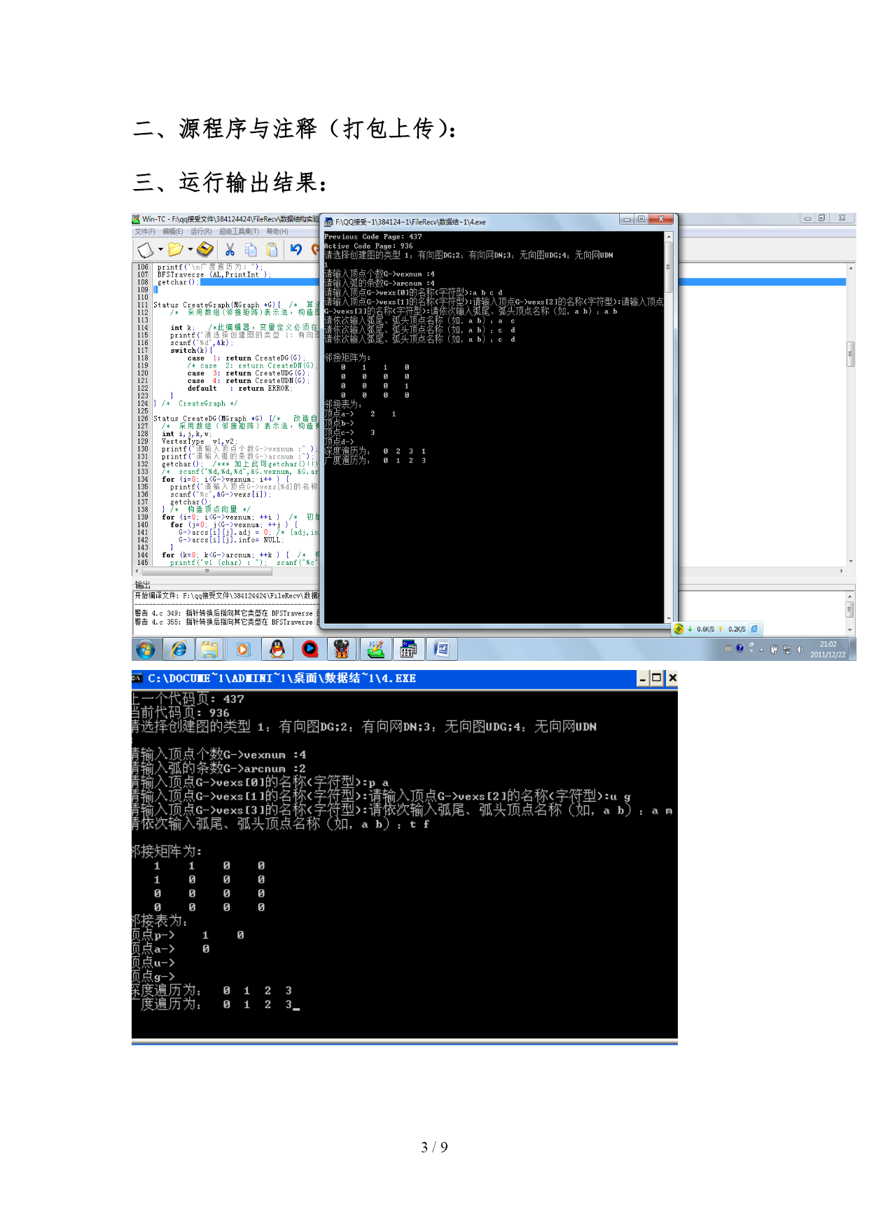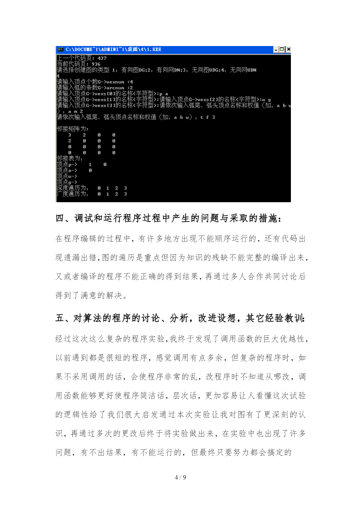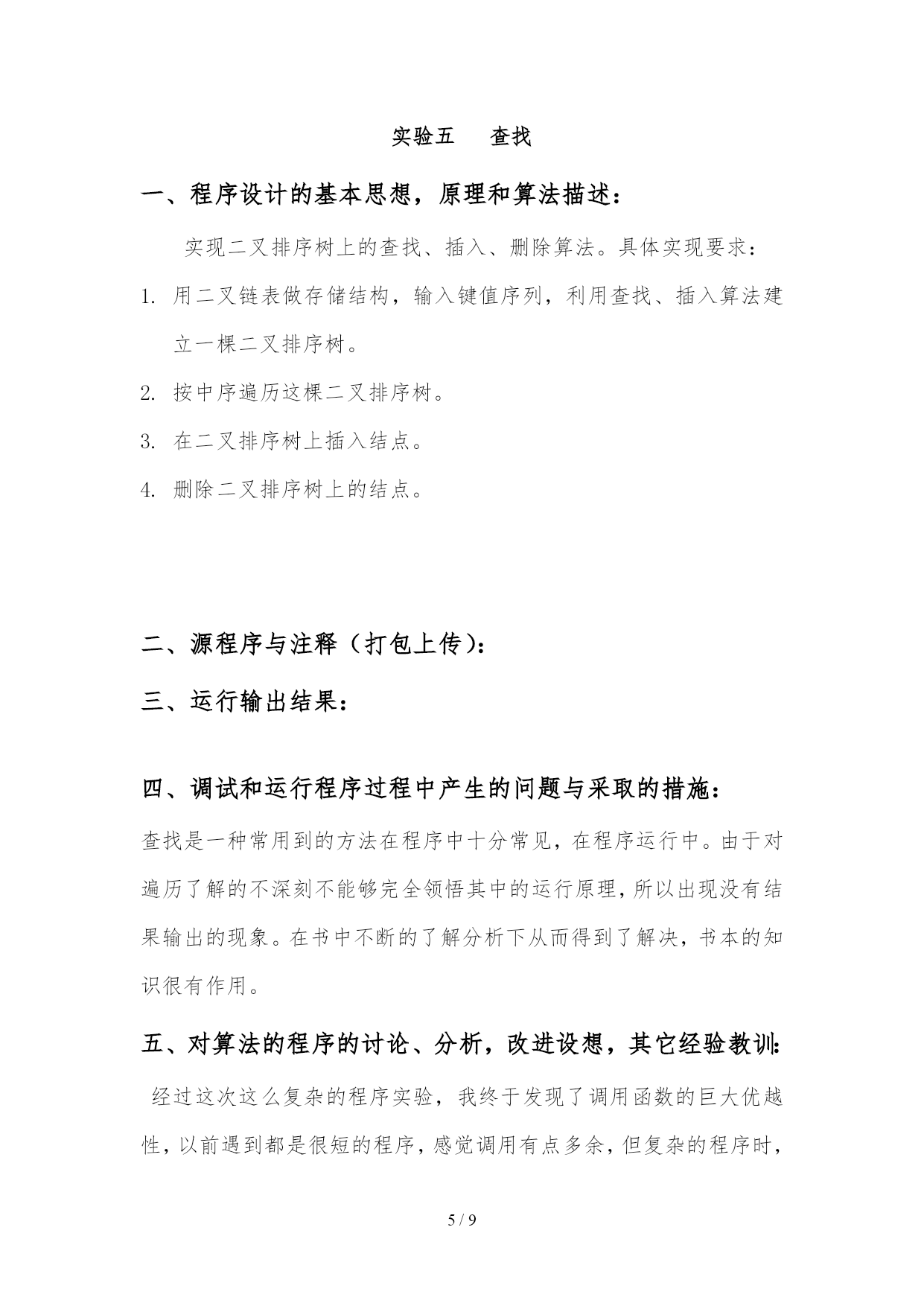 /NUMPAGES9 科技学院 数据结构(C语言版) 实验报告 专业班级测绘0911 学号0920115130 姓名朱辉 实习地点C1-203 指导教师史守正 实验四图 程序设计的基本思想,原理和算法描述: 图是一种较线性表和树更加复杂的一种数据结构,在图形结构中,结点之间的关系可以是任意的,图中任意两个数据元素之间都可能相关,图主要有无向图,有向图等 (1)建立无向网的邻接矩阵存储并输出,参考程序清单,实现无向图的邻接矩阵表示。 (2)建立图的邻接表存储并在此基础上实现图的深度优先遍历和广度优先遍历 备注:无向图已完成,无向网需要自己建立(参照算法7.2);参照算法7.4,7.5,7.6完成图的深度遍历,广度遍历;请添加适当的注释。 二、源程序与注释(打包上传): 三、运行输出结果: 四、调试和运行程序过程中产生的问题与采取的措施: 在程序编辑的过程中,有许多地方出现不能顺序运行的,还有代码出现遗漏出错,图的遍历是重点但因为知识的残缺不能完整的编译出来,又或者编译的程序不能正确的得到结果,再通过多人合作共同讨论后得到了满意的解决。 五、对算法的程序的讨论、分析,改进设想,其它经验教训: 经过这次这么复杂的程序实验,我终于发现了调用函数的巨大优越性,以前遇到都是很短的程序,感觉调用有点多余,但复杂的程序时,如果不采用调用的话,会使程序非常的乱,改程序时不知道从哪改,调用函数能够更好使程序简洁话,层次话,更加容易让人看懂这次试验的逻辑性给了我们很大启发通过本次实验让我对图有了更深刻的认识,再通过多次的更改后终于将实验做出来,在实验中也出现了许多问题,有不出结果,有不能运行的,但最终只要努力都会搞定的 实验五查找 一、程序设计的基本思想,原理和算法描述: 实现二叉排序树上的查找、插入、删除算法。具体实现要求: 用二叉链表做存储结构,输入键值序列,利用查找、插入算法建立一棵二叉排序树。 按中序遍历这棵二叉排序树。 在二叉排序树上插入结点。 删除二叉排序树上的结点。 二、源程序与注释(打包上传): 三、运行输出结果: 四、调试和运行程序过程中产生的问题与采取的措施: 查找是一种常用到的方法在程序中十分常见,在程序运行中。由于对遍历了解的不深刻不能够完全领悟其中的运行原理,所以出现没有结果输出的现象。在书中不断的了解分析下从而得到了解决,书本的知识很有作用。 五、对算法的程序的讨论、分析,改进设想,其它经验教训: 经过这次这么复杂的程序实验,我终于发现了调用函数的巨大优越性,以前遇到都是很短的程序,感觉调用有点多余,但复杂的程序时,如果不采用调用的话,会使程序非常的乱,改程序时不知道从哪改,调用函数能够更好使程序简洁话,层次话,更加容易让人看懂这次试验的逻辑性给了我们很大启发,在程序不断复杂的今天只有很好了解程序的过程,把握程序中心思想才能够更好的完善研发程序,在不断的累积中达到更高的层次。 实验六排序 程序设计的基本思想,原理和算法描述 排序是计算机程序设计中的一种重要操作。它的主要思想是将一个数据元素的任意序列,比较多种排序的优劣主要是看它排序的效率。重新排列成一个按关键字有序的序列,编写主函数,分别实现直接插入、冒泡排序(算法在P16)、快速排序、简单选择排序、堆排序等排序算法。 直接插入排序:是一种最简单的排序,是将一个记录插入到已排好序的初始排列中 冒泡排序;依次比较相邻的两个数,将小数放在前面,大数放在后面。即在第一趟:首先比较第1个和第2个数,将小数放前,大数放后。然后比较第2个数和第3个数,将小数放前,大数放后,如此继续,直至比较最后两个数,将小数放前,大数放后。至此第一趟结束,将最大的数放到了最后。在第二趟:仍从第一对数开始比较(因为可能由于第2个数和第3个数的交换,使得第1个数不再小于第2个数),将小数放前,大数放后,一直比较到倒数第二个数(倒数第一的位置上已经是最大的),第二趟结束,在倒数第二的位置上得到一个新的最大数(其实在整个数列中是第二大的数)。如此下去,重复以上过程,直至最终完成排序。 由于在排序过程中总是小数往前放,大数往后放,相当于气泡往上升,所以称作冒泡排序。 用二重循环实现,外循环变量设为i,循环变量设为j。外循环重复9次,循环依次重复9,8,...,1次。每次进行比较的两个元素都是与循环j有关的,它们可以分别用a[j]和a[j+1]标识,i的值依次为1,2,...,9,对于每一个i,j的值依次为1,2,...10-i。 二、源程序与注释(打包上传): 三、运行输出结果: 四、调试和运行程序过程中产生的问题与采取的措施: 刚开始看到程序,太长,一点也看不懂它的意思,无从下手的感觉,这是就要考验人的耐心,慢慢看,结合书里所讲的知识,终于理