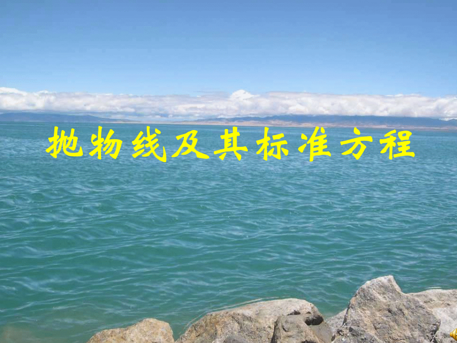 抛物线及其标准方程魅力的美青春抛物线进入抛物线的内部世界y探究?问题探究:MM1.建立坐标系 三、标准方程抛物线的标准方程的其他形式呢?图形第一:一次项的变量如为x(或y),则x轴(或y轴)为抛物线的对称轴,焦点就在对称轴上. 例1(1)已知抛物线的标准方程是y2=6x,求它的焦点坐标和准线方程;例2.求过点A(-3,2)的抛物线的标准方程.思考:M是抛物线y2=2px(p>0)上一点,若点 M的横坐标为x0,则点M到焦点的距离是 ————————————1、根据下列条件,写出抛物线的标准方程:1.抛物线的定义:抛物线的定义反映了抛物线的本质,灵活应用定义往往可以化繁为简、化难为易,且思路清晰,解法简捷,巧妙解法常常来源于对定义的恰当运用.