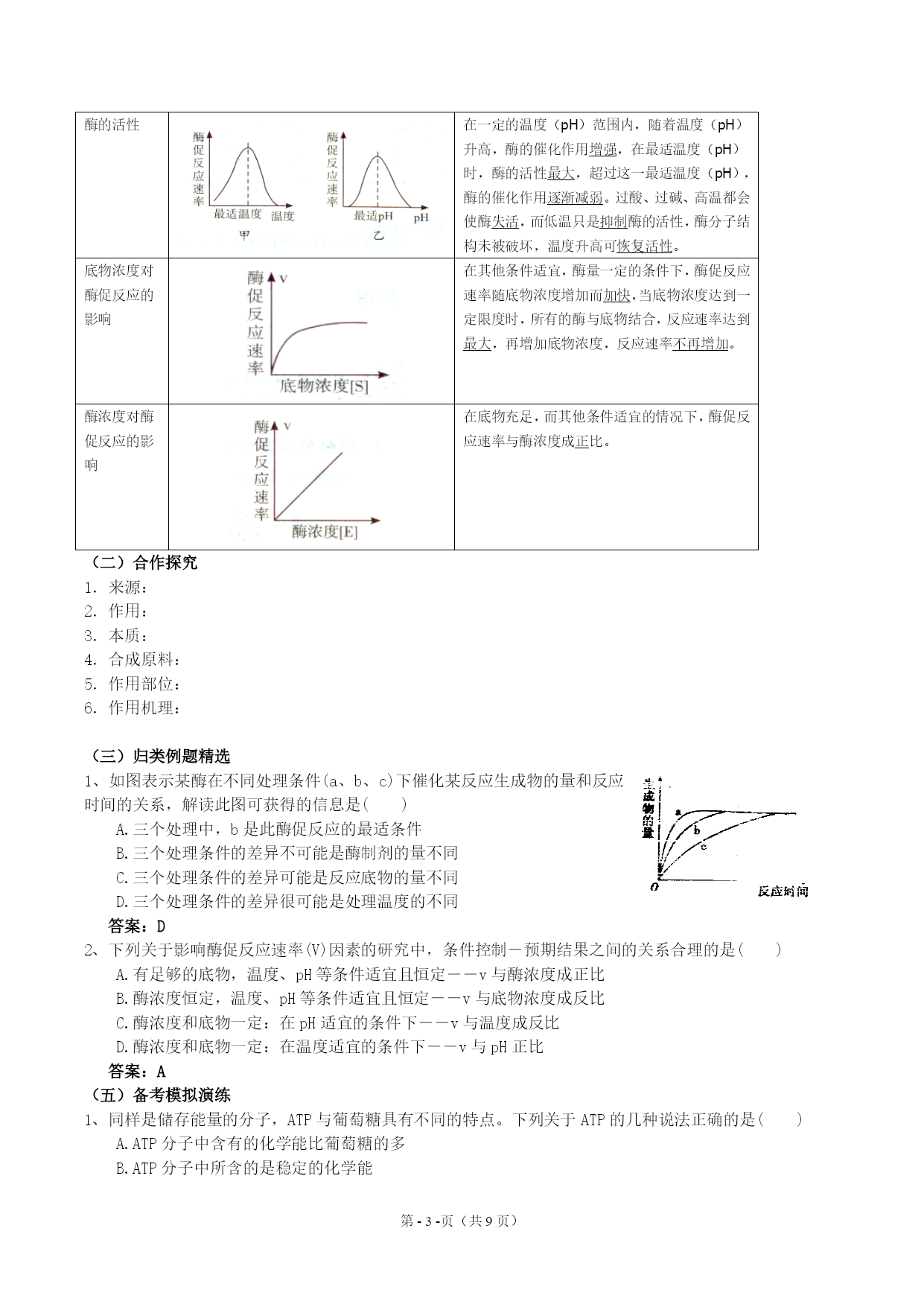 2、与酶有关的曲线比较