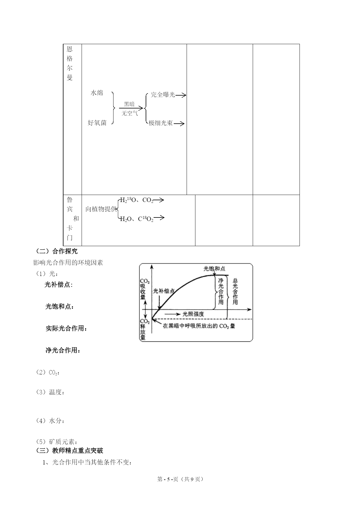 教学重难点:酶在代谢中的作用光合作用的基本过程影响光合作用速率的环境因素细胞呼吸