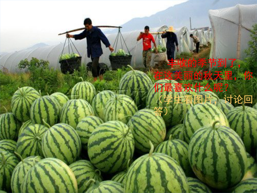 丰收之歌麻屋子, 红帐子, 里面住着白胖子。 (打一农作物)外面看着是绿的, 打开里面是红的, 吃在嘴里是甜的, 吐出籽儿是黑的。 (打一水果)秋天到了,丹麦的农庄和果园收获了什么?学一学它们的歌声。第二关:考考同学们的耳朵,还要考考同学们的唱谱能力怎么样,有信心吗?f获得知识的大丰收!谢谢!