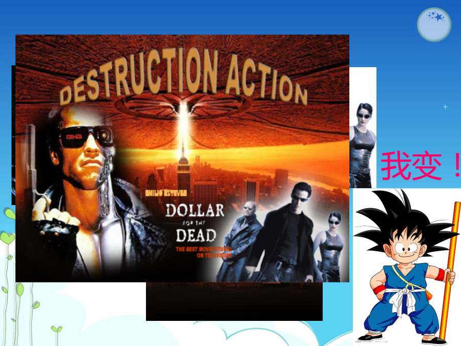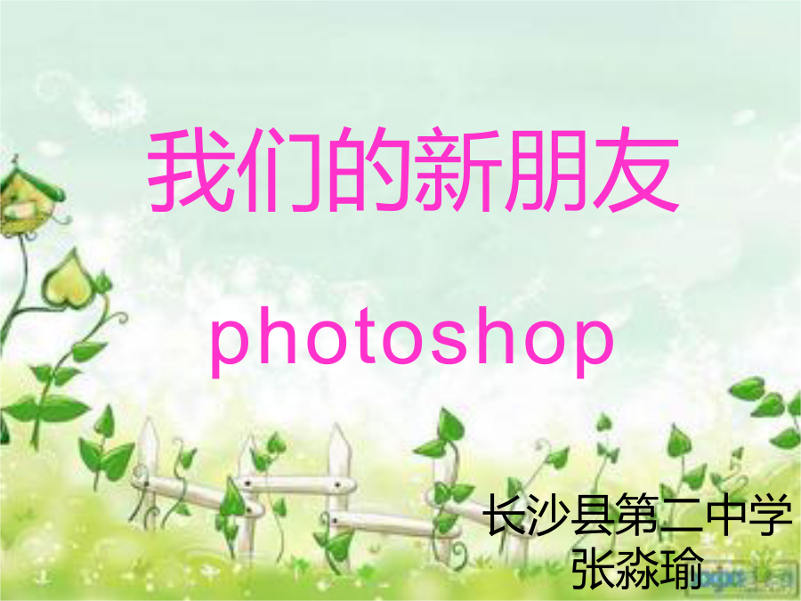 我们的新朋友哈哈,先让你们看看我有多厉害吧!杰作展示!看我的!再来秀一下Hi,大家好: 我叫photoshop,大家都亲切 地称呼我为PS,不要看我小小的就小看 我,我可是Adobe公司的专业图形图像 处理高手,我能做图像设计、 图像处理、扫描、图像合成 等等,并且很好相处,在平面 图形图像编辑这一领域是个佼 佼者哦! 我的模样我的模样存储格式看我“七十二变”操作步骤: (1)打开photoshop软件,利用裁切工具 将图片裁切成需要的大小。 (2)如果照片需要固定的尺寸大小的话,则可以通过工具属性栏设置图片的具体尺寸和分辨率,来完成裁切。看我“七十二变”方法小结看我“七十二变”方法小结看我“七十二变”方法小结知识拓展修复画笔与仿制图章看我“七十二变”方法小结看我“七十二变”方法小结看我“七十二变”方法小结