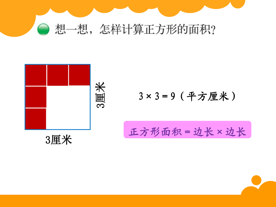 北师大版三年级下册第五单元面积1.用1平方厘米的纸片摆一摆,算一算附页3中图2 的面积,并与同伴说一说你的方法。2.计算下面长方形草地、正方形花坛的占地面积。(单位:米)估计教室的面积大约是多少。3.先估一估,再量一量,并算出下面图形的面积。4.先估一估,再量一量,算一算。5.要在右面的长方形纸 上剪下一个最大的正 方形,剩下的部分是 一个什么图形?剩下 的部分的面积是多少 平方分米?6.一块面积是72平方分米的长方形台布,长9分米, 它的宽是多少分米?7.一个正方形喷水池的周长是20米,它的边长是 多少米?面积是多少平方米?8.想一想,画一画。