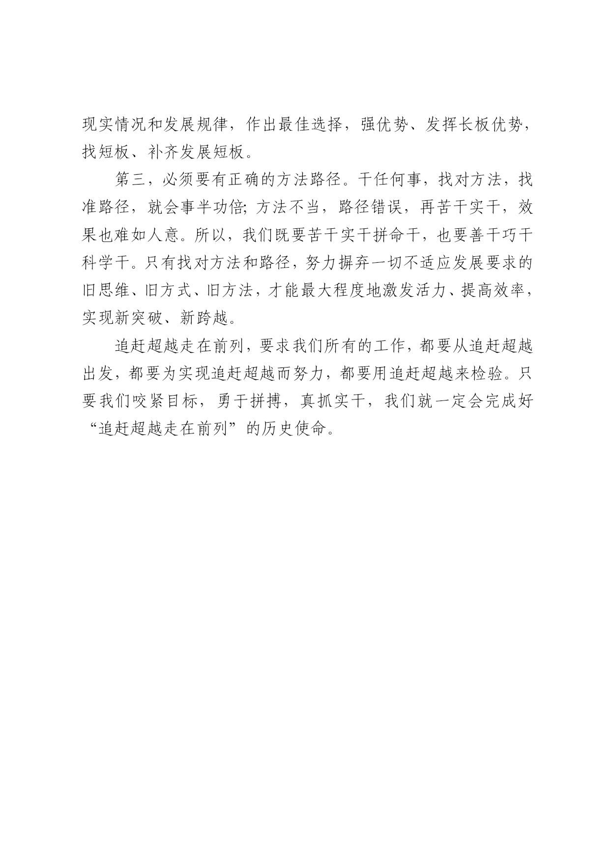 追赶超越要走在前列 欣丝路 西安日报2017年02月03日 春节前夕的省“两会”上,省委向西安提出了“四个走在前列”的殷切希望,排在首位的是“追赶超越走在前列”。 应该说,这是一份沉甸甸的政治责任和“时代命题”,彰显了省委对西安发展的厚望,也是西安作为省会城市,为全省追赶超越贡献力量、承担主体责任,培育新产业、打造新动能的必然要求,我们必须要把这份考卷答好。那么,新年伊始,西安如何在追赶超越上“走在前列”呢? 首先,必须要有一支素质过硬的铁军干部队伍。“火车跑得快,全靠车头带”,各级干部就是各自领域追赶超越的“火车头”,肩负着带领团队向前奔跑的重任。因此,我们的干部,一定要有全力追赶超越的志气,一定要有不畏困难不惧艰辛的勇气,一定要有一往无前舍我其谁的锐气。倘若没有这“三气”,不能勇于任事,差距只能越追越大。 其次,必须要有清晰科学的目标定位。“追赶超越走在前列”,要按照市十三次党代会确定的“聚焦‘三六九’,振兴大西安”目标任务,既全面对标同类先进城市,也敢于在优势领域对标“单打冠军”,更需要我们明白该从哪里追赶,在哪里超越,哪些短期就可以走在前列,哪些需要长期奋斗才能走在前列。只有搞清楚了这些,我们才能“对症下药”、有的放矢,才能依据现实情况和发展规律,作出最佳选择,强优势、发挥长板优势,找短板、补齐发展短板。 第三,必须要有正确的方法路径。干任何事,找对方法,找准路径,就会事半功倍;方法不当,路径错误,再苦干实干,效果也难如人意。所以,我们既要苦干实干拼命干,也要善干巧干科学干。只有找对方法和路径,努力摒弃一切不适应发展要求的旧思维、旧方式、旧方法,才能最大程度地激发活力、提高效率,实现新突破、新跨越。 追赶超越走在前列,要求我们所有的工作,都要从追赶超越出发,都要为实现追赶超越而努力,都要用追赶超越来检验。只要我们咬紧目标,勇于拼搏,真抓实干,我们就一定会完成好“追赶超越走在前列”的历史使命。