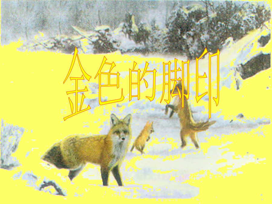 金色的脚印男佣人瞪眼光秃秃冷清清孤零零 湿漉漉直勾勾热乎乎迎着耀眼的阳光,狐狸们的脚印,闪着金色的光芒,一直延伸到密林深处。 自主探究,讨论交流(2)狐狸一家和正太郎的关系发生了怎样的变化?(3)课文为什么以“金色的脚印”为题?迎着耀眼的阳光,狐狸的脚印闪着金色的光芒,一直延伸到密林深处。