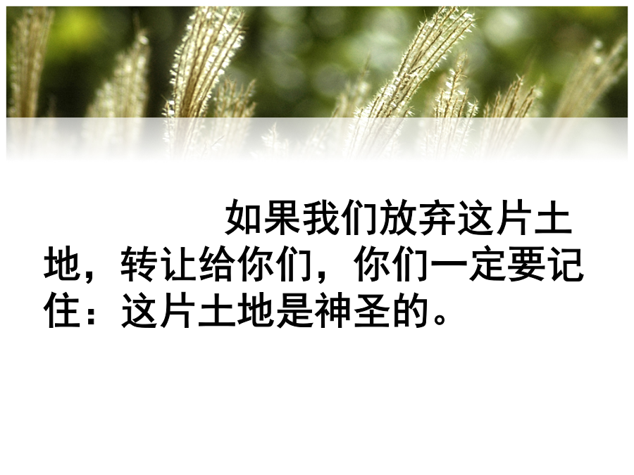 15这片土地是神圣的如果我们放弃这片土地,转让给你们,你们一定要记住:这片土地是神圣的。 如果()放弃这片土地,转让给(),()一定要记住:这片土地是神圣的。 如果我们放弃这片土地,转让给你们,你们一定要记住:这片土地是神圣的。 如果()放弃这片土地,转让给(),()一定要记住:这片土地是神圣的。 如果我们放弃这片土地,转让给你们,你们一定要记住:这片土地是神圣的。