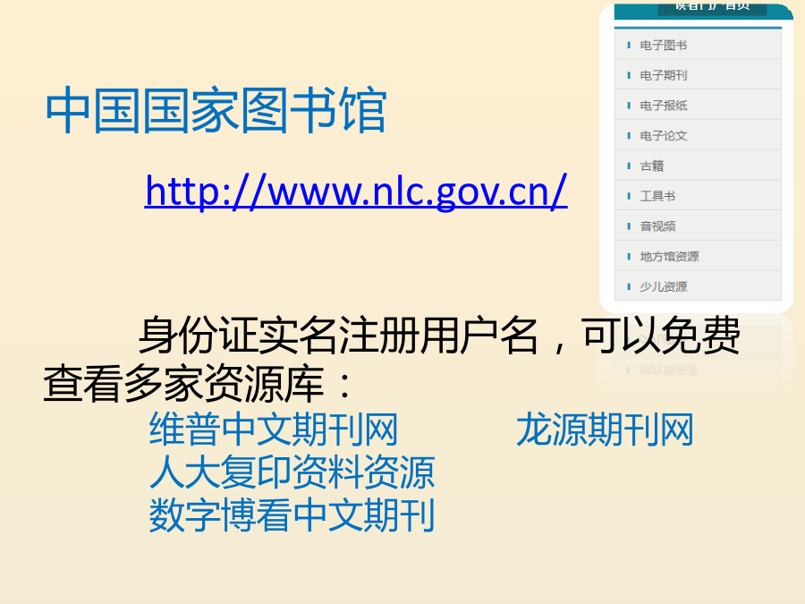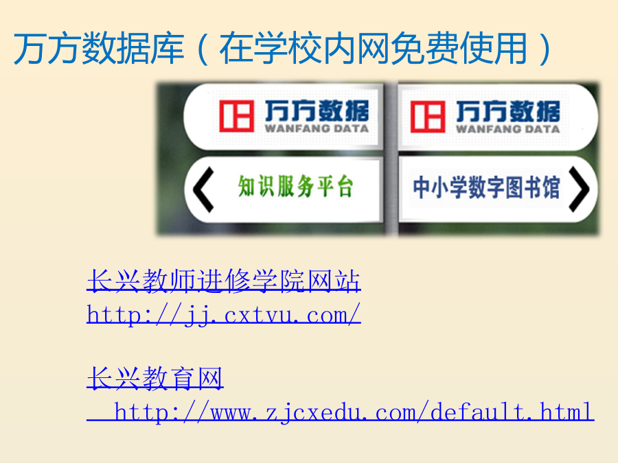 万方数据库(在学校内网免费使用)浙江网络图书馆中国国家图书馆