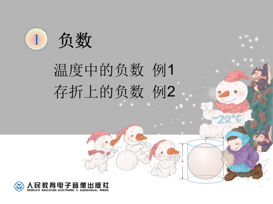 负数一、创设情境,产生需求,认识负数提问:(3)怎样记录就能把情况表示清楚了呢?请你想想办法。像“-15”这样的数叫负数;这个数读作:负十五。“-”在这里有了新的意义和作用,叫“负号”。“+”是正号。像“+15”是一个正数,读作:正十五。我们可以在15的前面加上“+”,也可以省略不写。其实,过去我们认识的很多数都是正数。(四)介绍历史(五)联系生活,巩固读写2.提问:请你根据上图中的信息填写下面的表格,然后说一说 你填写的各数表示什么意思。(1)从表中我们看到北京的最高气温是-4℃, 上海的最高气温是4℃,你能在温度计上找 出这两个温度所在位置吗?你是怎样想的。(3)那“0”是正数,还是负数呢? 强调:“0”作为正数和负数的分界点, 它既不是正数也不是负数。上面这些数各表示什么?你是怎样知道的。里海是世界上最大的咸水湖,水面的海拔高度是-28米。