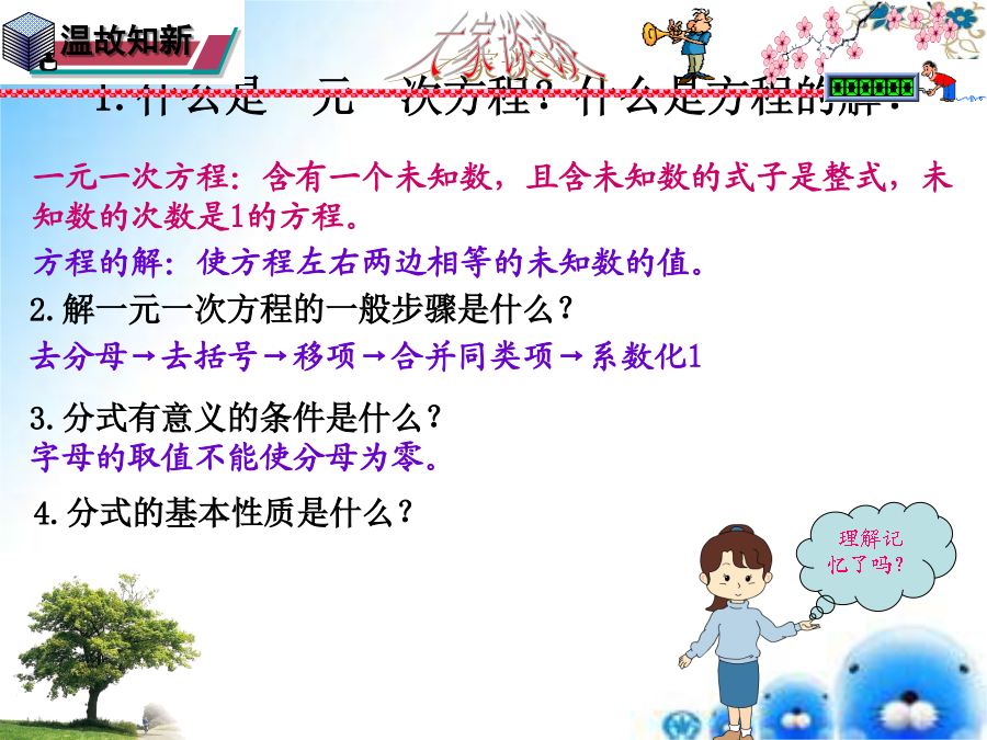 1.什么是一元一次方程?什么是方程的解?探究发现形成结论学以致用经典数学…探究分式方程的解法学以致用华师版第16章分式学无止境归纳总结形成结论经典数学…我的收获是……经典数学…谢谢,再见!