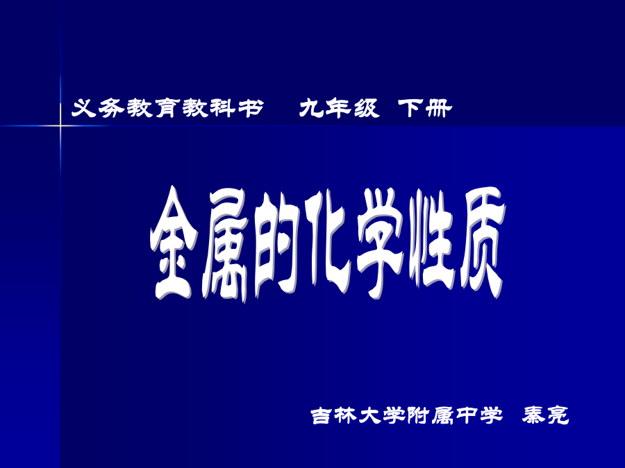 执教:吉林大学附属中学秦亮吉林大学附属中学秦亮 2323KCaNaMgAlZnFeSnPb(H)CuHgAgPtAu1.在金属活动性顺序里,金属的位置越靠前,它的活动性就越强。 2.在金属活动性顺序里,位于氢前面的金属能置换出盐酸、稀硫酸中的氢。 3.在金属活动性顺序里,位于前面的金属能把位于后面的金属从它们化合物的溶液里置换出来。用金属再“炼”金属辨金属感受金属