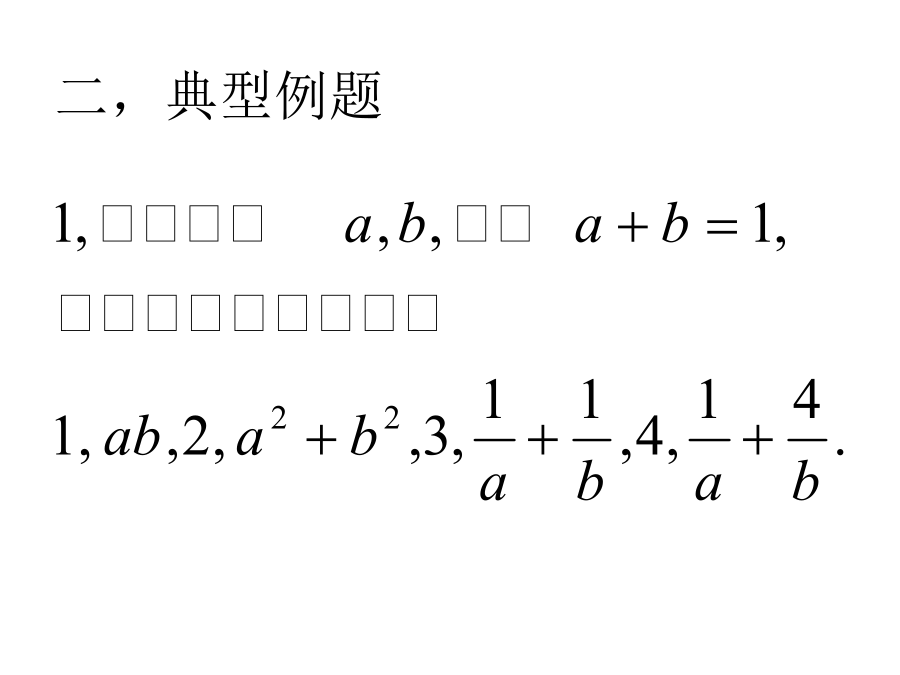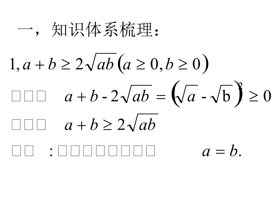 基本不等式一,知识体系梳理:重要结论:二,典型例题三,课堂小结