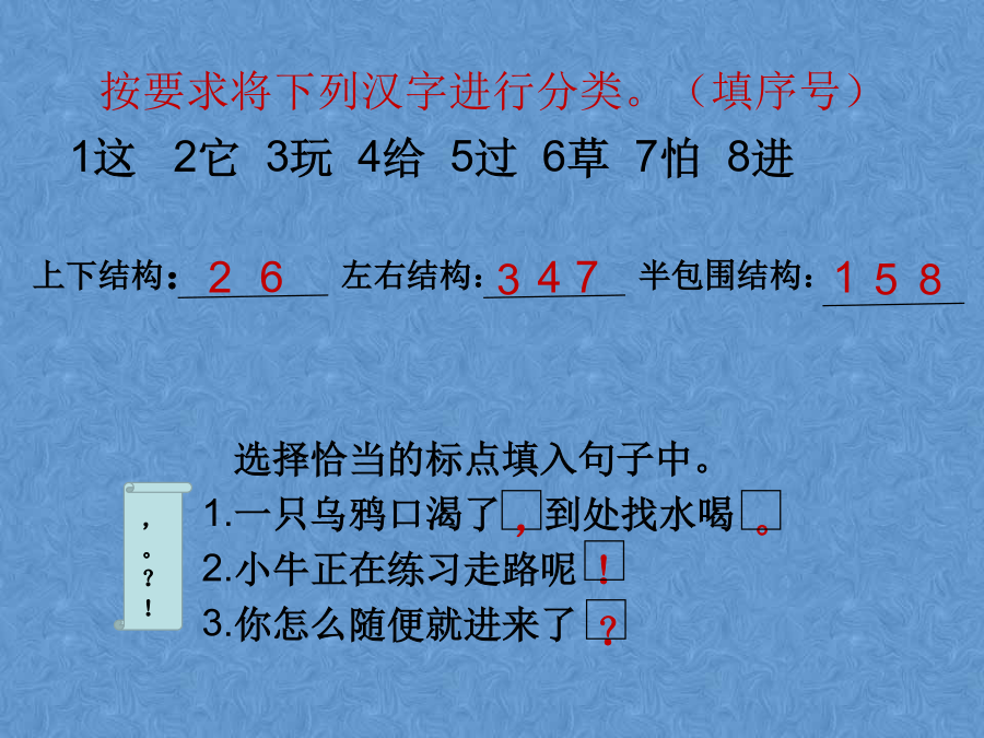 我会写左右结构的字说一说读读背背儿歌按要求将下列汉字进行分类。(填序号)选字填空连一连