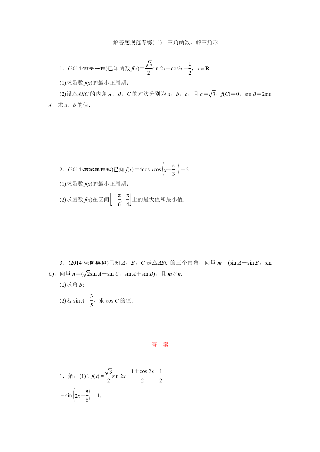 解答题规范专练(二)三角函数、解三角形(3).doc