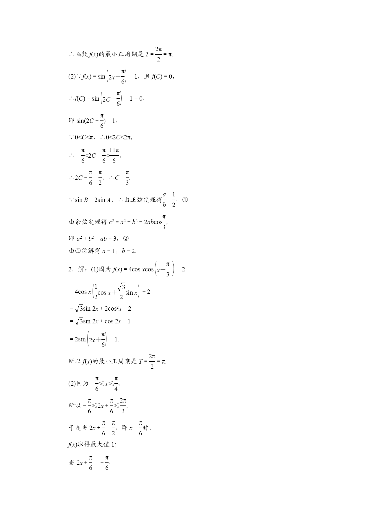 2.(2014·石家庄模拟)已知f(x)=4cosxcoseq\b\lc\(\rc\)(\a\vs4\al\co1(x-\f(π,3)))-2.
