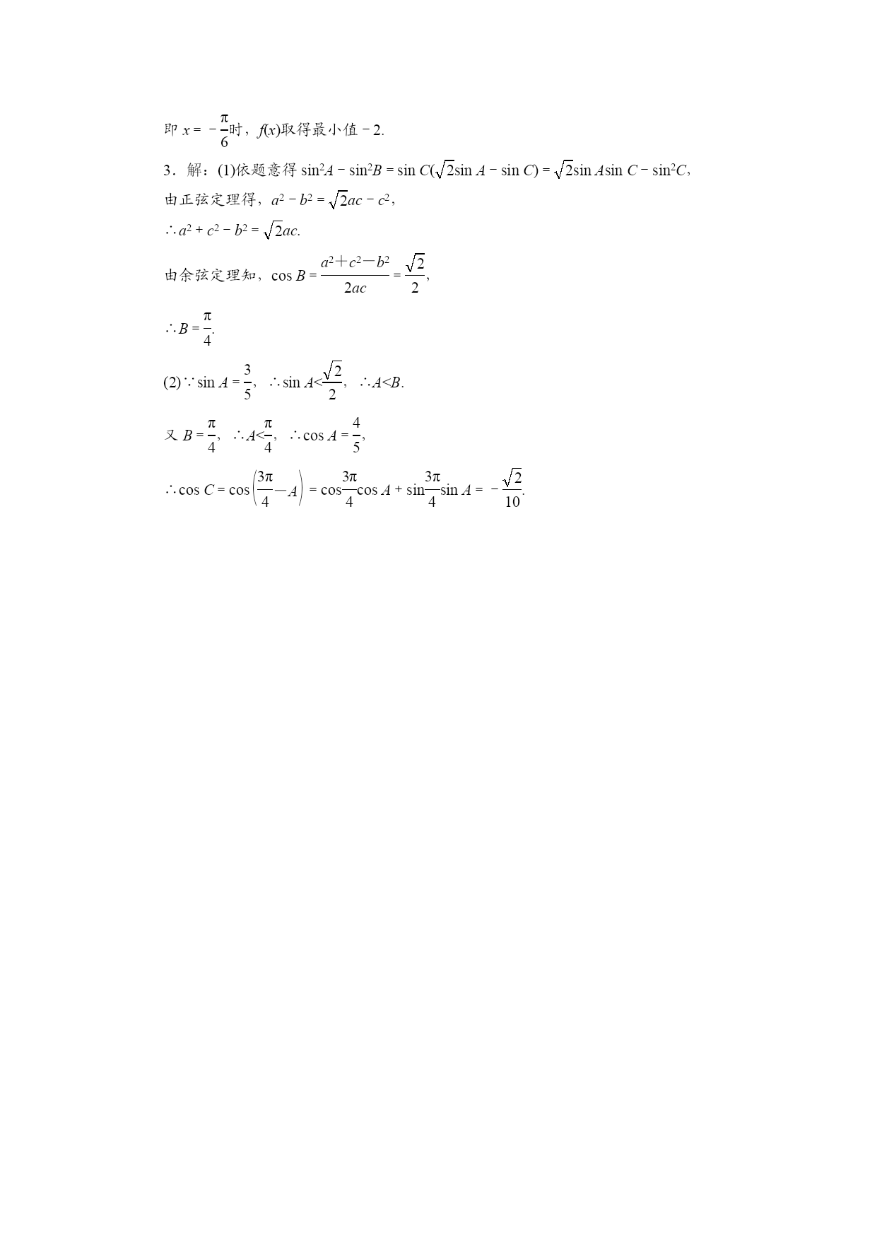 ∴cosC=coseq\b\lc\(\rc\)(\a\vs4\al\co1(\f(3π,4)-A))=coseq\f(3π,4)cosA+sineq\f(3π,4)sinA=-eq\f(\r(2),10).