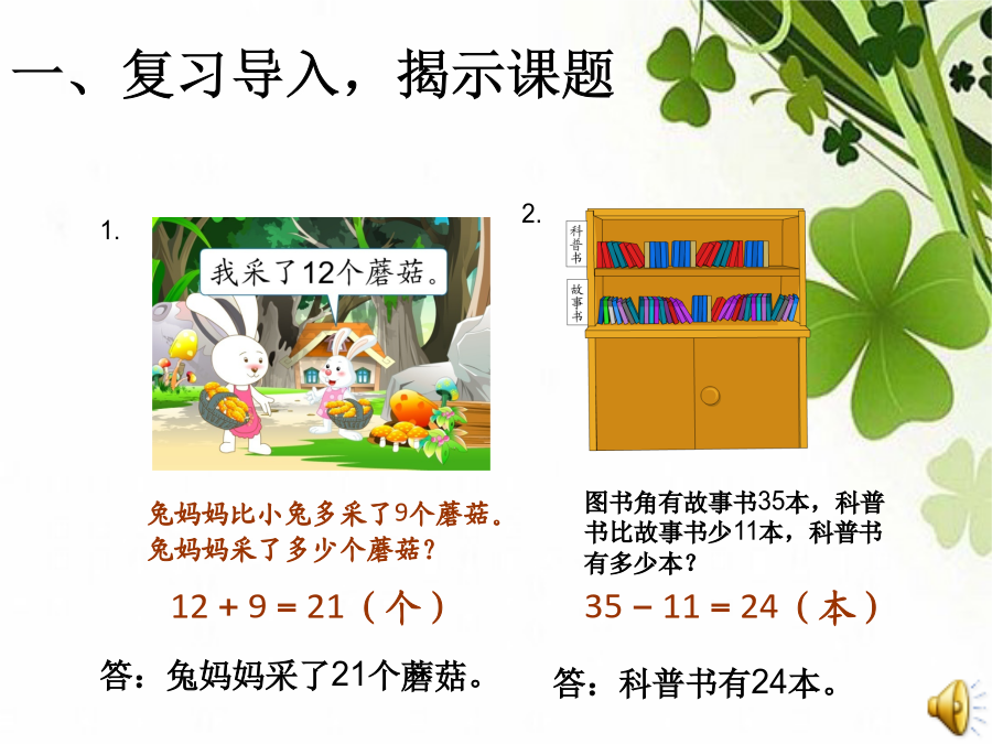 人教版二年级数学上册第二单元一、复习导入,揭示课题手工社团象棋社团书法社团舞蹈社团小记者社团戏曲社团口语交际社团绘画社团绘画社团我们绘画社团有14名女生,男生比女生少5人。要解决两个问题。 第一个是男生有多 少人,第二个是绘画社团一共有 多少人。要求男生的人数,就是求比14少5的数是多少,用减法计算。1、书法社团有男生15人,女生比男生多8人。女生有多少人?书法社团一共有多少人?绘画社团有14名女生,男生比女生少5人。男生有多少人?绘画社团一共有多少人?绿色圃中小学教育网http://www.Lspjy.com绿色圃中小学教育网http://www.Lspjy.com绿色圃中小学教育网http://www.Lspjy.com你学会了什么?作业:练习六,第1~4题。
