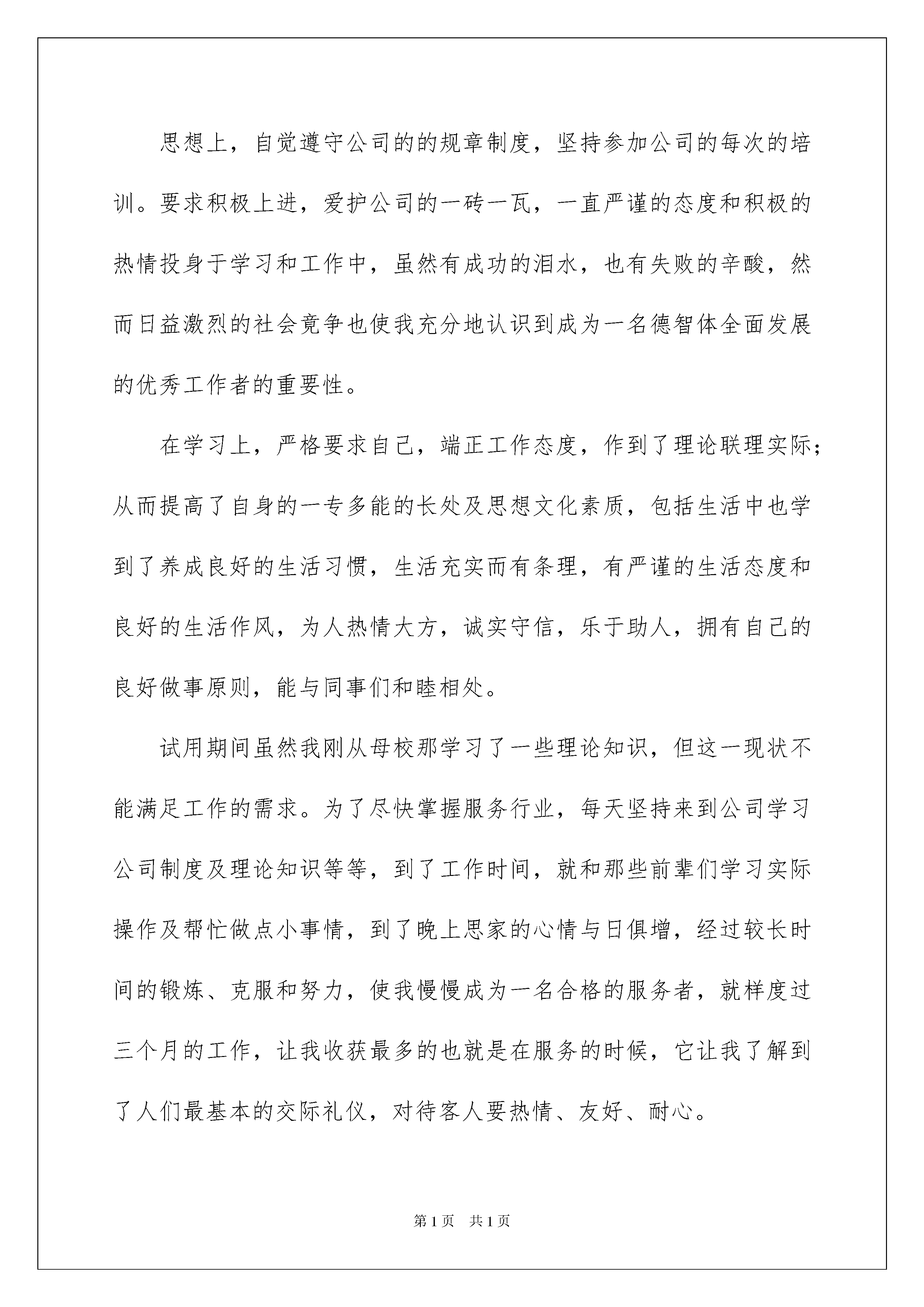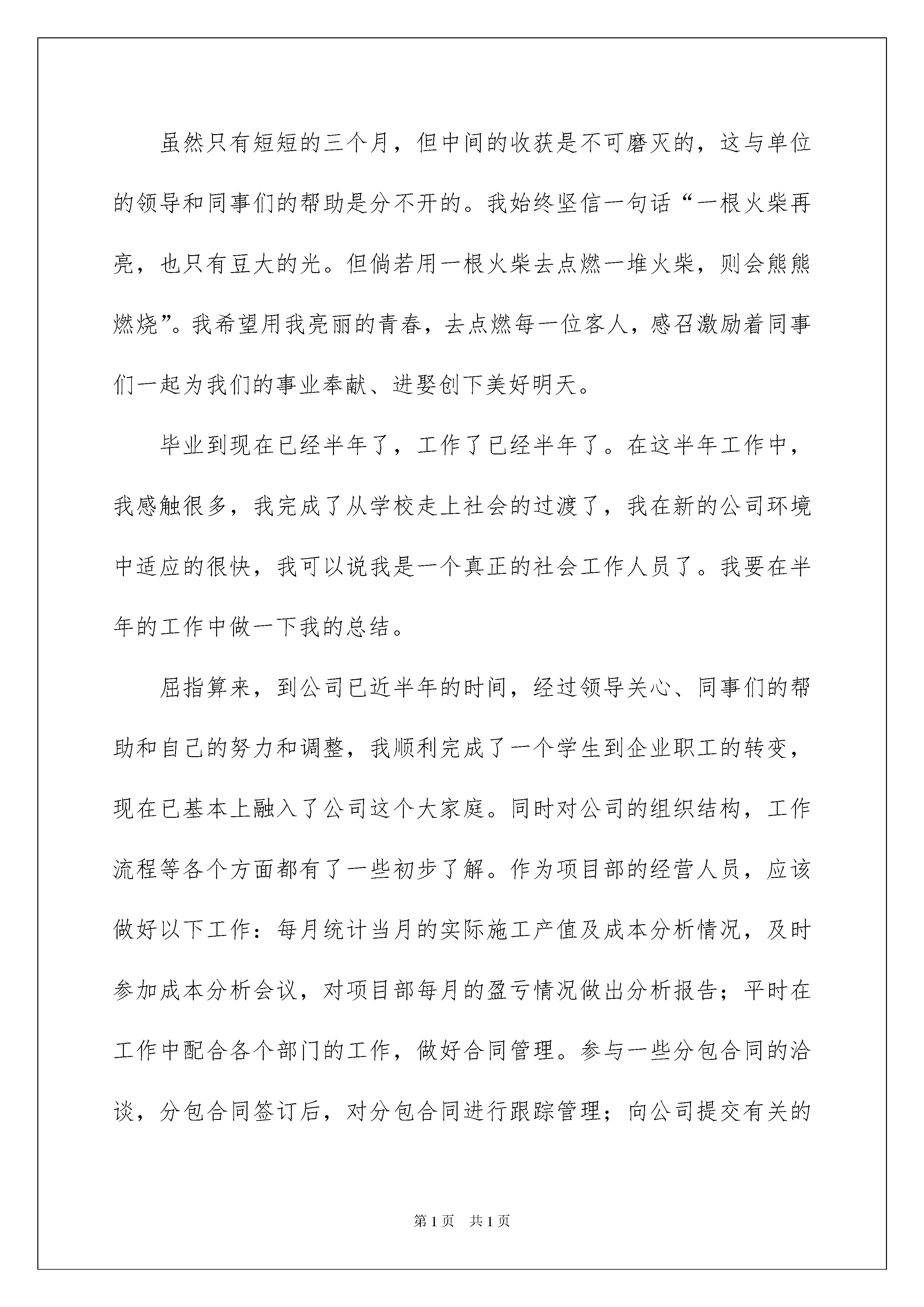 2022服务行业工作总结服务行业工作总结总结是对某一阶段的工作、学习或思想中的经验或情况进行分析研究的书面材料,它能够使头脑更加清醒,目标更加明确,不如静下心来好好写写总结吧。你想知道总结怎么写吗?以下是我精心整理的服务行业工作总结,希望对大家有所帮助。服务行业工作总结1进入xx公司实用距今已经有两个月时间,短短的试用期经已接近尾声。在决定我职业之际我觉得有必要做个工作鉴定,以表达我的工作态度。工作以来,在单位领导的精心培育和教导下,通过自身的不断努力,无论是思想上、学习上还是工作上,都取得了长足的发展和巨大的收获。工作上,无论在总台、还是在客服部门,都是以客人为先,尽量满足客人的要求。那时候是学习GPS的操作技能,不管在哪个部门,都严格要求自己,刻苦钻研业务,就是凭着这样一种坚定的信念,争当行家里手。为我以后的工作顺利开展打下了良好的基础。思想上,自觉遵守公司的的规章制度,坚持参加公司的每次的培训。要求积极上进,爱护公司的一砖一瓦,一直严谨的态度和积极的热情投身于学习和工作中,虽然有成功的泪水,也有失败的辛酸,然而日益激烈的社会竟争也使我充分地认识到成为一名德智体全面发展的优秀工作者的重要性。在学习上,严格要求自己,端正工作态度,作到了理论联理实际;从而提高了自身的一专多能的长处及思想文化素质,包括生活中也学到了养成良好的生活习惯,生活充实而有条理,有严谨的生活态度和良好的生活作风,为人热情大方,诚实守信,乐于助人,拥有自己的良好做事原则,能与同事们和睦相处。试用期间虽然我刚从母校那学习了一些理论知识,但这一现状不能满足工作的需求。为了尽快掌握服务行业,每天坚持来到公司学习公司制度及理论知识等等,到了工作时间,就和那些前辈们学习实际操作及帮忙做点小事情,到了晚上思家的心情与日俱增,经过较长时间的锻炼、克服和努力,使我慢慢成为一名合格的服务者,就样度过三个月的工作,让我收获最多的也就是在服务的时候,它让我了解到了人们最基本的交际礼仪,对待客人要热情、友好、耐心。虽然只有短短的三个月,但中间的收获是不可磨灭的,这与单位的领导和同事们的帮助是分不开的。我始终坚信一句话“一根火柴再亮,也只有豆大的光。但倘若用一根火柴去点燃一堆火柴,则会熊熊燃烧”。我希望用我亮丽的青春,去点燃每一位客人,感召激励着同事们一起为我们的事业奉献、进娶创下美好明天。毕业到现在已经半年了,工作了已经半年了。在这半年工作中,我感触很多,我完成了从学校走上社会的过渡了,我在新的公司环境中适应的很快,我可以说我是一个真正的社会工作人员了。我要在半年的工作中做一下我的总结。屈指算来,到公司已近半年的时间,经过领导关心、同事们的帮助和自己的努力和调整,我顺利完成了一个学生到企业职工的转变,现在已基本上融入了公司这个大家庭。同时对公司的组织结构,工作流程等各个方面都有了一些初步了解。作为项目部的经营人员,应该做好以下工作:每月统计当月的实际施工产值及成本分析情况,及时参加成本分析会议,对项目部每月的盈亏情况做出分析报告;平时在工作中配合各个部门的工作,做好合同管理。参与一些分包合同的洽谈,分包合同签订后,对分包合同进行跟踪管理;向公司提交有关的报表;做好分包结算,项目竣工结算工作;负责投标算量、报价、成本分析工作。我对半年来的工作做了一个小结。一、即使是最基础的工作,也需要不断地创新求进,以提高工作效率。我工作的很大一部分内容,就是投标工作,本来以为算量是一种比较枯燥的工作,其实,如果用心多思考一下,核量工作通过运用电脑和统筹的方法,并不是那么死板乏味。接触工作至今,我也慢慢形成自己独特的方法。当然,随着工作的深入,还有更多新的内容等待我去学习,去思索。二、态度决定一切,可以说,这段时间工作的过程也是我自己心态不断调整、成熟的过程。因为造价不是我的专业,刚来到公司,我有太多的茫然。整天看书好像还是无济于事,而莫名而来的烦琐的投标算量更是让我抓狂。刚开始,我甚至怀疑我不适合这份工作。后来我发现,时间是我的救星,通过自己不断的调整心态,虽然没有人说,但我自然而然的就知道了作为造价员该做一些什么事情,一些不懂的东西也迎刃而解了,顿时让我豁然开朗。如今只要有工作,我会以充分的热情来干好事情。心态的调整使我明白在各个岗位都有发展才能、增长知识的机会。如果我们能以充分的热情去做最平凡的工作,也能成为最精巧的职工;如果以冷淡的态度去做最高尚的工作,也不过是个平庸的工匠。拥有积极的心态,就会拥有一生的成功。三、学习无止境,职业生涯只是学生生涯的一种延续,重要的是将学校里学的理论知识运用到工作中,并进一步提高、升华。初到公司的我当务