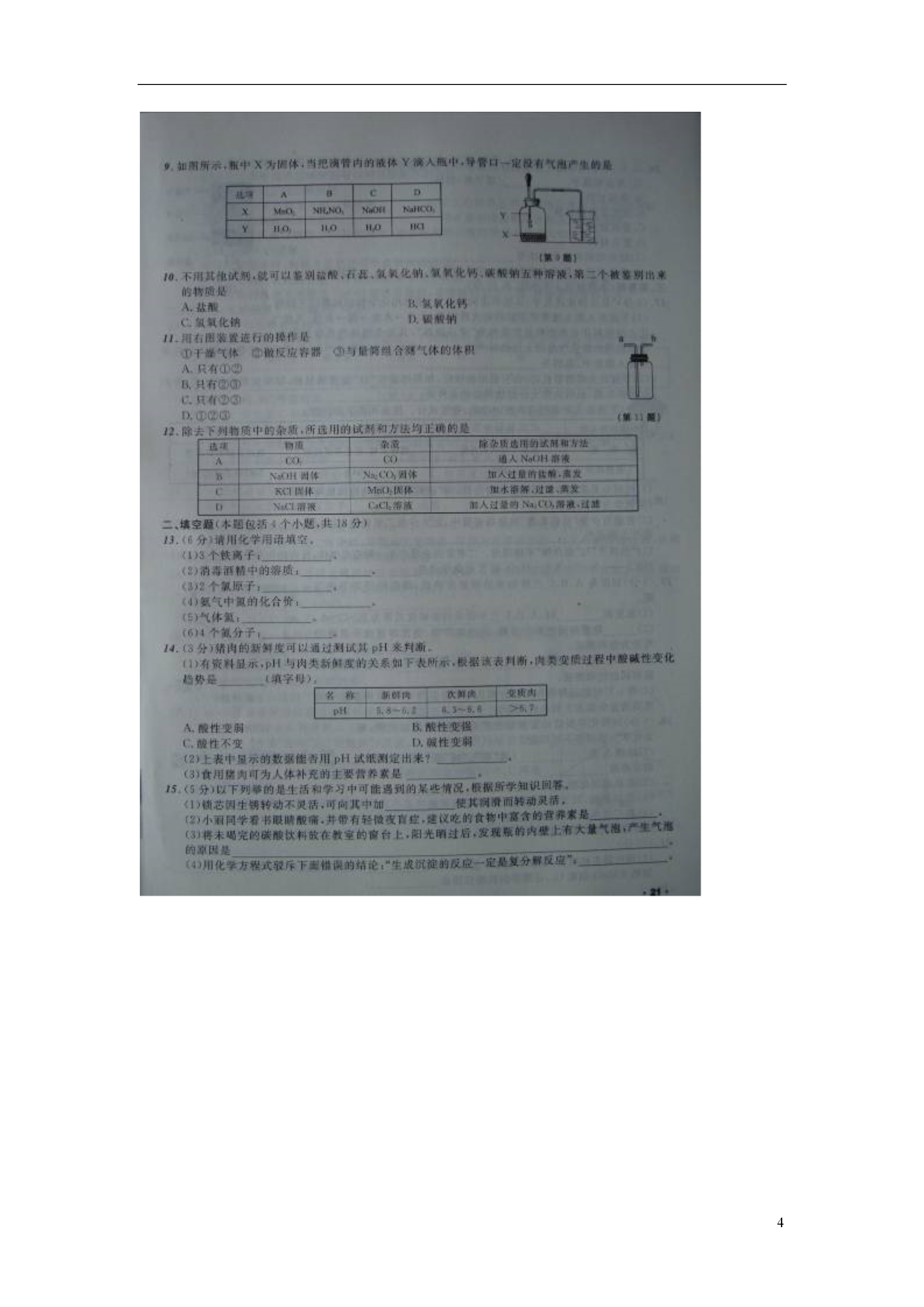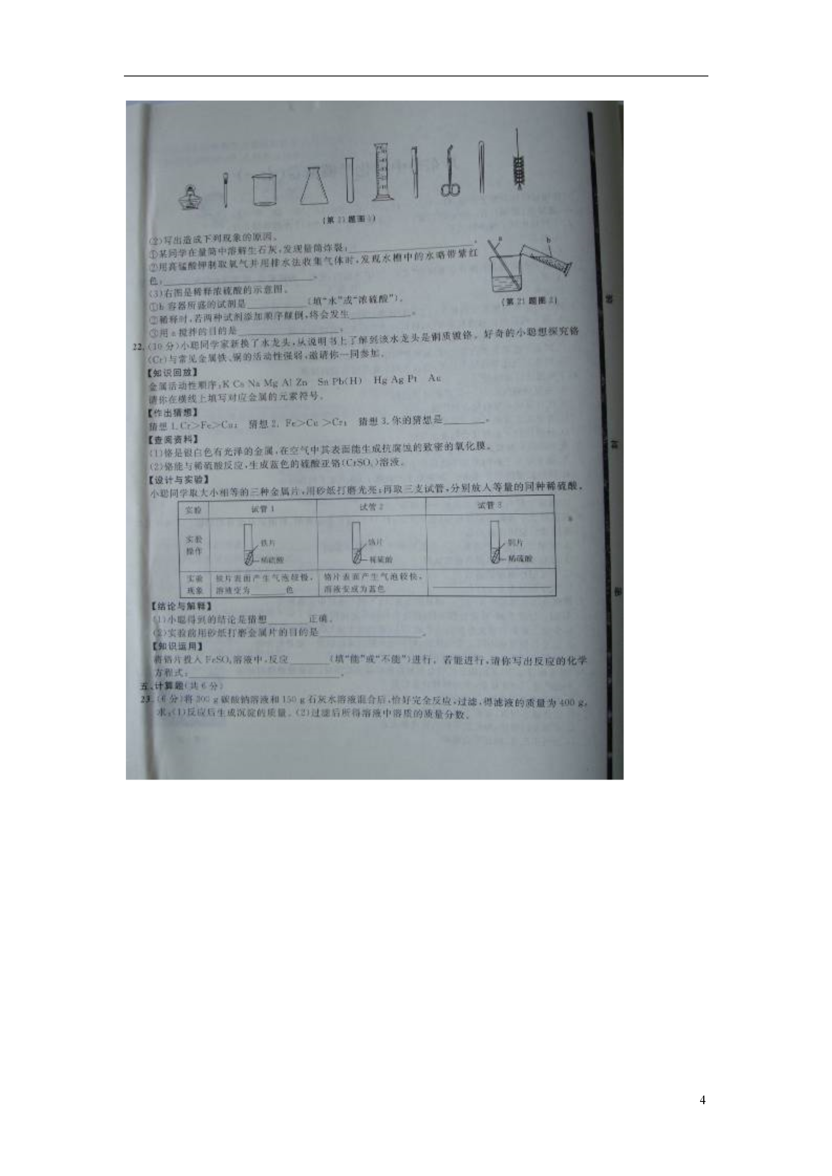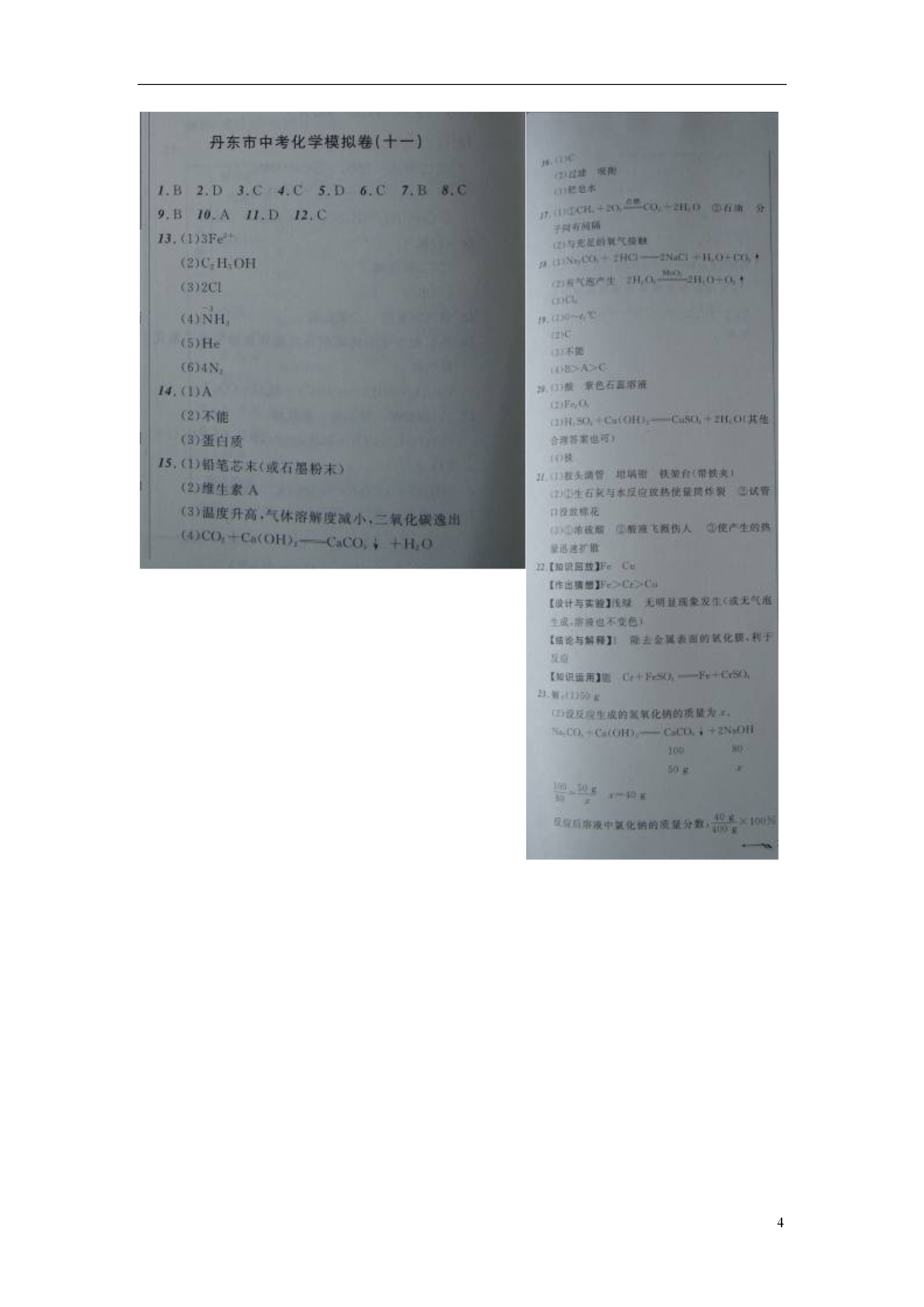 4辽宁省丹东市2016届中考化学模拟测试试题(十一)