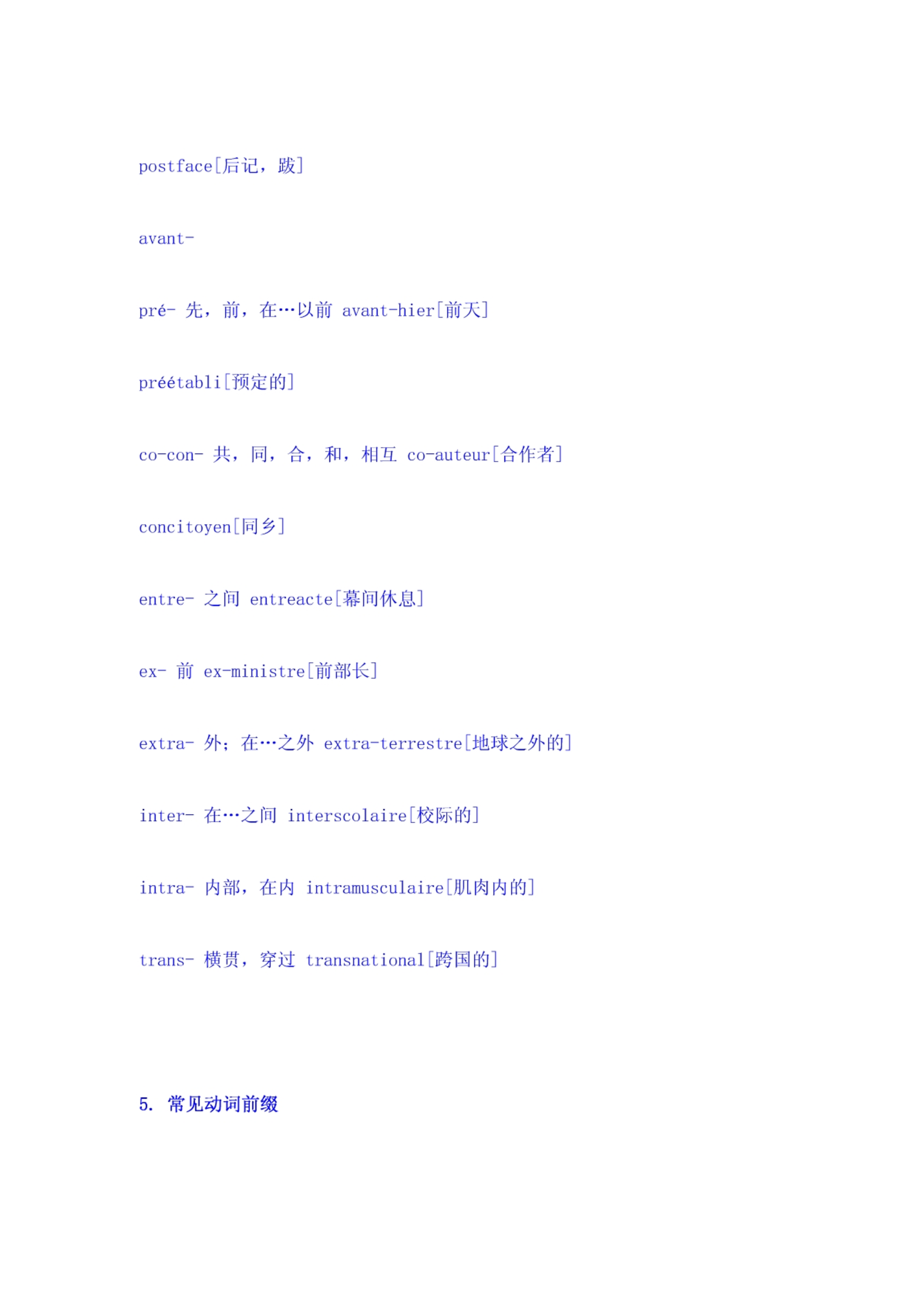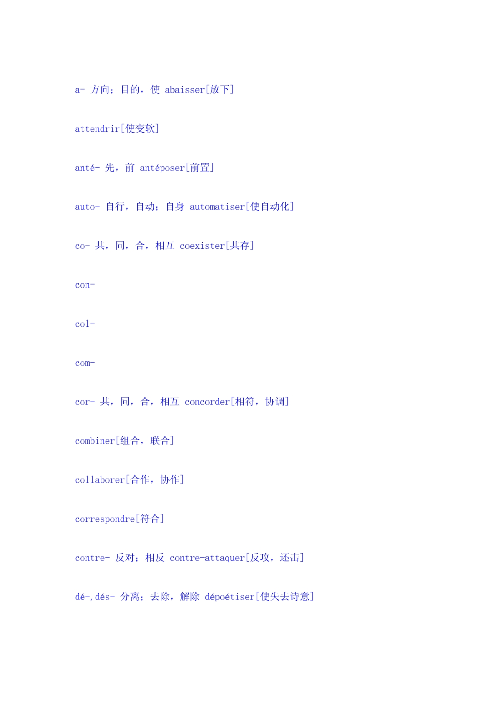法语词汇前缀简表
