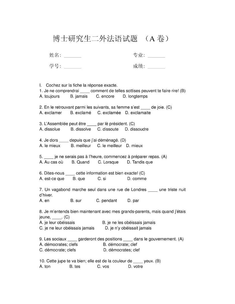 博士研究生二外法语试题(AB卷).pdf 立即下载