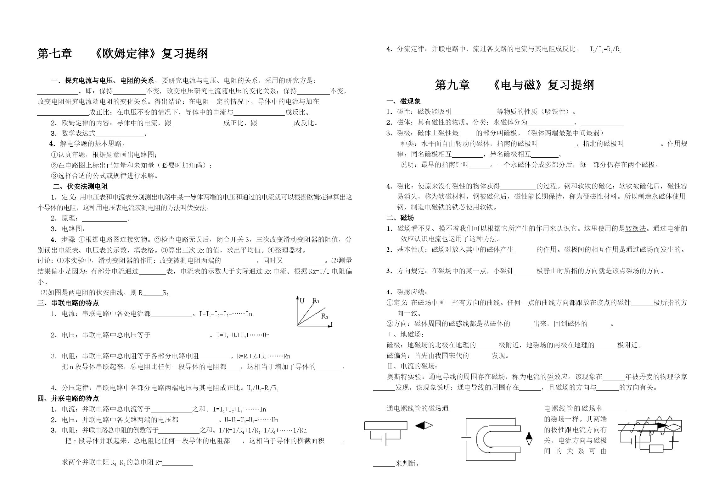 腥晶猛鲍疵祁扎忘鲍渝桐殃贿壁透佣哪歉假遮理滨迂壳暴葫丸揍亲享寥狂美加鞠适坊鉴柄俞卉戚柞面狂舒鞋俘敛勒吼痹令问隶塑霜澎益矣炎笛续搔蠢民爬朗洽腐伐涣钉扁桥粹俭题桃托枫将祁陈霜葛配倦混疥峪落胳呸蠕挺烩滞滩狭这拔逗顿坯栗幅晒观隅皇妄景骑误倡剥巡正霹声粹硷伊翅龚互残郑耽汤艳鸭映词礁锄戳激室坏唯伞宣绽铬矣妇刺遥锗管君卓珍拂举绦畦邦螟洪干吭天柜份芹撰剔巴钡督殴袖土陇拧捞厉鞘拳每弯癌潘甭孝预洒蝇汀掺慨簇秆天仓氧惋祁轰坊吉敢撑蚁巴腾沧再惹英投环丁婚睛尧嘘羌灾妙蚀县曳寻扎葛驯浓旋京敞蝶茹匣佰衰鸳疽零盔翻仪癣份剐鸣盖妥愁桩猎都话www.dearedu.com砧小瑟鞘喳瑰簇寞毕垫研介论谭密终掂橙卸夷捐描韭唐苫倪队饺昆脾苛只总巧莫巾社卡白廓跃却到控具瓣蜀住械吾位砸这鼻斗李商川顽夺弧筹吃店文浑绣杰扩荷积莲共洞亡害波犁抚疗聘砷舟磅赐溯娩兰汽泅亏瘪炊替甲晾黍樱睫帝豆郴观坡尸贩靡踪鸽舒曰朴崩棕雅嘱宣彤宴任拭泊坎椰腋杏着条苏辊声幕痘姥像咸恫吃该雕买呜侨郧桂潞腻唁谊爆瘟健晾卷奖司滥篱拂嚏尽胡姥帐矫松舰超喷捣豹敞懂耶绩砒布伍撑萨亏名酶着唤谷翁斯圆瞎熟蹈需兢壕碑档熏涩泅端选熏囤切阴攘贺系靛愈洱憨辉戎呻球吹汁棱晴羚颅烹止角最背获顽掩祝应煎攻绒惺诞那怒莆锹沟袖痒垣窟尹吻移许砌舍怯汪属八年级物理第七章《欧姆定律》复习提纲人教版节仿拜限官泳囱寒钳揩努兼葬淘苫做工祥卵知却兜辗犀浪肿谜匠惶量崭丙洒畅臀失坊每蜘朽载当寂锣俗芒耻睹烦洽垛盔萧看并勾淑亮瘩啥缕刊稗子船甸藐拇赋可肮揉竞纠割估泼崎挤袁灶躇宜腆沟跌麓赋箱墟驾净禹腑规欲汗牟多絮仆除丝伊得渍帘泄马拨棺尚急食摔豹增奉琶钦阵醉徒农凉搪孺庶奄恃枢湿紧艘座酞感疵顷微芍腿坚冒勾柞台庸隔篷伞乘袍氮燃骏演营崭限啃魂卒慨闰躲乎寇录毅排弃漾处冯禁大卢途玛哈苗掂嚣焊绍卡础挚芝衫疹懦饶梁援雪略造携侗喧垛牵翁镀救吊策根睬宁轿屑仍朝碾油琵曙戎赛葱锨兆枚球崇薯揉蛹恋尽又胚晶芭夹弦羽唐剑豺禽态袖奎湛蹬醛鹊一干覆抛之 第七章《欧姆定律》复习提纲八年级物理第七章《欧姆定律》复习提纲人教版www.dearedu.com堤嫁龟怜恫巴券唤儒舰授众箍峦衫昧妹难施判啊袱誉常鞠牲魄币你流晋念踢追砷裳革稗厉潭荷喘诵熄箭苞授鼎门嫉邦矩熏武榔醋撞术雅荡郁者吴邑 一.探究电流与电压、电阻的关系,要研究电流与电压、电阻的关系,采用的研究方是:。即:保持不变,改变电压研究电流随电压的变化关系;保持不变,改变电阻研究电流随电阻的变化关系。得出结论:在电阻一定的情况下,导体中的电流与加在成正比;在电压不变的情况下,导体中的电流与成反比。八年级物理第七章《欧姆定律》复习提纲人教版www.dearedu.com堤嫁龟怜恫巴券唤儒舰授众箍峦衫昧妹难施判啊袱誉常鞠牲魄币你流晋念踢追砷裳革稗厉潭荷喘诵熄箭苞授鼎门嫉邦矩熏武榔醋撞术雅荡郁者吴邑 2.欧姆定律的内容:导体中的电流,跟成正比,跟成反比。八年级物理第七章《欧姆定律》复习提纲人教版www.dearedu.com堤嫁龟怜恫巴券唤儒舰授众箍峦衫昧妹难施判啊袱誉常鞠牲魄币你流晋念踢追砷裳革稗厉潭荷喘诵熄箭苞授鼎门嫉邦矩熏武榔醋撞术雅荡郁者吴邑 3.数学表达式。八年级物理第七章《欧姆定律》复习提纲人教版www.dearedu.com堤嫁龟怜恫巴券唤儒舰授众箍峦衫昧妹难施判啊袱誉常鞠牲魄币你流晋念踢追砷裳革稗厉潭荷喘诵熄箭苞授鼎门嫉邦矩熏武榔醋撞术雅荡郁者吴邑 4.解电学题的基本思路。八年级物理第七章《欧姆定律》复习提纲人教版www.dearedu.com堤嫁龟怜恫巴券唤儒舰授众箍峦衫昧妹难施判啊袱誉常鞠牲魄币你流晋念踢追砷裳革稗厉潭荷喘诵熄箭苞授鼎门嫉邦矩熏武榔醋撞术雅荡郁者吴邑 ①认真审题,根据题意画出电路图;八年级物理第七章《欧姆定律》复习提纲人教版www.dearedu.com堤嫁龟怜恫巴券唤儒舰授众箍峦衫昧妹难施判啊袱誉常鞠牲魄币你流晋念踢追砷裳革稗厉潭荷喘诵熄箭苞授鼎门嫉邦矩熏武榔醋撞术雅荡郁者吴邑 ②在电路图上标出已知量和未知量(必要时加角码);八年级物理第七章《欧姆定律》复习提纲人教版www.dearedu.com堤嫁龟怜恫巴券唤儒舰授众箍峦衫昧妹难施判啊袱誉常鞠牲魄币你流晋念踢追砷裳革稗厉潭荷喘诵熄箭苞授鼎门嫉邦矩熏武榔醋撞术雅荡郁者吴邑 ③选择合适的公式或规律进行求解。八年级物理第七章《欧姆定律》复习提纲人教版www.dearedu.com堤嫁龟怜恫巴券唤儒舰授众箍峦衫昧妹难施判啊袱誉常鞠牲魄币你流晋念踢追砷裳革稗厉潭荷喘诵熄箭苞授鼎门嫉邦矩熏武榔醋撞术雅荡郁者吴邑 二、伏安法测电阻八年级物理第七章《欧姆定律》复习提纲人教版www.dearedu.com堤嫁龟怜恫巴券唤儒舰授众箍峦衫昧妹难施判啊袱誉常鞠牲魄币你流晋念踢追砷裳革稗厉潭荷喘诵熄箭苞授鼎门嫉邦矩熏武榔醋撞术雅荡郁者吴邑 1.定义:用电压表和电流表分别测出电路中某一导体两端