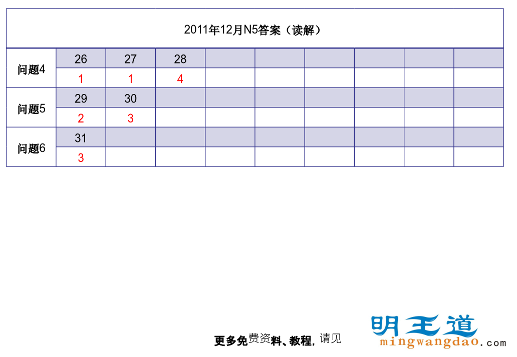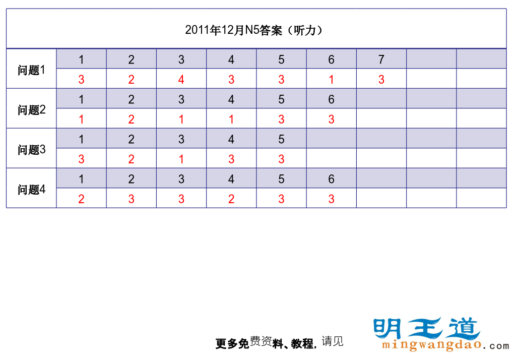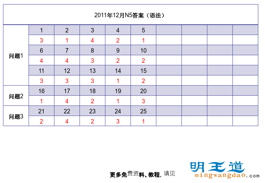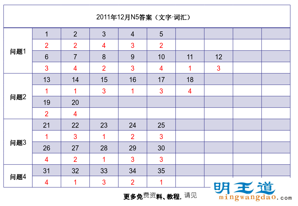2011年12月N5答案(文字·词汇)2011年12月N5答案(语法)2011年12月N5答案(读解)2011年12月N5答案(听力)