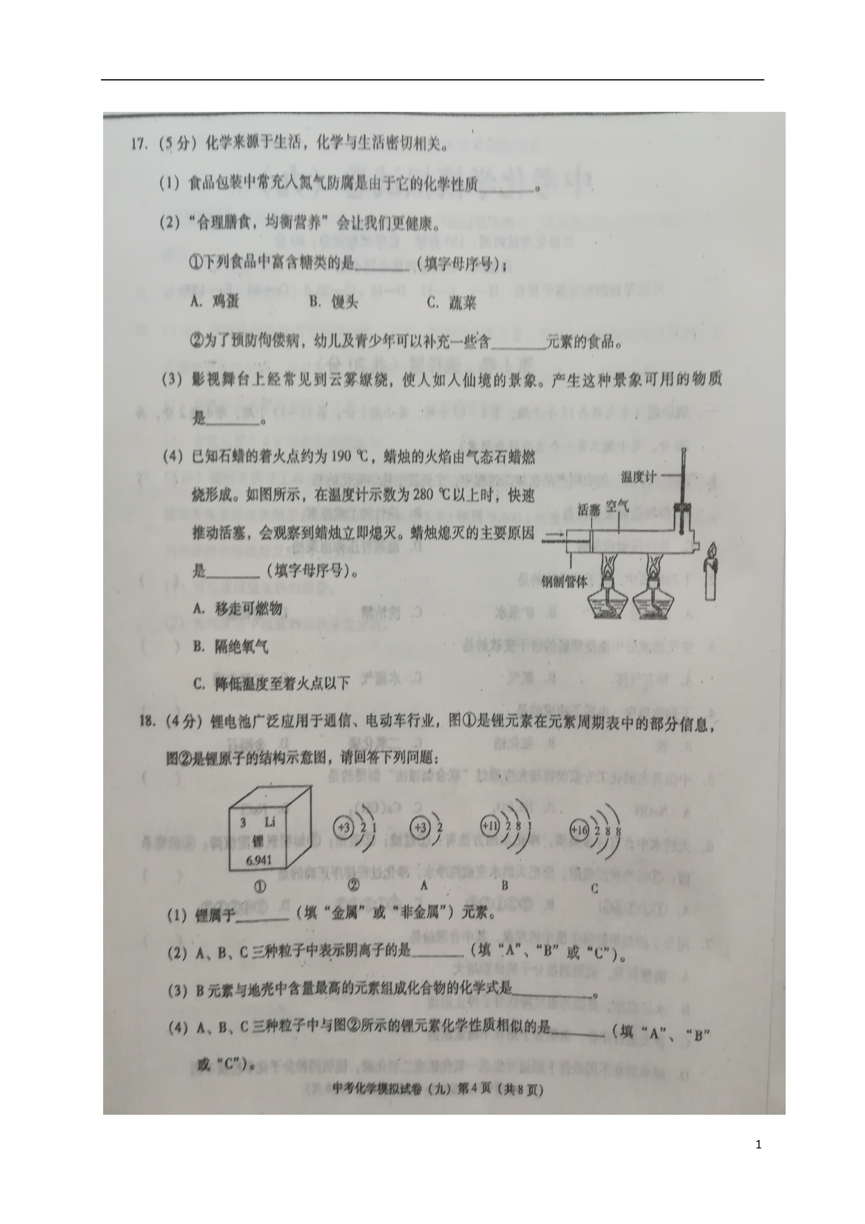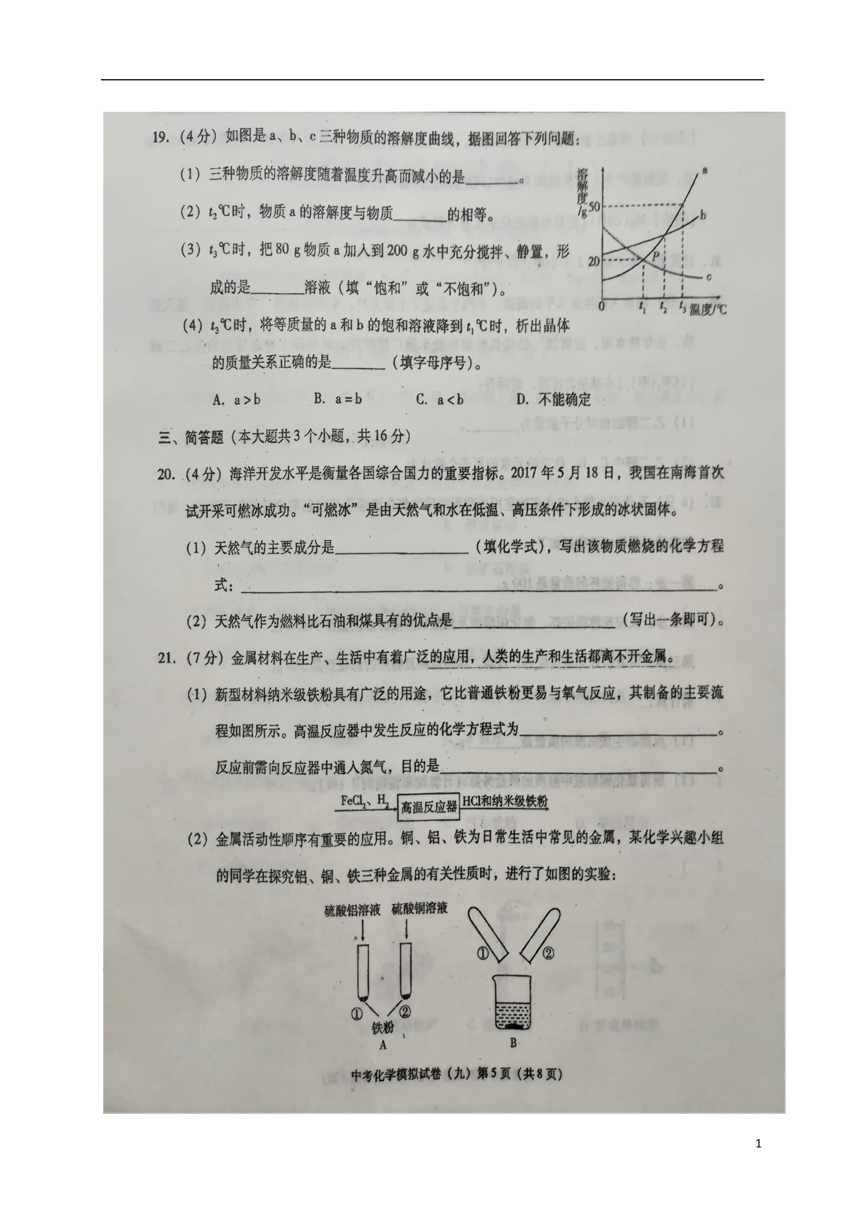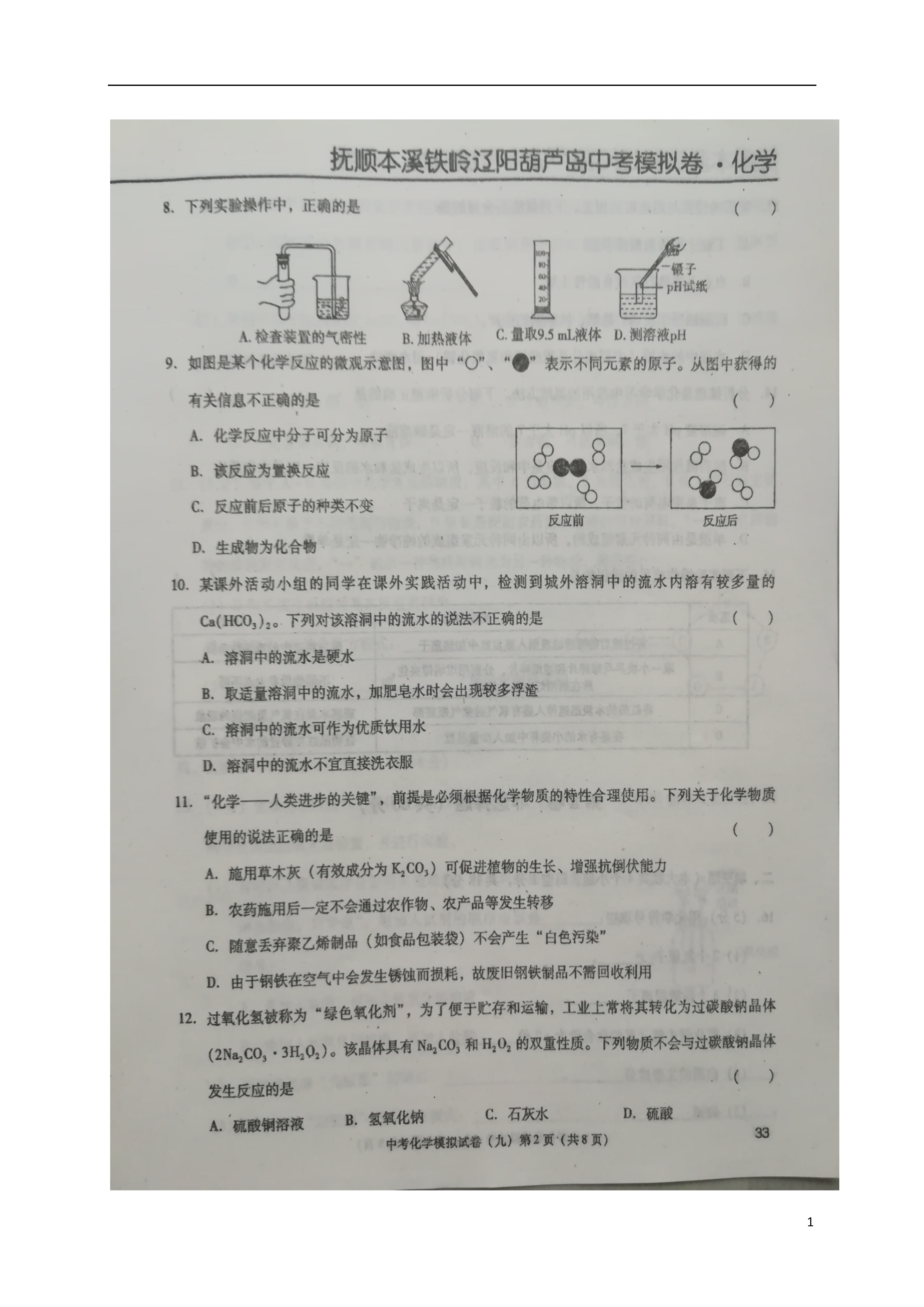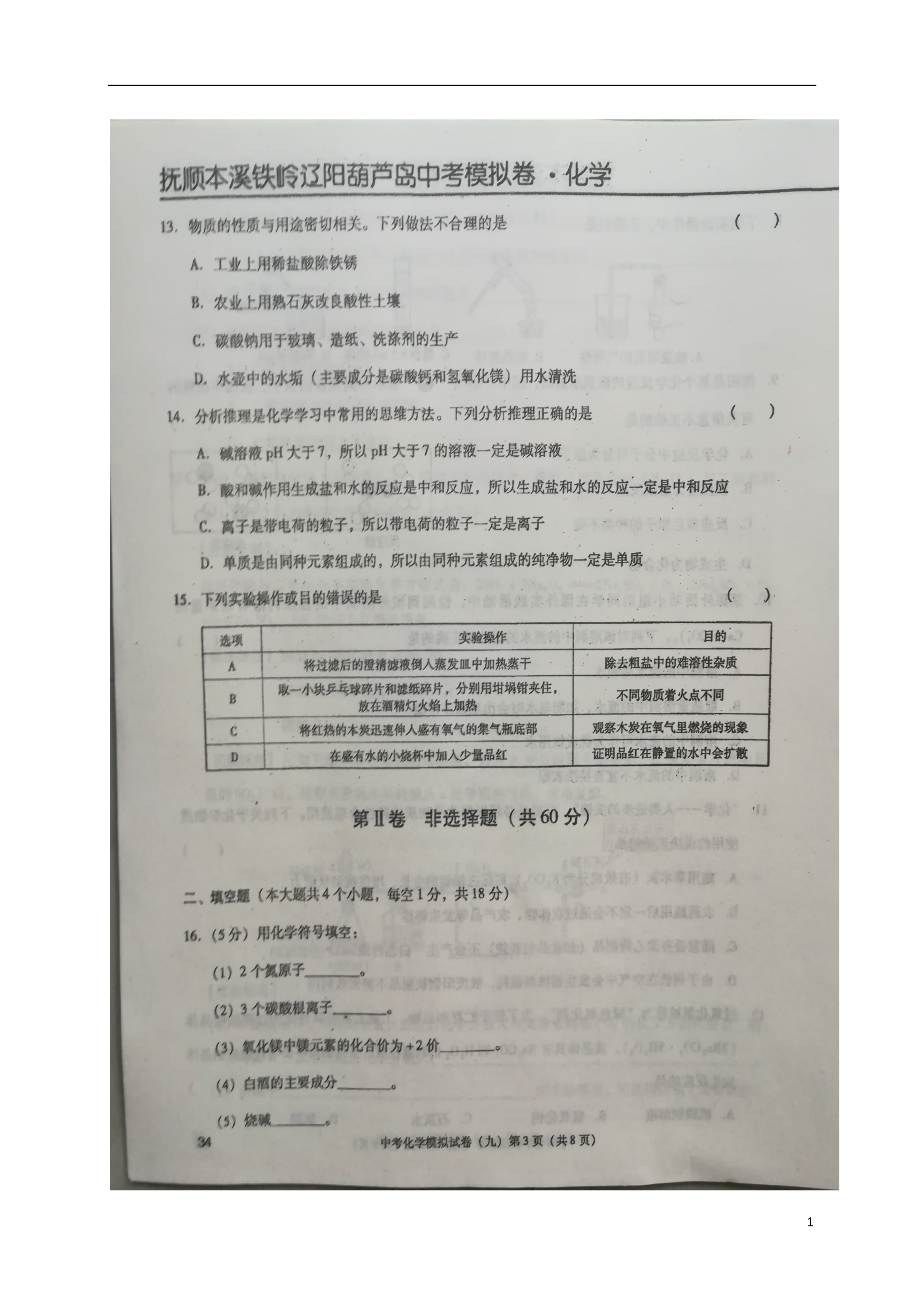 1辽宁省葫芦岛市2018届中考化学模拟试题