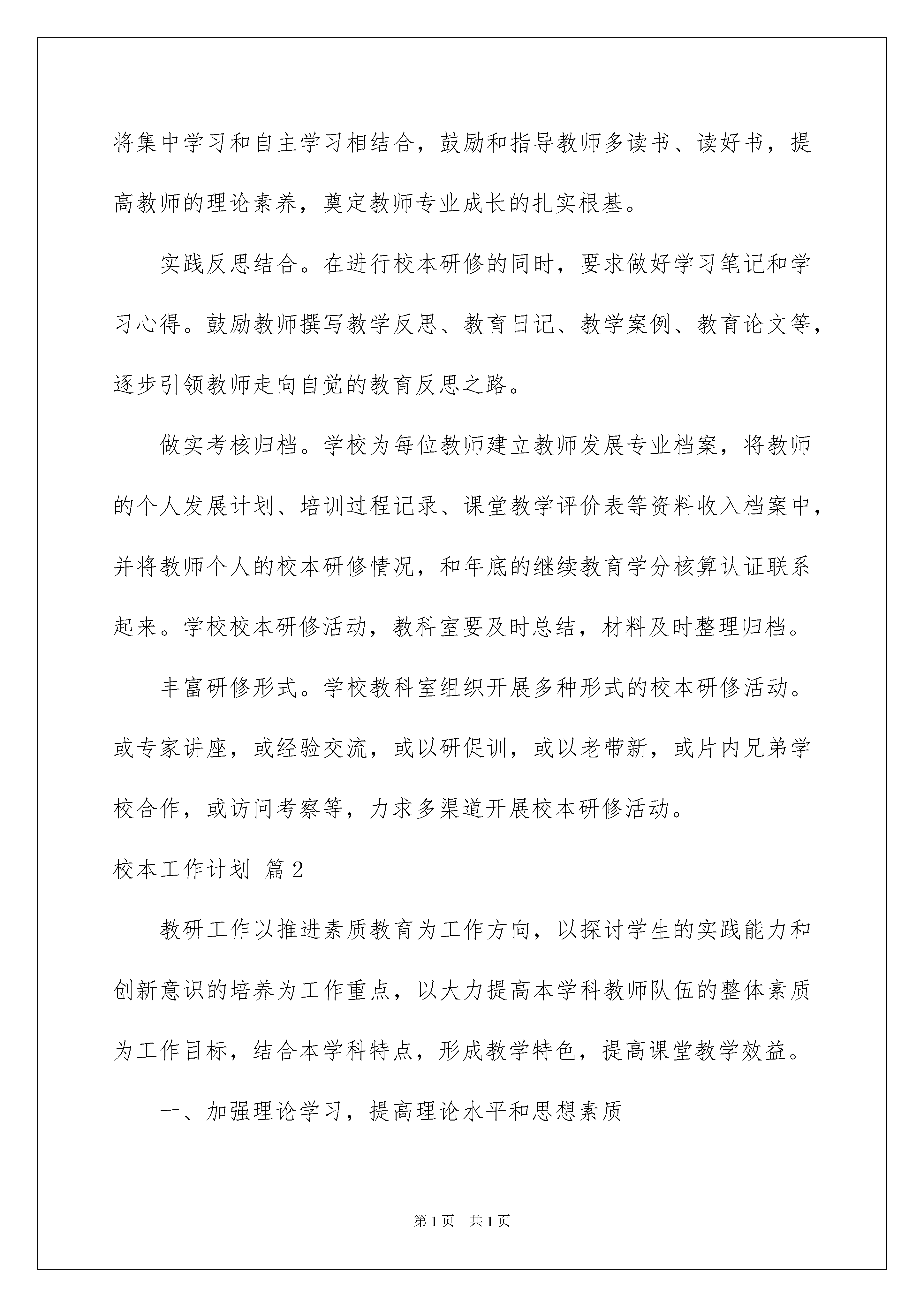 2022校本工作计划四篇校本工作计划人生天地之间,若白驹过隙,忽然而已,我们的工作又将在忙碌中充实着,在喜悦中收获着,为此需要好好地写一份计划了。什么样的计划才是好的计划呢?下面是我帮大家整理的校本工作计划4篇,希望能够帮助到大家。校本工作计划篇1一、指导思想20xx年,我校将以“特色发展年”为契机,不断深入新课程改革,大力实践高效课堂,深化名师打造工程,强化师德师能提升,继续巩固信息年建设成果,促进学校、教师、学生的同步成长,努力使学校教育教学全面质量的又好又快提升,走出内涵发展的道路。二、目标措施1。师德师能建设为切实发挥绩效考核功能,落实教育局关于师德建设的要求,培养教师的优良职业道德意识,提升教师队伍的师德水准,努力做学生爱戴、家长信赖的好老师。通过《中小学教师职业道德规范》《南京市教师礼仪规范》等培训和学习,要进一步增强教师学习的主动性,形成教师自觉遵守礼仪规范、提高自身素质的良好氛围。并将师德建设与规范教育教学工作行为相结合,培养敬业精神。努力激发教师热爱教育、献身教育的责任感和使命感,不断提升教师的师德修养。2。高效课堂服务高效课堂实施,新课程深入改革已是大势所趋,以科研为引领,以教师为主体,以课堂为阵地,以教学为重点,以问题为载体,以研训为手段,也已经形成共识,本学期的校本培训,要围绕高效课堂,打破校本教研和培训的隔阂,做到研训一体,将以训导研,以研促训落实到研修计划中。做实日常教研,要求各教研组根据教研计划,正常有序地开展好教研活动。每位教师根据学校研训要求,上好学科教学实践课,各行政、教研组长、备课组长等教师按要求组织实施好集体备课,完成学科公开课和各类推门课的听课任务,达到规定节数,做到听课有记录、评课有意见和教学有反思。各教研组、备课组听、评课活动及教学实践活动要有过程、有记录。与此同时,要加强科研工作,提高研究实效。各学科教研工作要树立“立足于教研,服务于教学;以科研求突破,以特色求发展”的指导思想,每一位教师都要积极参与学校课题的研究工作,记录点滴,将课题研究与教学研究有机结合起来,并撰写好论文,积极参加省、市、区论文、案例评比。3。名师队伍培养围绕学校教科研工作三年目标和学校名师培养计划,学校教科室立足引导广大青年教师认真学习教育教学理论,大胆进行教育教学实践改革,让工作态度好、综合素质高、教学思路新、创新意识强的青年教师脱颖而出。着力抓好区、校两级教学骨干教师的培养提高,努力发挥他们在课改中的示范、带头作用;着力培养教学新秀。加大对骨干教师队伍的管理和考核,并努力构建平台、创设机遇,积极组织他们参与各层次的教学研究活动,并承担一定的开课、科研等任务,为他们崭露头角提供机遇。加强班主任队伍建设。建立班主任定期学习、培训、交流、研讨、绩效考核的机制,加强对班主任工作的管理与考核,提高班级管理水平,促进良好班风的形成。4。教学技能展示教育的发展也需要教师更新教育观念,并能把现代教育技术应用到课堂教学中,丰富课堂教学手段,拓宽学生的知识视野,以提高课堂教学效益。本年度我校将继续进行现代教育技术的培训,开展课件制作竞赛,电脑技能培训,加强学科教学和信息技术整合研修,练好教师的教育教学基本功,促进教师技能提升。5。完善研修机制为进一步加强校本研修的工作力度,确保实效。必须加强制度建设,形成研修工作的保障机制。教科室和教务处是校本培训的业务指导机构。增强组织管理。校将形成一个校长亲自抓、分管校长负责抓、教科室具体抓、教务处协同抓的校本研修的管理网络。学校教科室负责校本培训计划的制定与实施。各项培训经费及时落实,统筹安排,统一协调,有序开展。定期开展研修。学校将通过开放图书馆,营造读书环境,拓宽学习视野,培养教师终身学习的习惯。将每周三作为固定的学习时间,将集中学习和自主学习相结合,鼓励和指导教师多读书、读好书,提高教师的理论素养,奠定教师专业成长的扎实根基。实践反思结合。在进行校本研修的同时,要求做好学习笔记和学习心得。鼓励教师撰写教学反思、教育日记、教学案例、教育论文等,逐步引领教师走向自觉的教育反思之路。做实考核归档。学校为每位教师建立教师发展专业档案,将教师的个人发展计划、培训过程记录、课堂教学评价表等资料收入档案中,并将教师个人的校本研修情况,和年底的继续教育学分核算认证联系起来。学校校本研修活动,教科室要及时总结,材料及时整理归档。丰富研修形式。学校教科室组织开展多种形式的校本研修活动。或专家讲座,或经验交流,或以研促训,或以老带新,或片内兄弟学校合作,或访问考察等,力求多渠道开展校本研修活动。校本工作计划篇2教研工作以推进素质教育为工作方向,