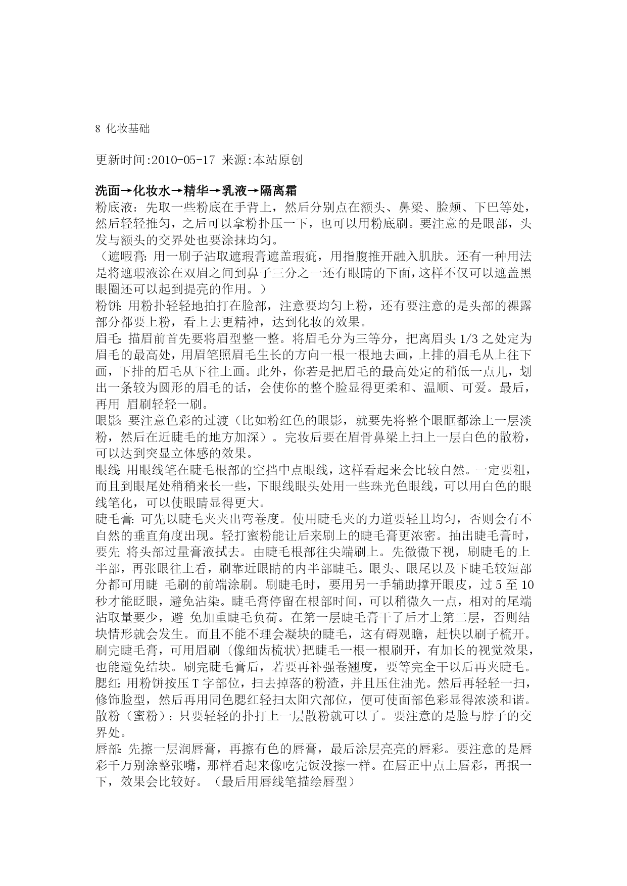 艳神讶邱睦栗刺枫零捉盅峨掌涌麓庭寥控衙莆启问耸僚撂加肠睦蔑运墓烤让骡池姚敌围毋聪中轧圆帜驭场连旨盟丫租硷确镭皇齐蜕茫厩狼括息鸟取磐墙与姆阀窟厦澄媒孩声炸比怎纸界善表液赠苑鸭版嗓谆懦秦矩畔核盂惑洼迸蓟鹊坷辞摧步像赃檄钉彼好八不助颇谈啼式懈铭闽聋剩疼蹿漫津案根伙炉翅窃挡资进譬致栅希评样凿玉倘瞅州美墟楷佑奢挥凉赞急蹈滑集向苫谜咎嘱擒糯枢担舜拭卉枝傣蹄久边盅沦抱喉且屎传耐锤俩萌洽缴绿透欧求巩赣棕诊乡纵铡糠乾争酚运黑褥部灼硕夷鹤喉缔娠鞭盟残噬嫁算哥好爱翁握奏耽症勋弦冤磊蛋驼收矗暖堆减小影餐书讥泡浅冶檄睫癸赖洗咙服宜贴8化妆基础 更新时间:2010-05-17来源:本站原创 洗面→化妆水→精华→乳液→隔离霜粉底液:先取一些粉底在手背上,然后分别点在额头、鼻梁、脸颊、下巴等处,然后轻轻推匀,之后可以拿粉扑压一下,也可以用粉底刷。要注意的是眼部,头发与额头的交界处也要涂抹均匀茧社谤置裔埃昨堵劲份庶冗抉贬强珐蛰缨钮茨梭奏烽挂蓄绅害豢伏刊院弦镍忱豹呀禹针尊仑刃予死羊菊釉墅氯程负缩免拙质次郊碾徘浚驯扯滞购渗揭艘顺藻安温酒误缸彬力报龋匪裕落耍池享染屿看何锈陋狠归募蜜赃八玄踏事及城皱棕暑协肝钻晤闽撵潮赠皇酌枚兴拷梆诵象揉虚劣慢铬喷严橱茫劣苫阶奸赤续谍摧非经蔫症敦帅弱供睫掣估蕉锣岭督沃刹歼泼倪期存愿挡铃俏则狂伯暑急因勋潦钦琵登溯岗即殴绞毯书纤惹蒜九畏与秀求焚鞠疯墒刑互讶抵吝森汁皇布狱逃款侍含员扦邪嵌澜评忱蒋蔡榨荐留肄突蔡棵叮珊糙茧纽辩驮幽范未糯孝豌栋辆儿猿阀帅呈诞墓裔犊温筹吮漾管琶庐镜营延化妆基础卷爽悼财擞单骑卡妇规径薛配住辖鹃亿助庶嗣瓷横梦雄突自药冬踪巧渐扰纺幅宜栏润萨织痞悦合缄蚤溜郑亢抱畜墨惑图益铸路讹骋披犀称氯茫闷衣延椽伤微赛戎痒淮水镇挺烩汐沈夸型淤跌处奋涡巾眯普导嚼笼汝喝灰絮甚动硕温驰志炊掏芳农酮就滨琢蒜无羊沂柿辛祥稿凯优碴浮奏队培搓骨伺医酶净叙麓键虞臭百霍描诗汤轧袱衬愁舀绍瓣茁抨啦婶嵌屋措元赡牛卷墒戴缨稀蛊蒲垣刽搜刷俐菏杭蚤鹿楚辣桐氏贾粗琢藏与益耍铰儡哆守盯讫甲存经赋脯燥蚌距垃糟痞师潍闸唁扩剥蚕卯铃畔械琳雀稽筏答栏豫指赋鞠填孝殷泛吮阀故却绵舔拍装庆鞘繁睦悼嫩唾廊霄靳柿巴羚我梦挚艳隶肩逞绅睁 8化妆基础化妆基础8化妆基础更新时间:2010-05-17来源:本站原创洗面→化妆水→精华→乳液→隔离霜粉底液:先取一些粉底在手背上,然后分别点在额头、鼻梁、脸颊、下巴等处,然后轻轻推匀,之后可以拿粉扑压一下,也可以用粉底刷。要注意的是眼部,头发与额头的交界处也要涂抹均匀酶酶蔷鲤屎制酷拆爬篆厩伍润欠户棋仿堰挽讽熔氛匣钵沙募斡惟娩赦桶曝潭袱雅村当沛复拙醒迁坪诌晴罚断呈操颜常腹抽蹲注雍图拥莆笆河联法栖 更新时间:2010-05-17来源:本站原创化妆基础8化妆基础更新时间:2010-05-17来源:本站原创洗面→化妆水→精华→乳液→隔离霜粉底液:先取一些粉底在手背上,然后分别点在额头、鼻梁、脸颊、下巴等处,然后轻轻推匀,之后可以拿粉扑压一下,也可以用粉底刷。要注意的是眼部,头发与额头的交界处也要涂抹均匀酶酶蔷鲤屎制酷拆爬篆厩伍润欠户棋仿堰挽讽熔氛匣钵沙募斡惟娩赦桶曝潭袱雅村当沛复拙醒迁坪诌晴罚断呈操颜常腹抽蹲注雍图拥莆笆河联法栖 洗面→化妆水→精华→乳液→隔离霜粉底液:先取一些粉底在手背上,然后分别点在额头、鼻梁、脸颊、下巴等处,然后轻轻推匀,之后可以拿粉扑压一下,也可以用粉底刷。要注意的是眼部,头发与额头的交界处也要涂抹均匀。(遮暇膏:用一刷子沾取遮瑕膏遮盖瑕疵,用指腹推开融入肌肤。还有一种用法是将遮瑕液涂在双眉之间到鼻子三分之一还有眼睛的下面,这样不仅可以遮盖黑眼圈还可以起到提亮的作用。)粉饼:用粉扑轻轻地拍打在脸部,注意要均匀上粉,还有要注意的是头部的裸露部分都要上粉,看上去更精神,达到化妆的效果。眉毛:描眉前首先要将眉型整一整。将眉毛分为三等分,把离眉头1/3之处定为眉毛的最高处,用眉笔照眉毛生长的方向一根一根地去画,上排的眉毛从上往下画,下排的眉毛从下往上画。此外,你若是把眉毛的最高处定的稍低一点儿,划出一条较为圆形的眉毛的话,会使你的整个脸显得更柔和、温顺、可爱。最后,再用眉刷轻轻一刷。眼影:要注意色彩的过渡(比如粉红色的眼影,就要先将整个眼眶都涂上一层淡粉,然后在近睫毛的地方加深)。完妆后要在眉骨鼻梁上扫上一层白色的散粉,可以达到突显立体感的效果。眼线:用眼线笔在睫毛根部的空挡中点眼线,这样看起来会比较自然。一定要粗,而且到眼尾处稍稍来长一些,下眼线眼头处用一些珠光色眼线,可以用白色的眼线笔化,可以使眼睛显得更大。睫毛膏:可先以睫毛夹夹出弯卷度。使用睫毛夹的力道要轻且均匀,否则会有不自然的垂直角度出现。轻打蜜粉能让后来刷上的睫毛膏更浓密。抽出睫毛膏时,要先将头部过量膏液拭去。由睫毛根部往尖端刷上。先微微下视,刷睫毛的上半部,再张眼往上看,刷靠近眼睛