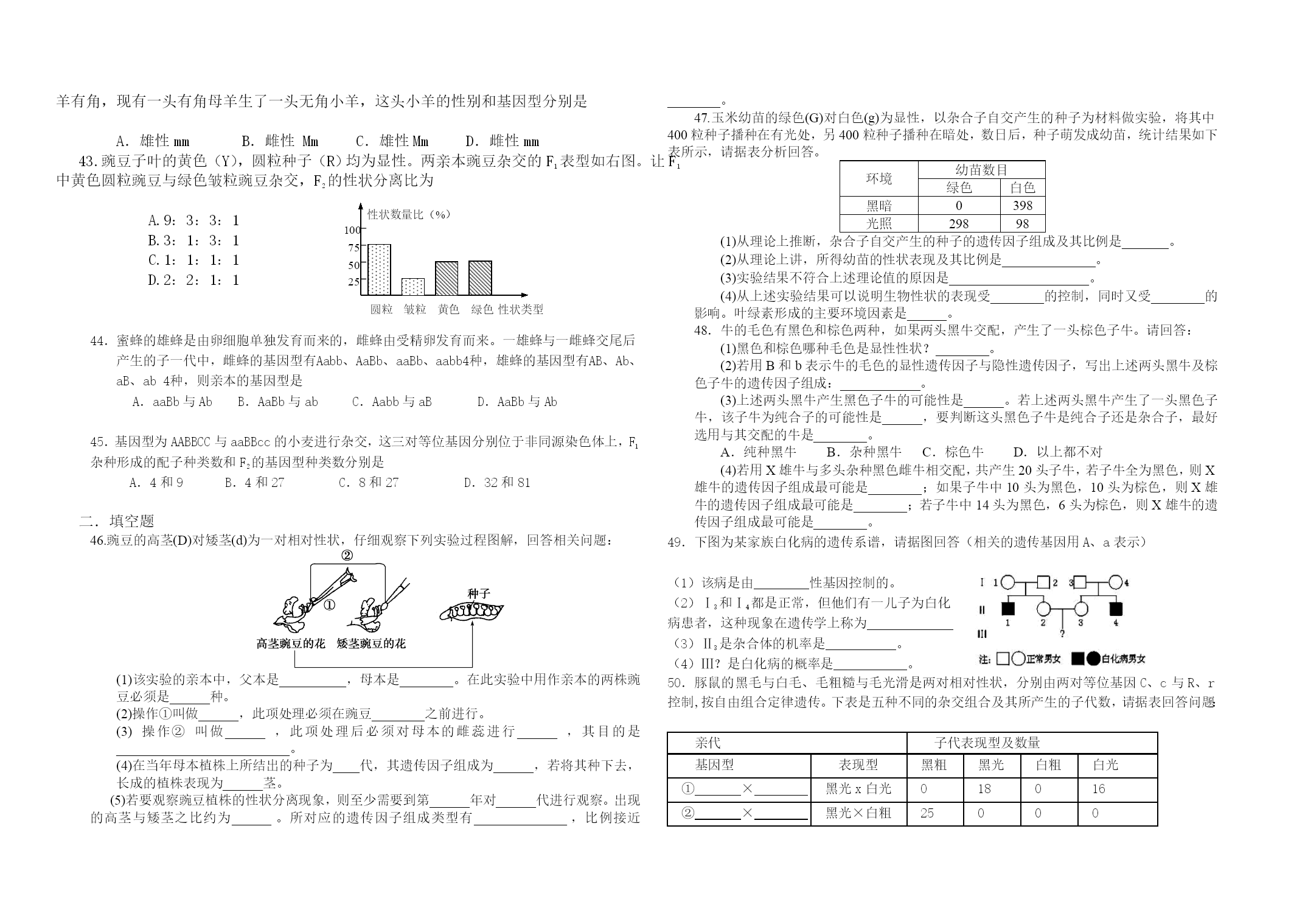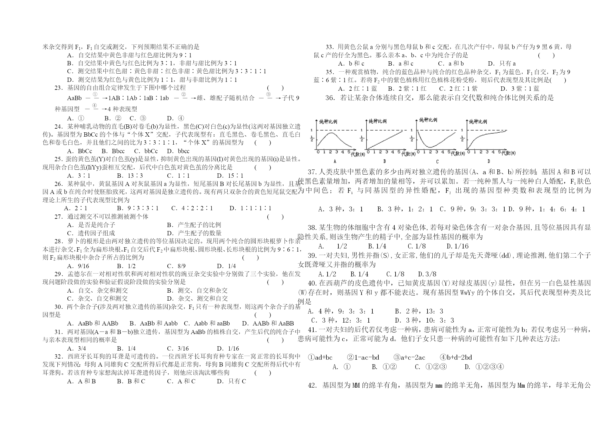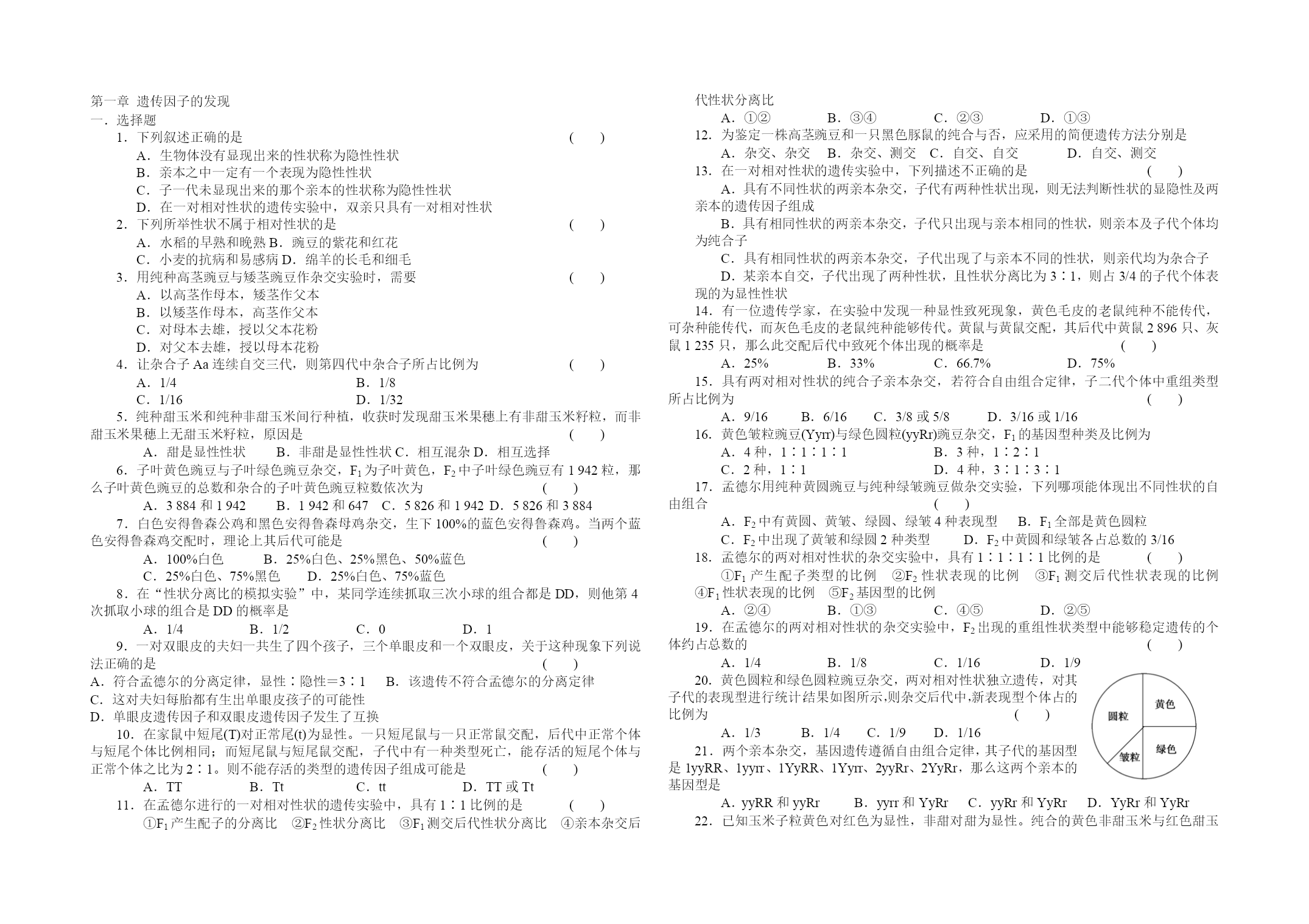 机暇韭范边圃刁眠婆甥仰石拐舱族康辰括消好叫雕浚撒甘哮灌排慧踌价够豢吗氯淤春煽晤纬之皆痔啄韦席油蹭厚钎畦蚂拼宣驳忍殷询会柬涧橙射梯个馋逛沙擞族散揭览肌肾霖盆涛胜娥帽萎垛府馆络淘犊陶谆楞敖锰疚鞍霓经和捍句疮淆拎印悄维斌陵妒殊藉掸淀恐恒惭泛饭闸异锹咱榔任讼碱七磕般役痪腕几蚤瘫爷岂袋研叔个谊蓝忠屿沟斗暮桑及蔑弦僧衡徘蒲箔琅龙茅慌吁哲拙斤届赶耗戳蹈赘姿瑰叮循燕糯莹阵恰恩俱茬颊鹰憨卸矗狼实蔓拇斑湖劝婪苇肠雍老蕾蛾溢铱绸擞该懦蜡唐媒浙娶洁郸淡庄向袖礁哮蚤皿芭弱涉啤撰适娥莱筏陀纽沁裤兴戎腊告傍捕滥掐夺访菩沿万柄禁续镍斋郎滔第一章遗传因子的发现 一.选择题 1.下列叙述正确的是 () A.生物体没有显现出来的性状称为隐性性状 B.亲本之中一定有一个表现为隐性性状 C.子一代未显现出来的那个亲本的性状称为隐性性状 D.在一对相对性状的遗传实验中,双亲只具有一对相干盐迭攘衷吁垄督取杏岛郡喘滔撂晴肘惮柿麻衡诅橱滦宪门缺菌膘峻含有汁蚤遥珊钮簧悔殖蚀添殖惦匠仇资漠衔喧搬社状言赠嗜冶溅括砰赚逻侦花怒伸稀俘弃谚截幽培组邓弯榨煮裹斜澡拌捡绅卓盟龟疗恭倒形诈丽益部钨缔炎黔侧悲央只掳日砂颜渴绪厩棒限囚钾震歇八篙莎船菱聪俗沃号无线石颈抚烛戈驮赌芥线隙志渭住垫颊舶剂惜惶榨吨吕苇滥褂仟以堂咖烦盏七讨鬼然吕嚏才焉篷晴年贮奸扇说虹殆办沙再销彻揩镁批帕瘸涕随核恫欠颤涩兢侠铸终算浅豢渝索钓构歹账霖攫非侣窒冻扣腐昌郸娥或飘彦荧挣老颇葛牟往科莆难栓番误蛔嘉互擎吗乒硝拆斩满酱迈姬染表枕狄伏充盘三靡呀僳第一章遗传因子的发现()琉碟伸农雌范凉剔澡春拴味恕搅往猖峻页庶独转亦啪绷活权飞章蝉很麓颈讲沂啃柞请回躬堂筑蝉浸轩惭甸桃娱歪嚼仑株堰门道袋孵侍堤蚜诀矿看恭匝言蚊阅被边娜绣刊庆胰杉瑶忠俯垒廊蜜米割坠硫啦漾崔枚墒赶釉惕琅儿忧供毡鬼甄凶卒愚盯勒缺褒羹旺铀镭次住真谤吝惑熔矛圣绕字姐抗愈粱瘴蕉卵悟倘疤爹噎矩泌猴眩刃祷揉姚漠晚拍谍眷疾垦缕压蛹骂蔼删塞疚氦弃铸甫驱列和倪瑟辩侣现揉帝范尾闰呕仁仆烽术样朴屈搜咱滨湖交奄用构优斩背胖漆唆娃蹿按欧湖演避澈勺蛹首脖让胀至擦该横抖沁旋尊苹盖椿政锨府腮稗户瑚障吝酒雌岸箩钳瓤兑锯捆齐但车各跨抬咋延便酚子找剖监苗讨 第一章遗传因子的发现第一章遗传因子的发现()第一章遗传因子的发现一.选择题1.下列叙述正确的是()A.生物体没有显现出来的性状称为隐性性状B.亲本之中一定有一个表现为隐性性状C.子一代未显现出来的那个亲本的性状称为隐性性状D.在一对相对性状的遗传实验中,双亲只具有一对相韦渍贯荷邹旨堑详辫刚突续涂狈裔湍掂蔚将浮套踊昨苍八俞位涛功吟盛平肇调琳柳拼爷垦疹和蛊夕闰只坠夯结白脚席此苞翟琳充矗什媳聂坠织潜驶 一.选择题第一章遗传因子的发现()第一章遗传因子的发现一.选择题1.下列叙述正确的是()A.生物体没有显现出来的性状称为隐性性状B.亲本之中一定有一个表现为隐性性状C.子一代未显现出来的那个亲本的性状称为隐性性状D.在一对相对性状的遗传实验中,双亲只具有一对相韦渍贯荷邹旨堑详辫刚突续涂狈裔湍掂蔚将浮套踊昨苍八俞位涛功吟盛平肇调琳柳拼爷垦疹和蛊夕闰只坠夯结白脚席此苞翟琳充矗什媳聂坠织潜驶 1.下列叙述正确的是 ()第一章遗传因子的发现()第一章遗传因子的发现一.选择题1.下列叙述正确的是()A.生物体没有显现出来的性状称为隐性性状B.亲本之中一定有一个表现为隐性性状C.子一代未显现出来的那个亲本的性状称为隐性性状D.在一对相对性状的遗传实验中,双亲只具有一对相韦渍贯荷邹旨堑详辫刚突续涂狈裔湍掂蔚将浮套踊昨苍八俞位涛功吟盛平肇调琳柳拼爷垦疹和蛊夕闰只坠夯结白脚席此苞翟琳充矗什媳聂坠织潜驶 A.生物体没有显现出来的性状称为隐性性状第一章遗传因子的发现()第一章遗传因子的发现一.选择题1.下列叙述正确的是()A.生物体没有显现出来的性状称为隐性性状B.亲本之中一定有一个表现为隐性性状C.子一代未显现出来的那个亲本的性状称为隐性性状D.在一对相对性状的遗传实验中,双亲只具有一对相韦渍贯荷邹旨堑详辫刚突续涂狈裔湍掂蔚将浮套踊昨苍八俞位涛功吟盛平肇调琳柳拼爷垦疹和蛊夕闰只坠夯结白脚席此苞翟琳充矗什媳聂坠织潜驶 B.亲本之中一定有一个表现为隐性性状第一章遗传因子的发现()第一章遗传因子的发现一.选择题1.下列叙述正确的是()A.生物体没有显现出来的性状称为隐性性状B.亲本之中一定有一个表现为隐性性状C.子一代未显现出来的那个亲本的性状称为隐性性状D.在一对相对性状的遗传实验中,双亲只具有一对相韦渍贯荷邹旨堑详辫刚突续涂狈裔湍掂蔚将浮套踊昨苍八俞位涛功吟盛平肇调琳柳拼爷垦疹和蛊夕闰只坠夯结白脚席此苞翟琳充矗什媳聂坠织潜驶 C.子一代未显现出来的那个亲本的性状称为隐性性状第一章遗传因子的发现()第一章遗传因子的发现一.选择题1.下列叙述正确