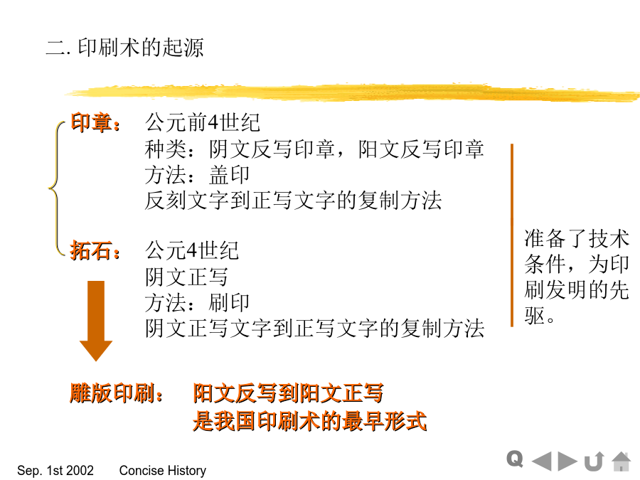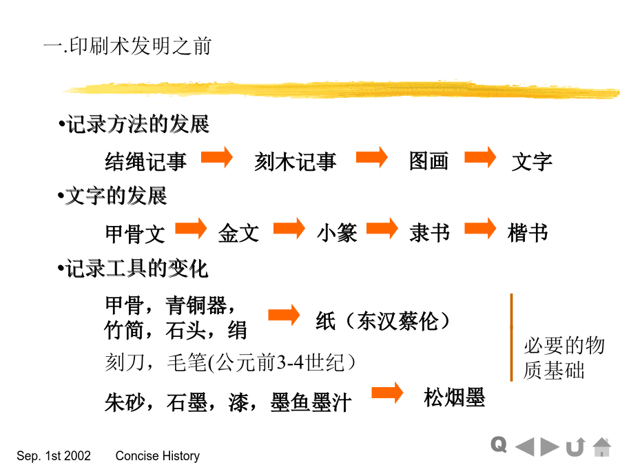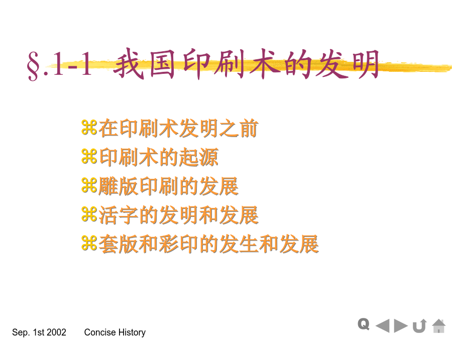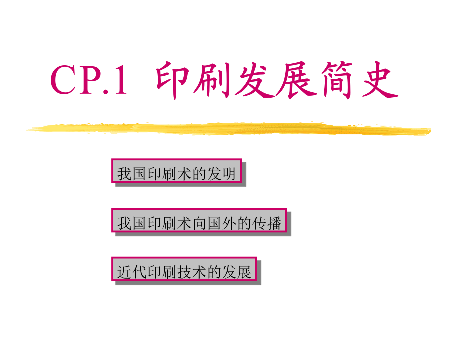 CP.1印刷发展简史§.1-1我国印刷术的发明一.印刷术发明之前二.印刷术的起源三.雕版印刷的发展卷轴式四.活字的发明和发展五.套印和彩印的发生及发展§.1-2印刷术向国外传播§.1-3近代印刷术的发展